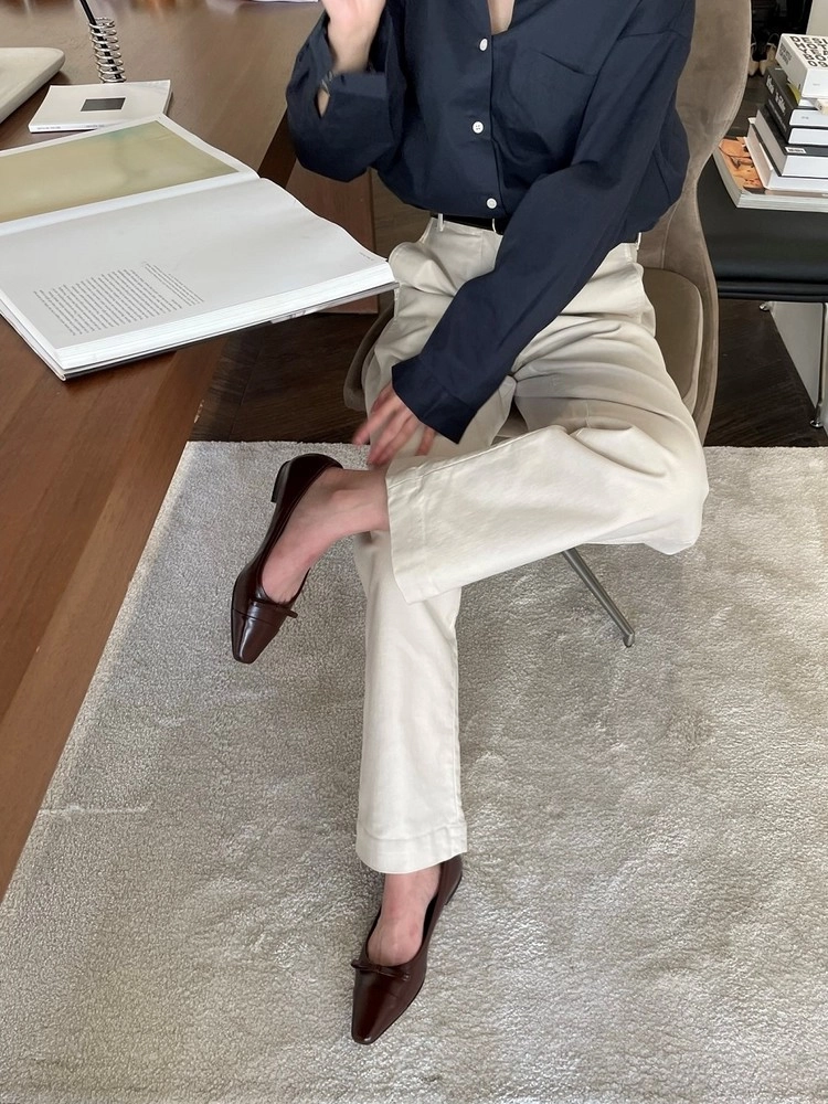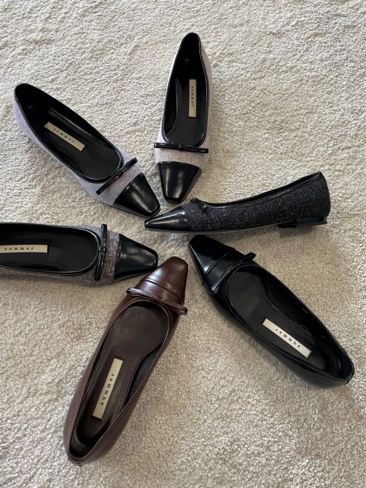 -슬림하게 빠진 스퀘어 토의 라스트를 사용한 1cm 플랫 슈즈 입니다.