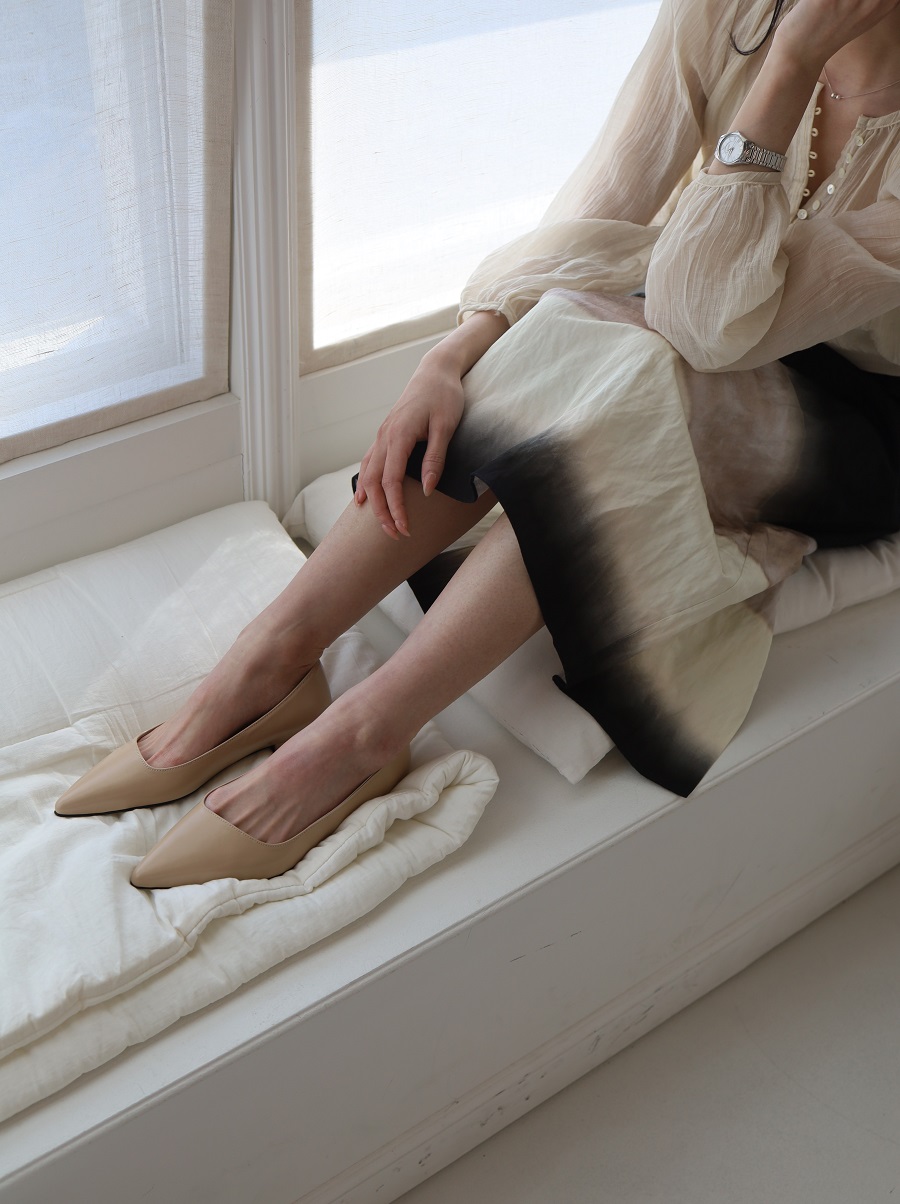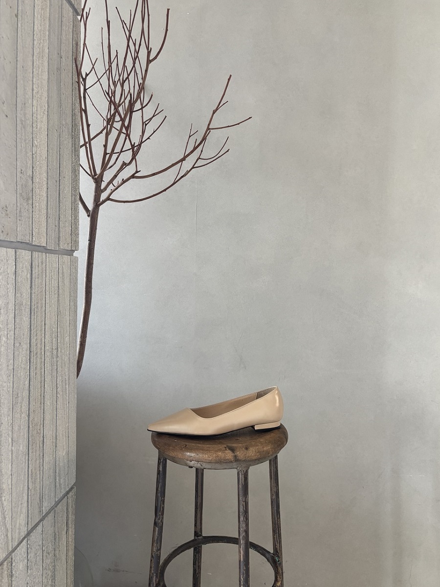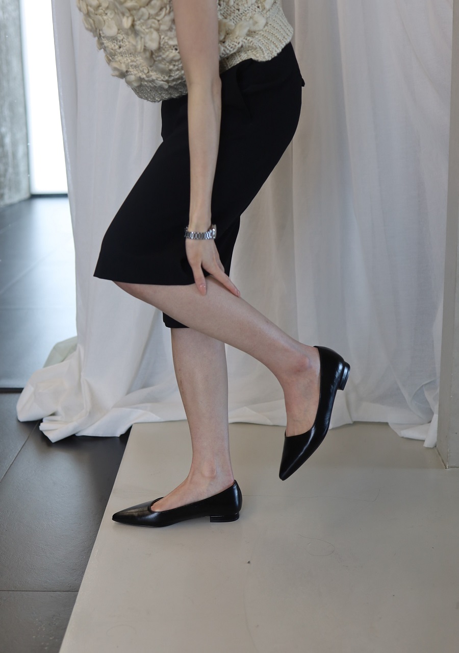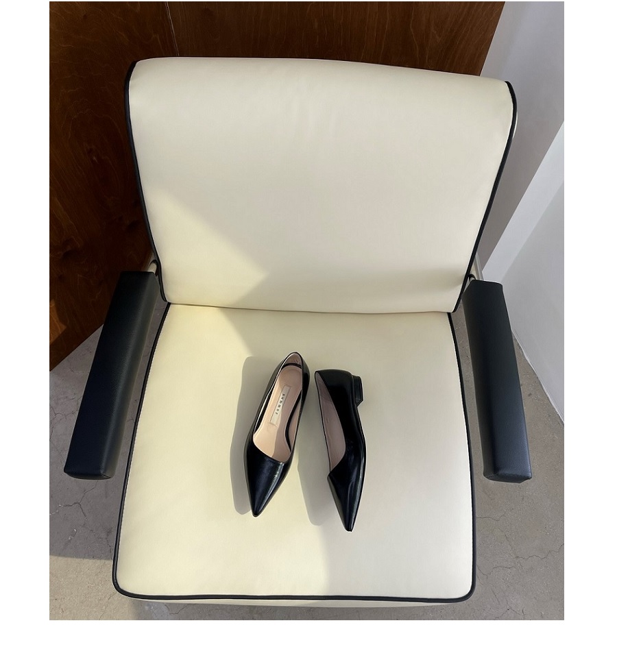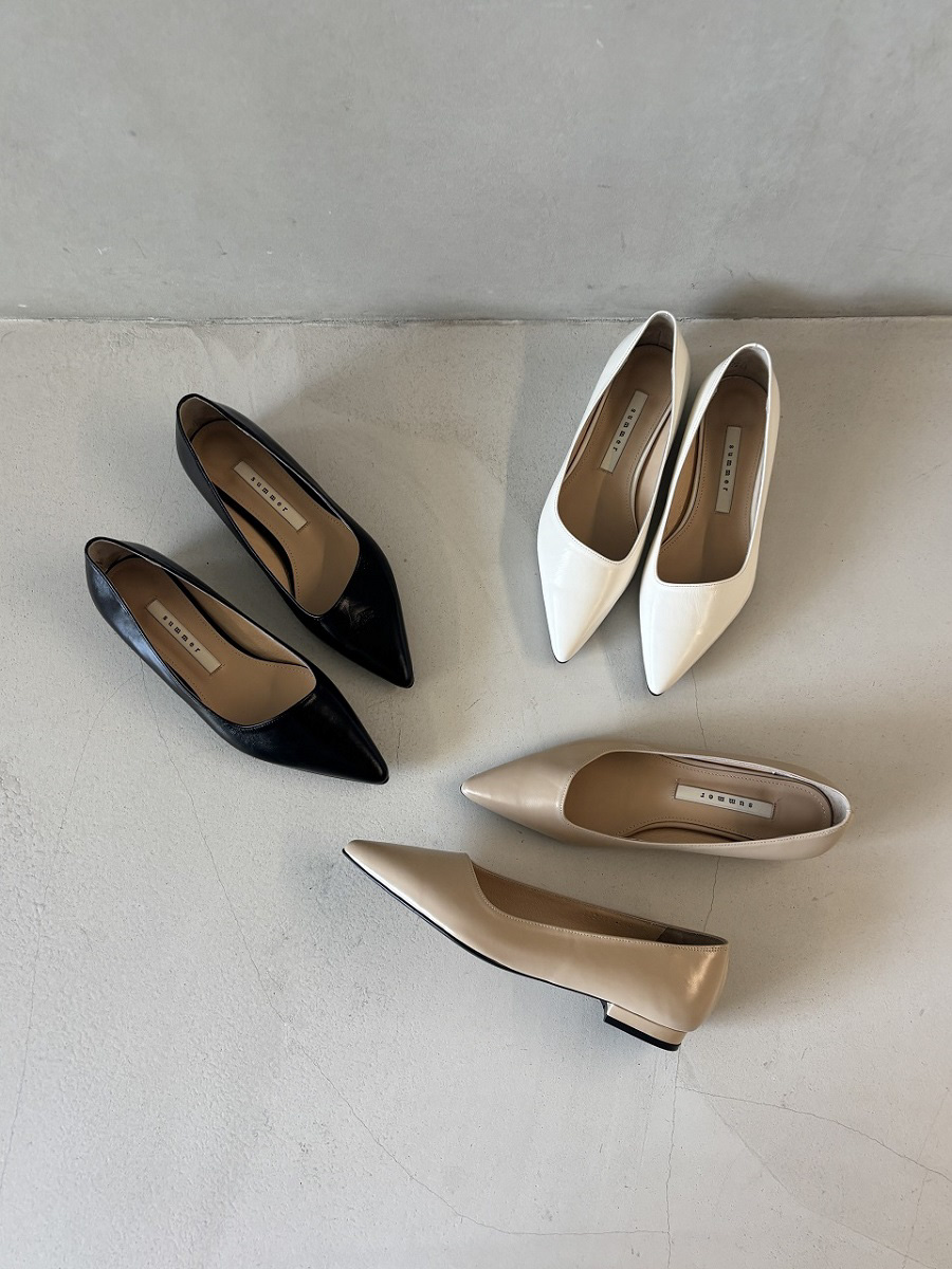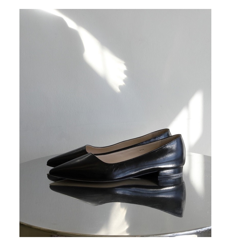 - 끝이 살짝 둥글게 처리된 포인티드 토 스타일의 1.5 cm 플랫 슈즈 입니다.