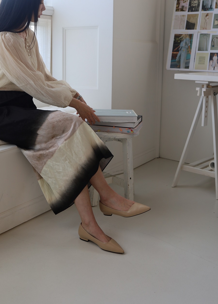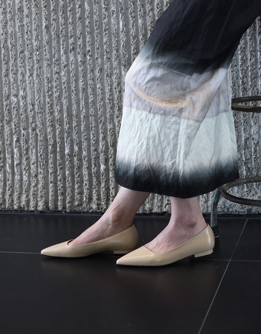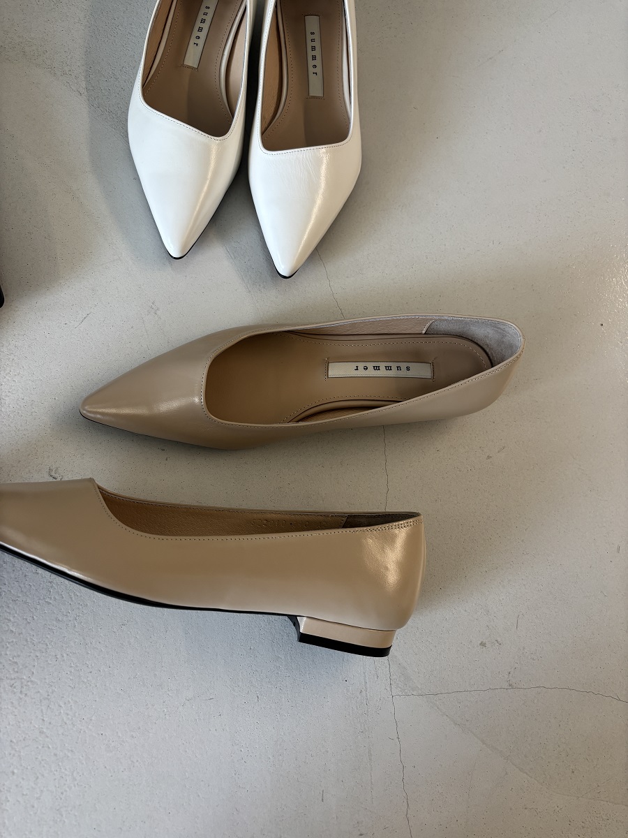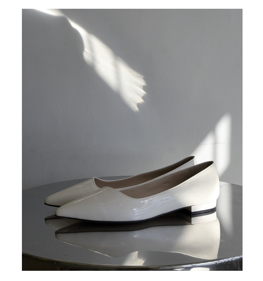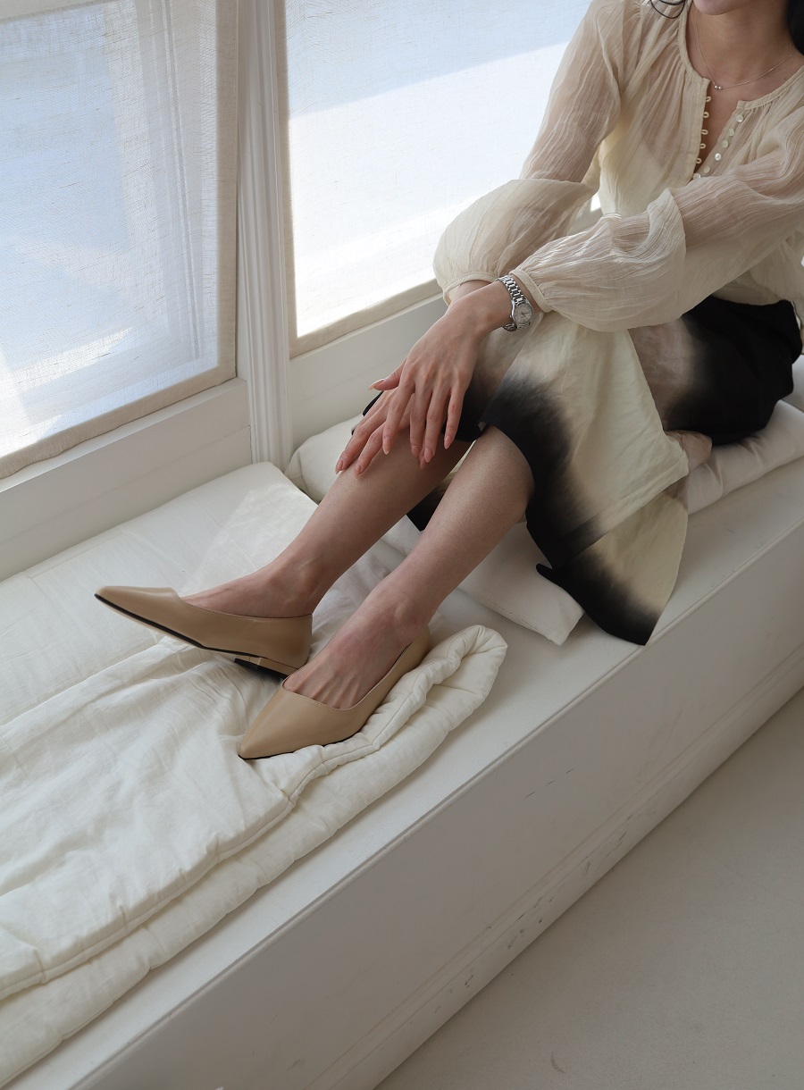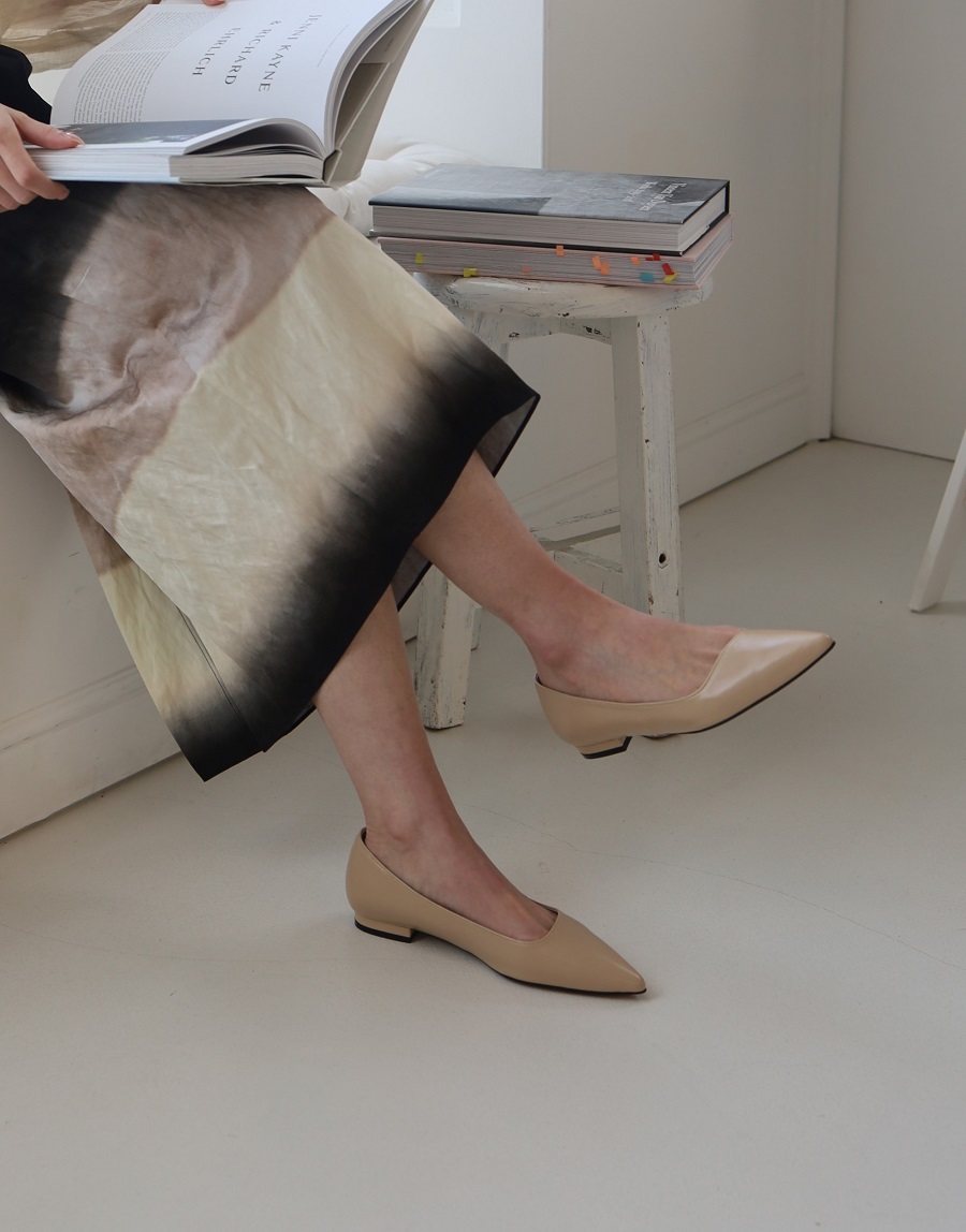 - 끝이 살짝 둥글게 처리된 포인티드 토 스타일의 1.5 cm 플랫 슈즈 입니다.