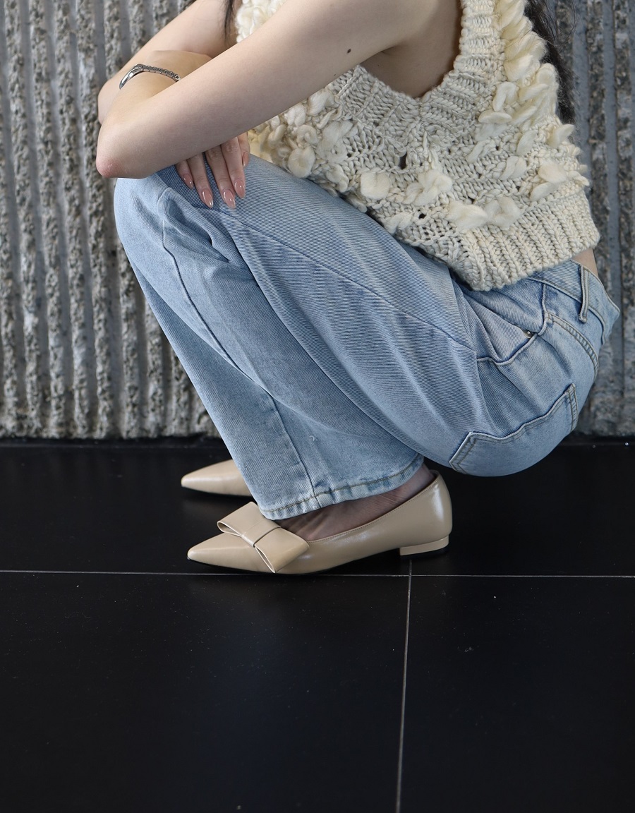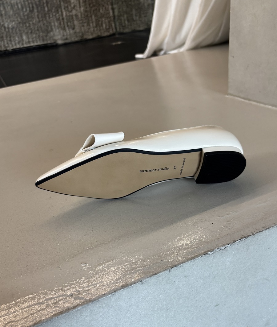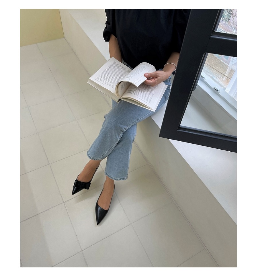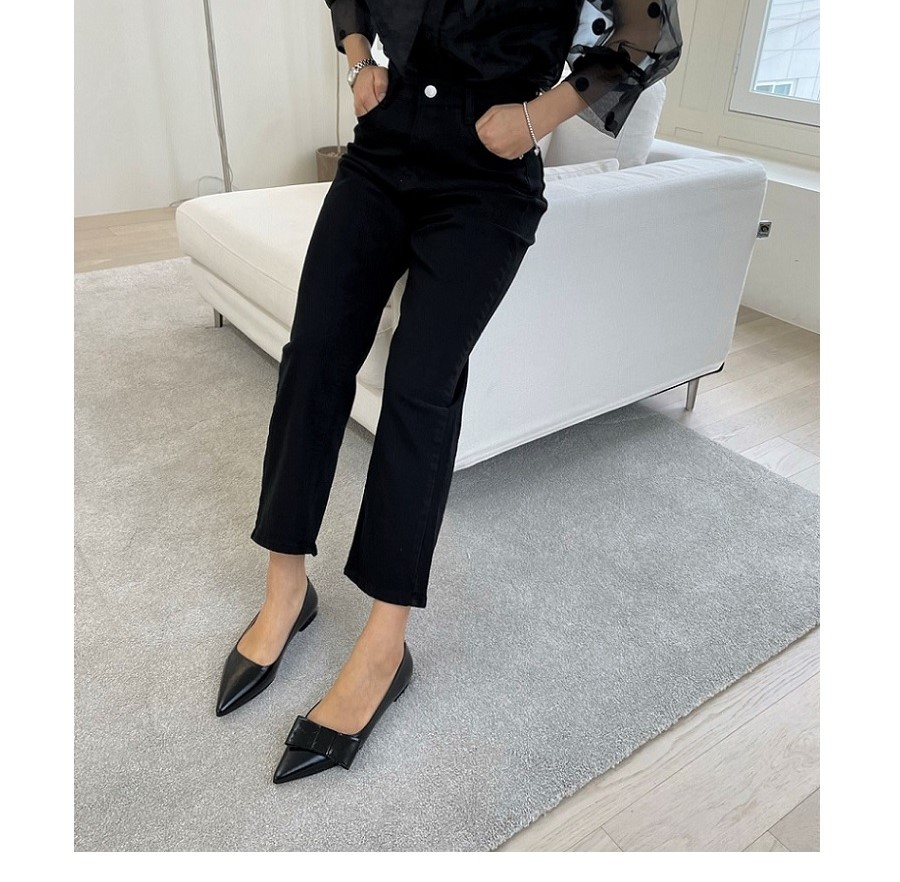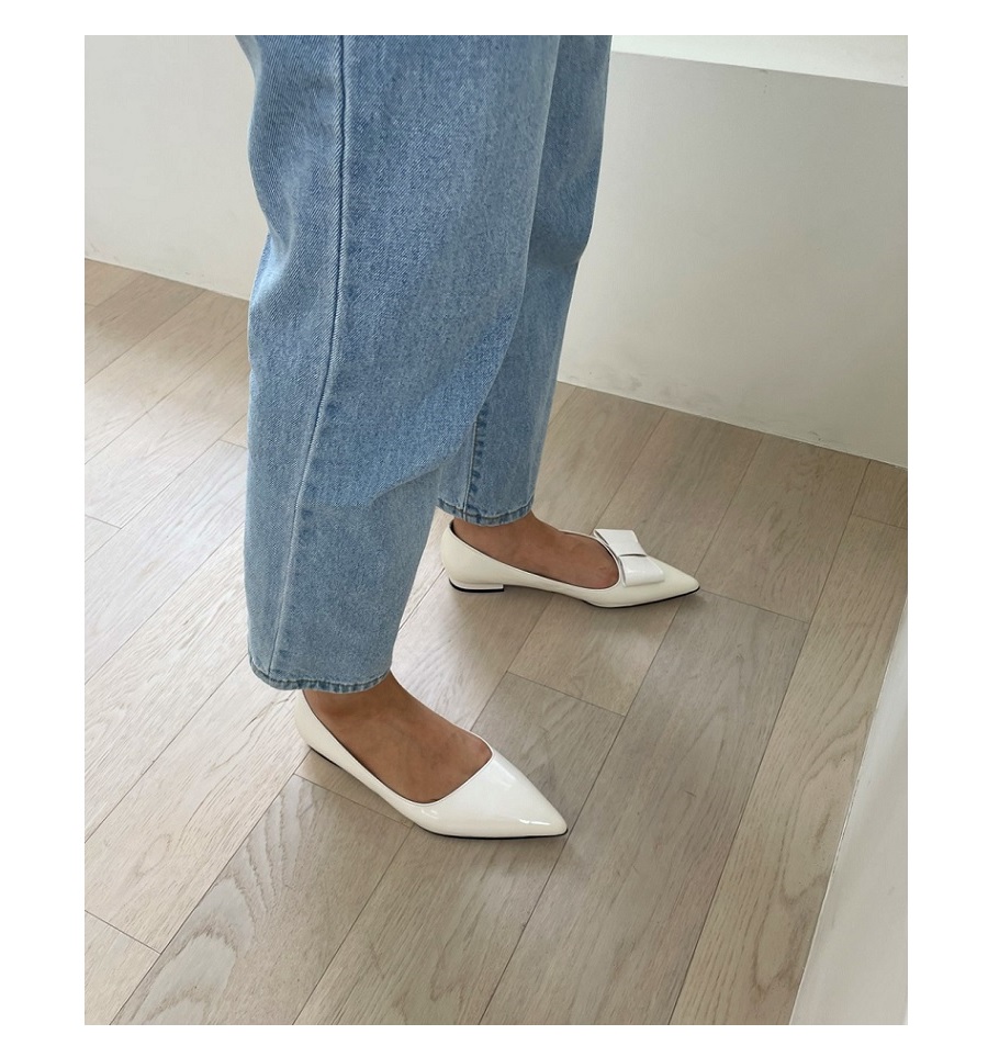 - 끝이 살짝 둥글게 처리된 포인티드 토 스타일의 1.5 cm 플랫 슈즈 입니다.