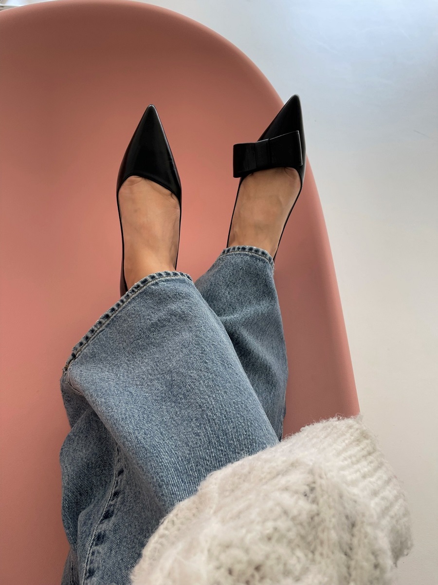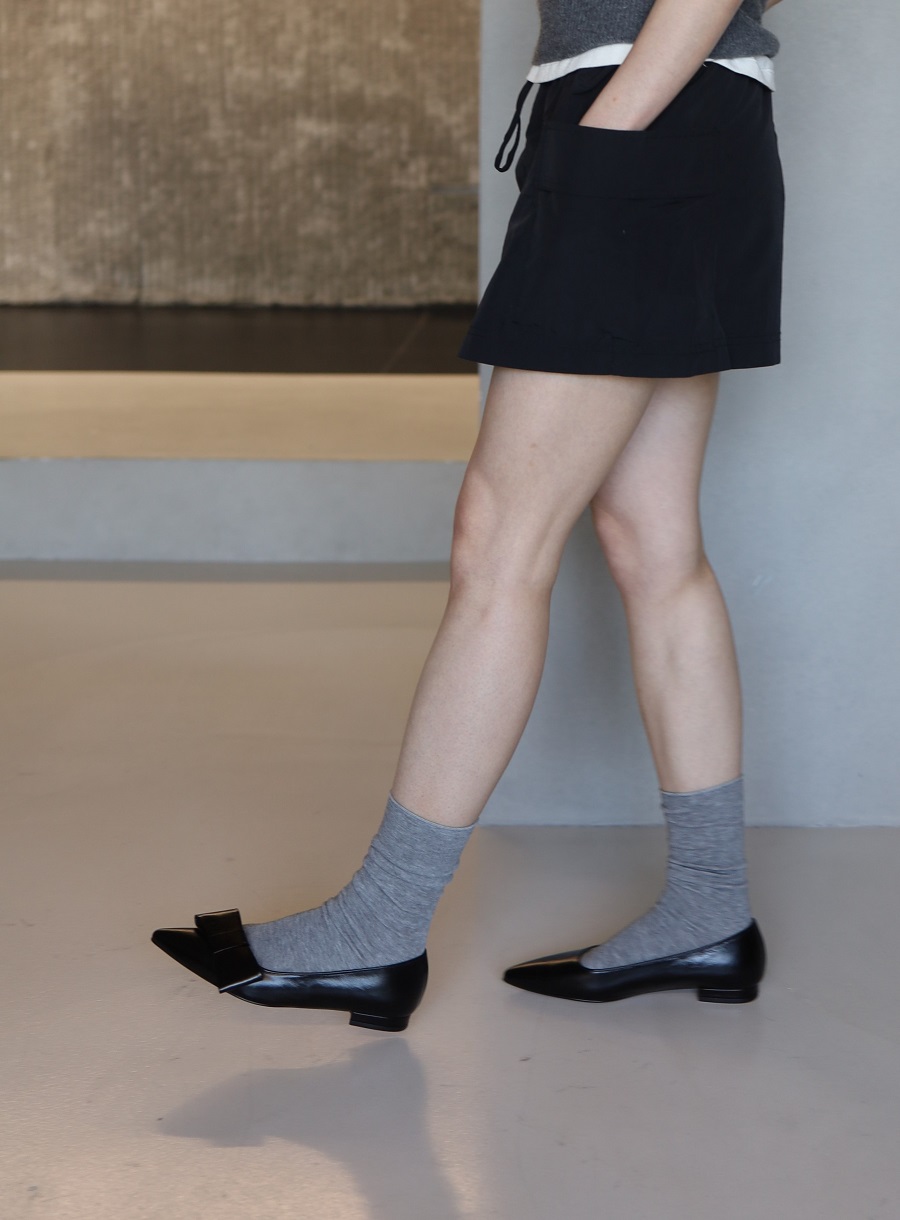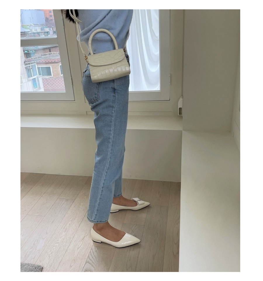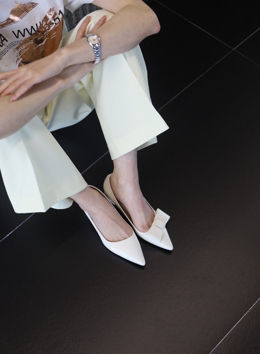 - 끝이 살짝 둥글게 처리된 포인티드 토 스타일의 1.5 cm 플랫 슈즈 입니다.