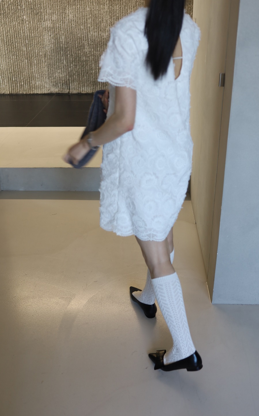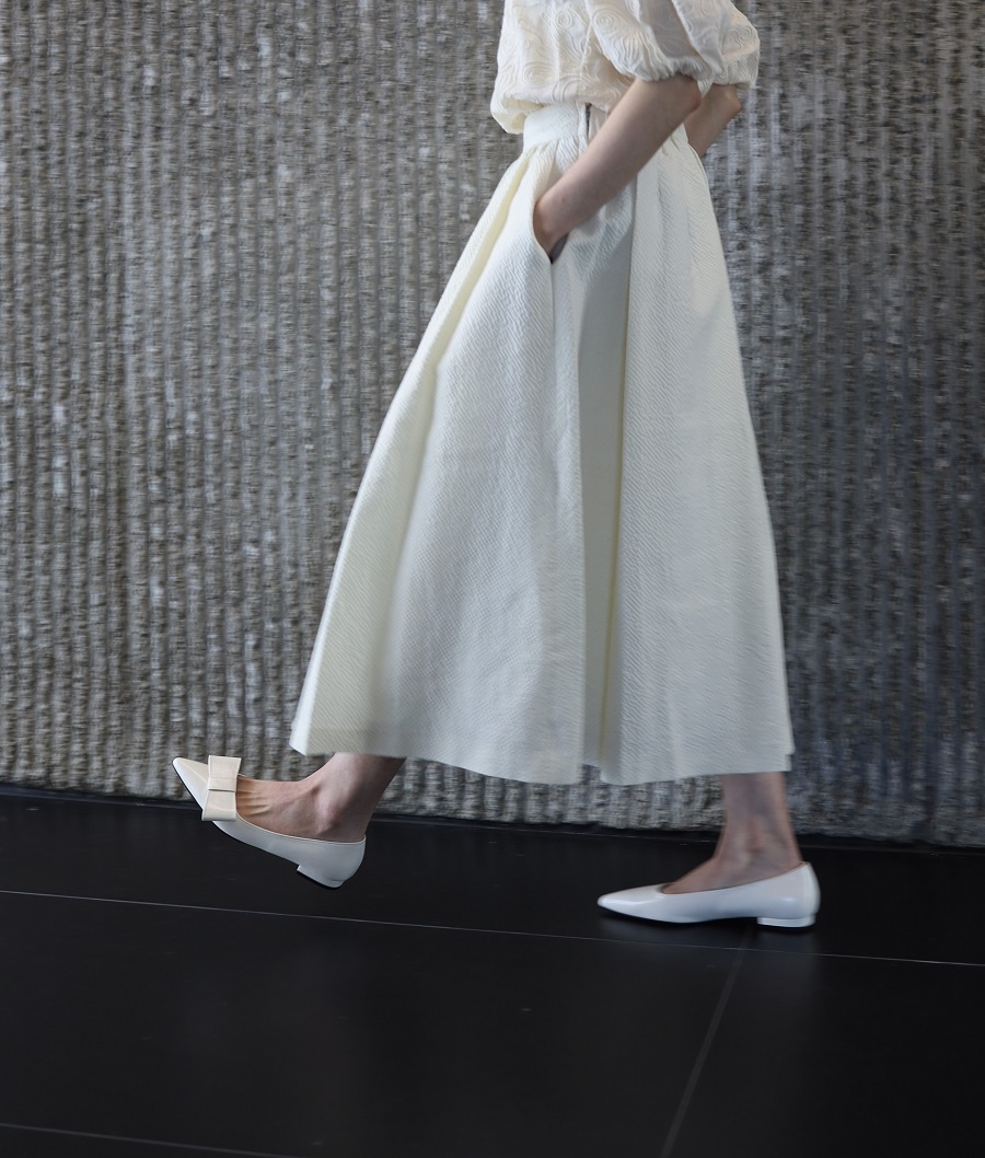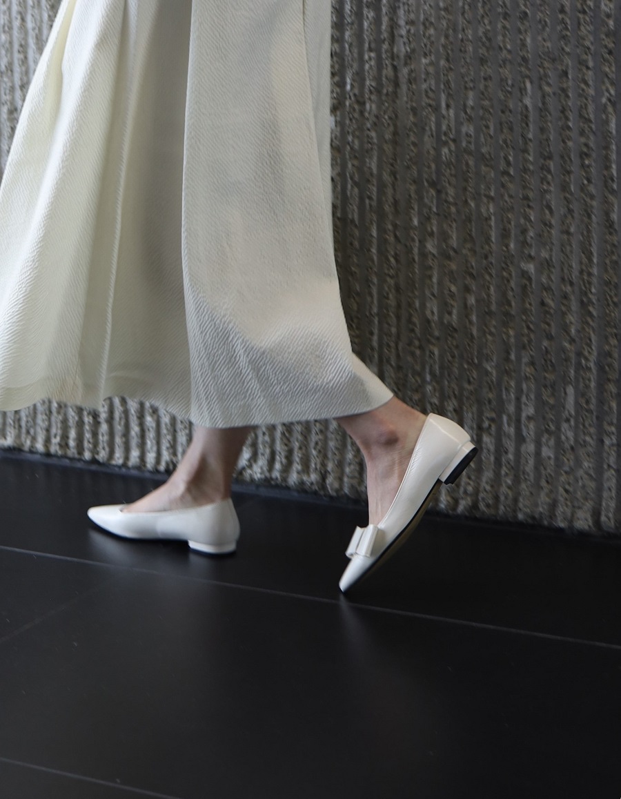- 심플한 기본형의 라인에서 아구라인만 비대칭 사선으로 디자인해 포인트를 주었으며, 한쪽만 큰 리본을 더하여 포인트를 주었습니다.