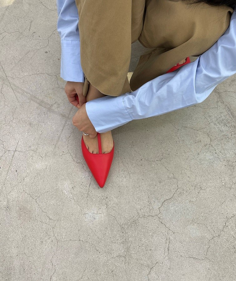 - 매트하면서 쨍한 컬러감의 부드러운 양가죽 소재로 심플한 룩에 슈즈 하나만으로도 포인트를 주기 좋습니다.