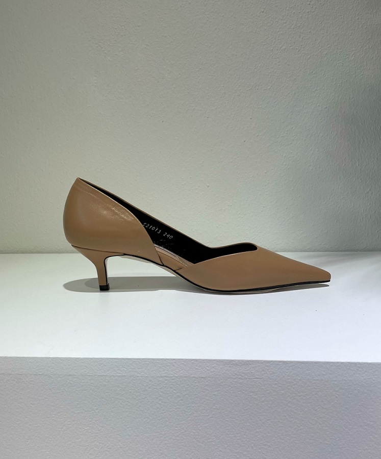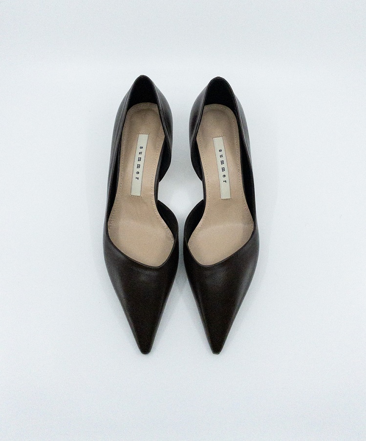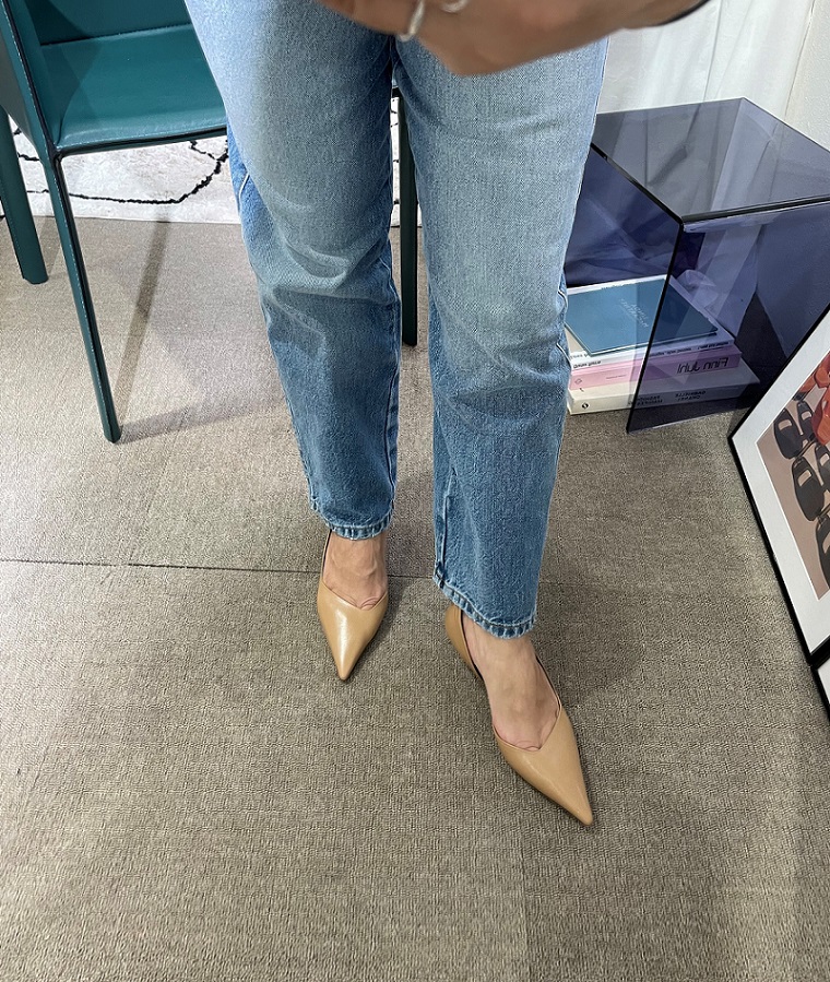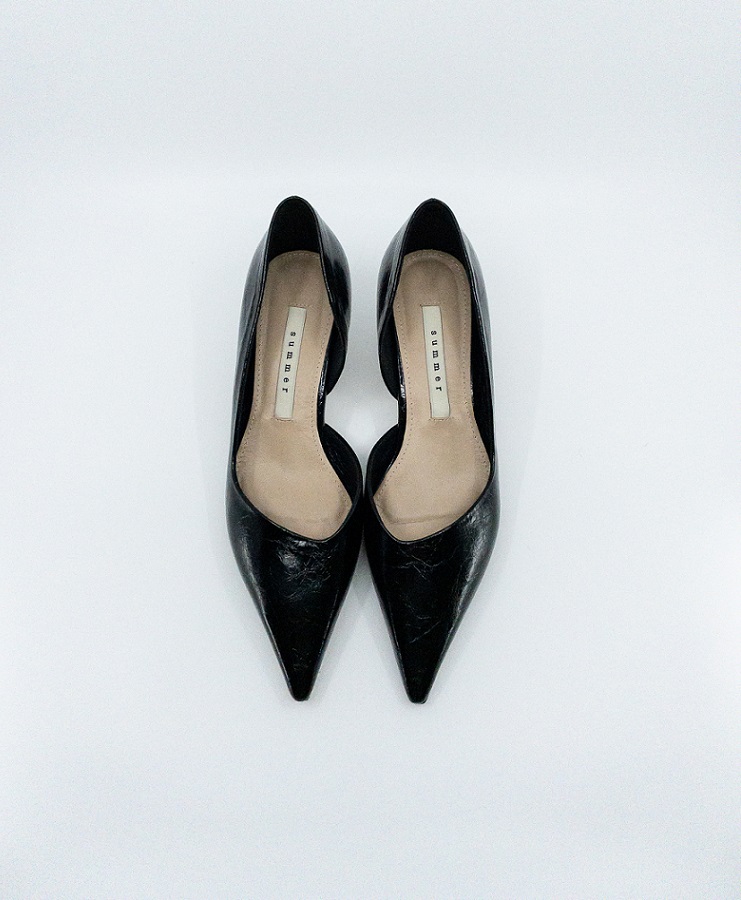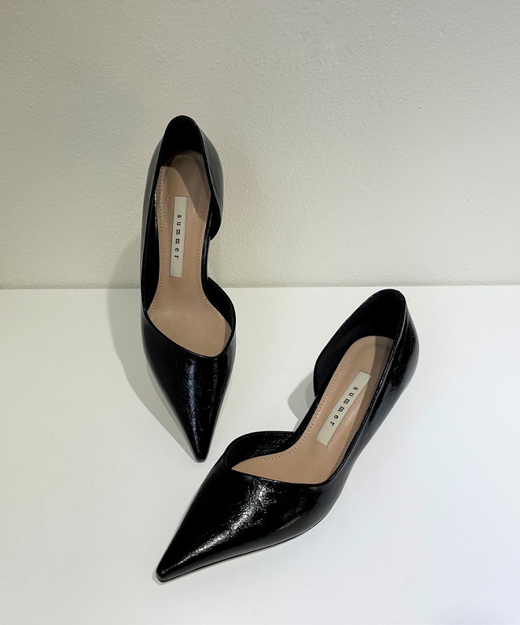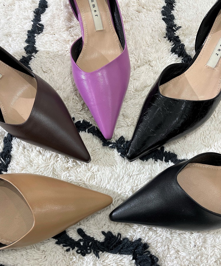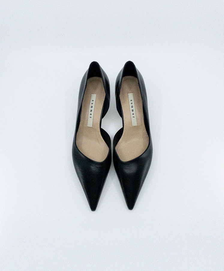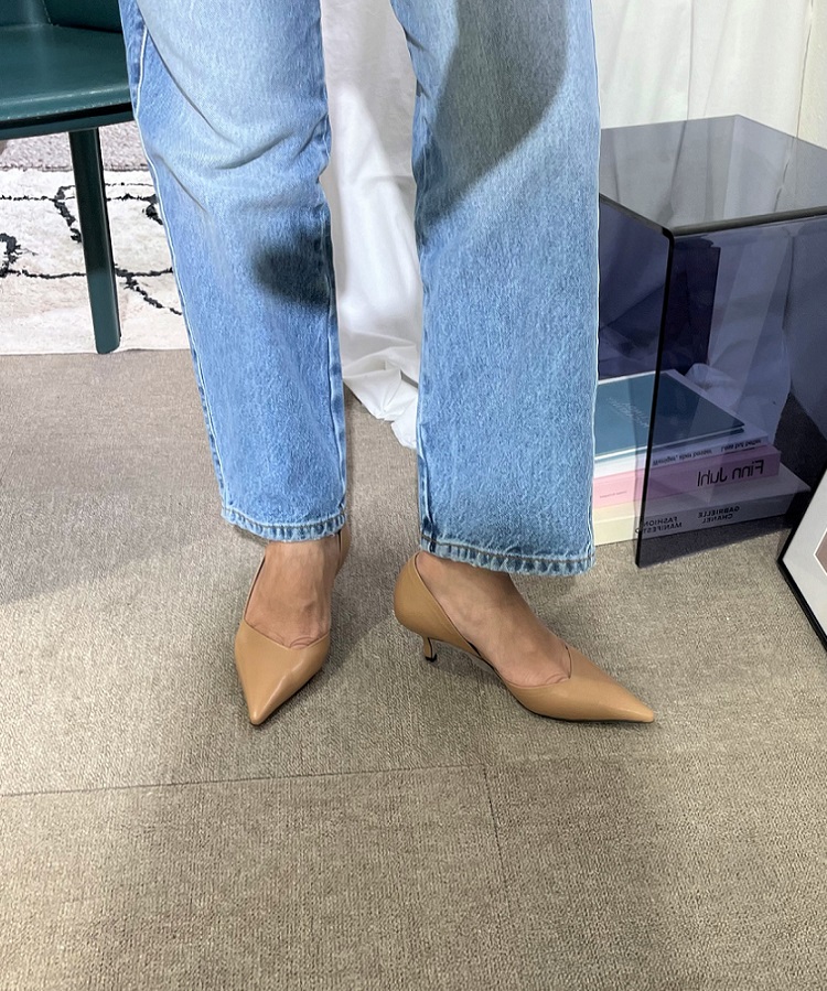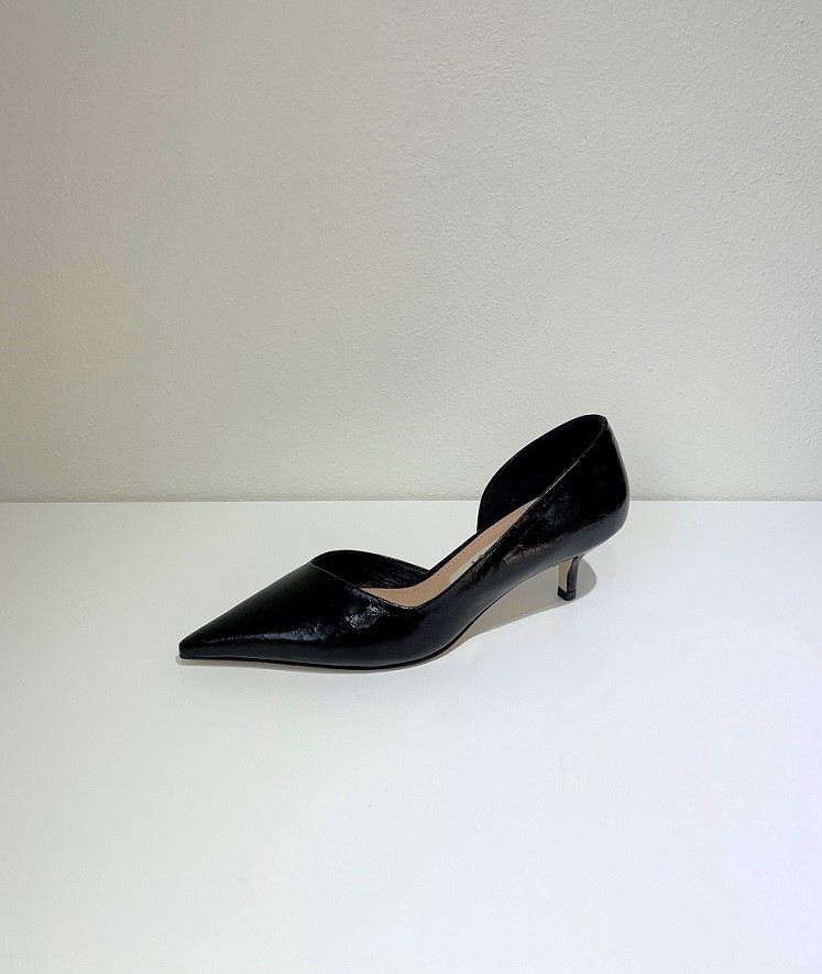 -트렌디한,살짝 긴 기장감으로 날렵하게 빠진 포인티드 토의 5 cm 사이드 오픈 미들힐 입니다.