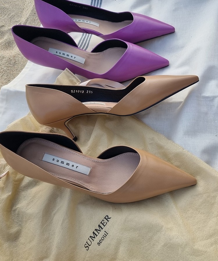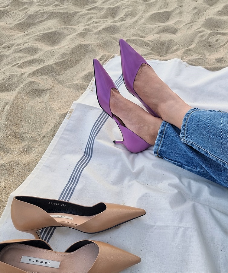 Kate Side Open Middle Heel < S21013 > 케이트 사이드 오픈 미들힐 5컬러 5cm - 베이지 240,퍼플 230