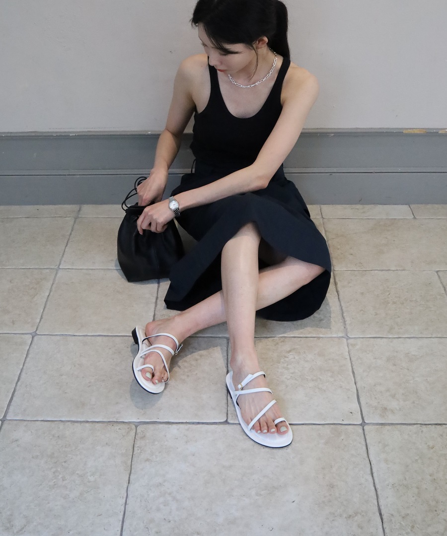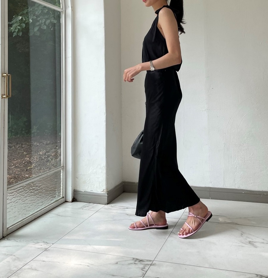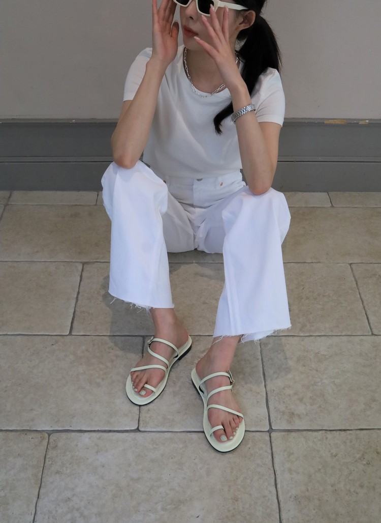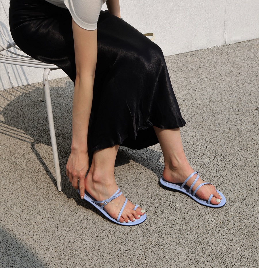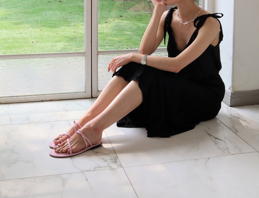 - 4 가닥의 가는 스트랩으로 여성스러운 느낌을 준 캐쥬얼한 슬라이드로 포멀한 룩과 캐주얼한 룩에 편안하게 두루 잘 어울리는 디자인입니다.