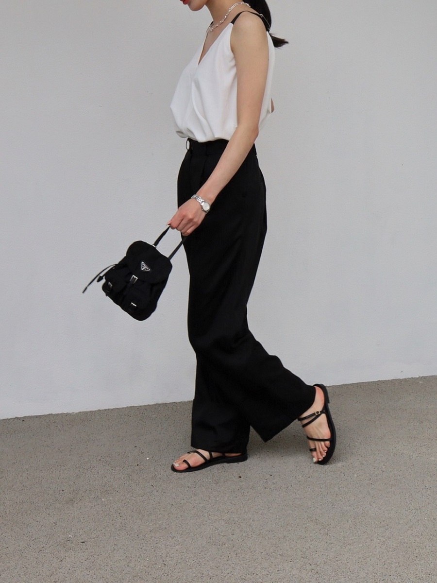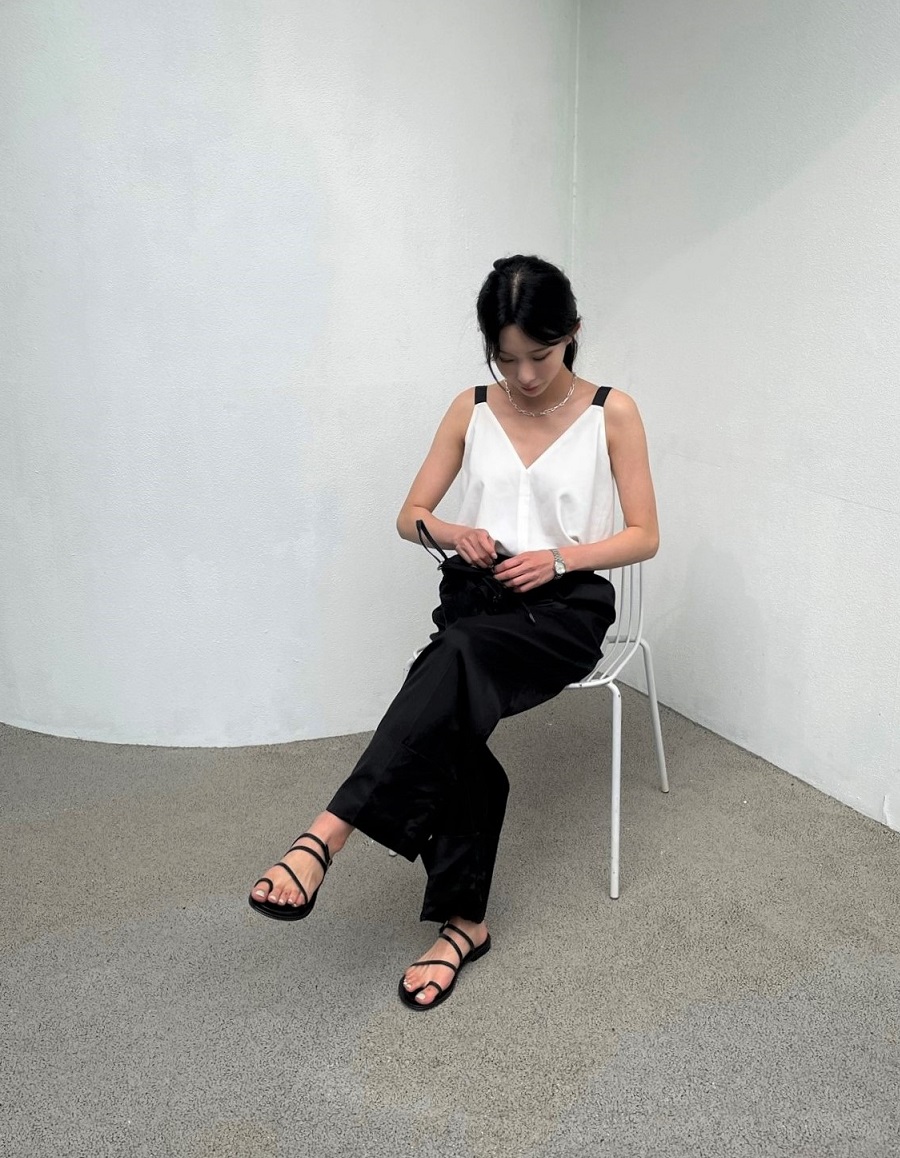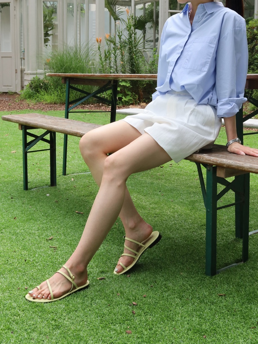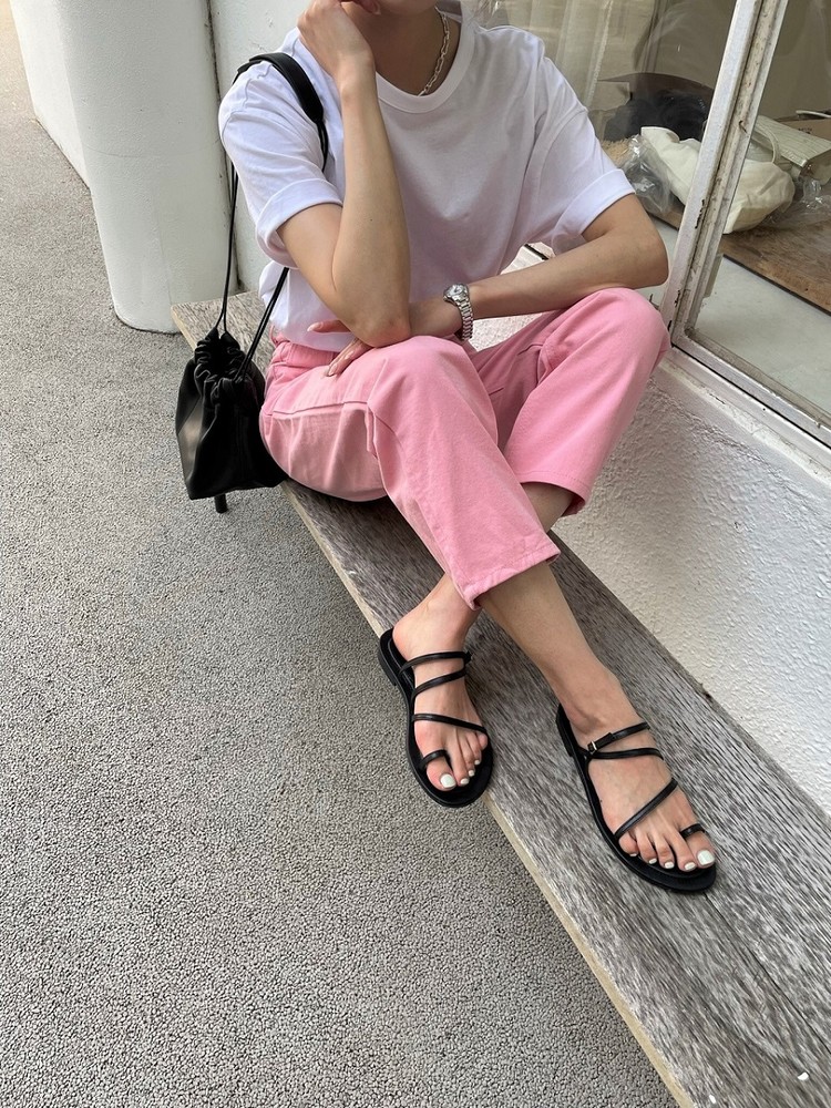- 4 가닥의 가는 스트랩으로 여성스러운 느낌을 준 캐쥬얼한 슬라이드로 포멀한 룩과 캐주얼한 룩에 편안하게 두루 잘 어울리는 디자인입니다.