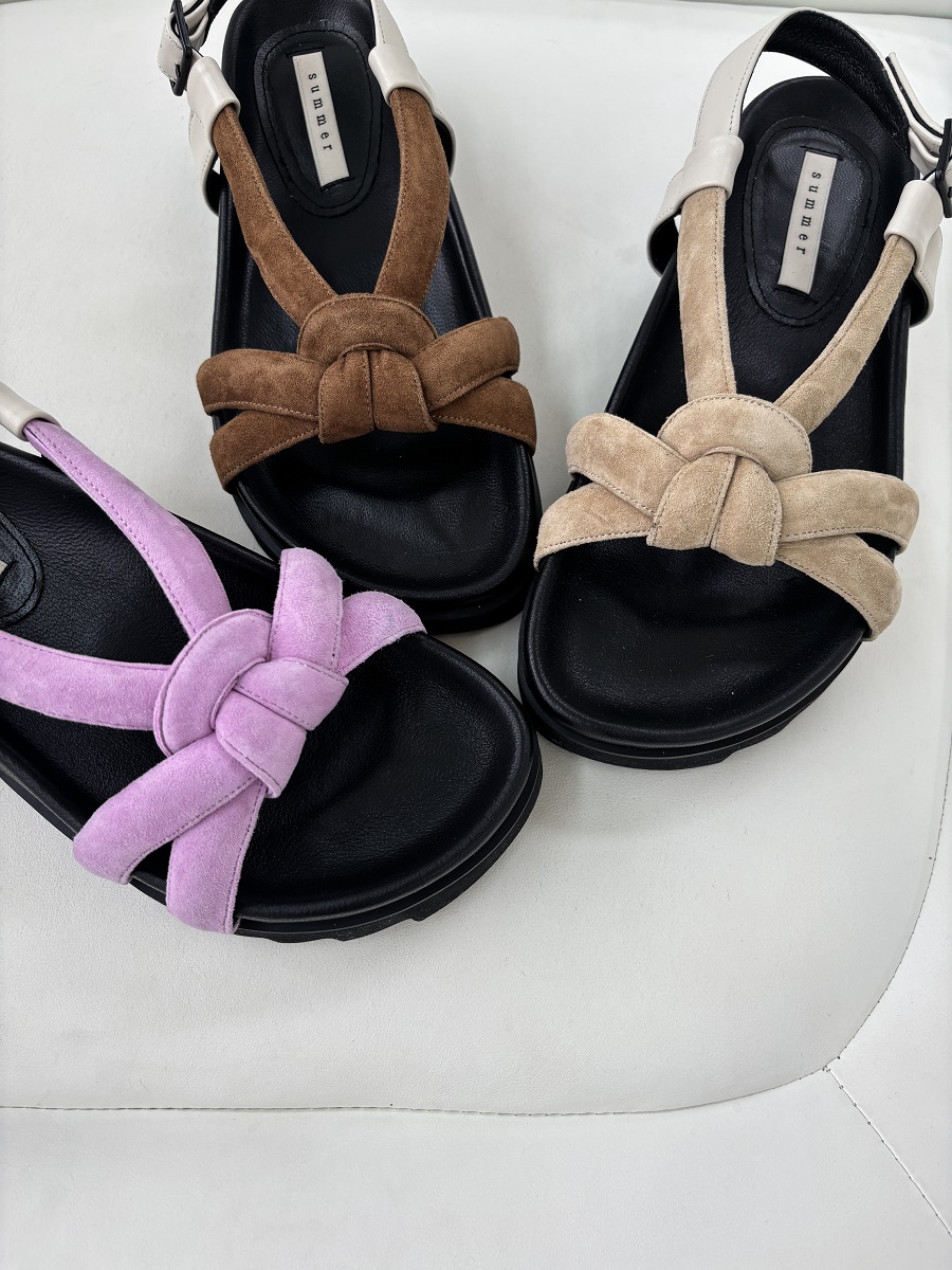 - 컬러감이 예쁘고 결이 고운 양가죽 스웨이드 소재와 부드러운 램스킨 소재에 킵스킨 소가죽을 섞어 사용하여, 소재감과 컬러감이 특별하게 느껴지는 샌들입니다.