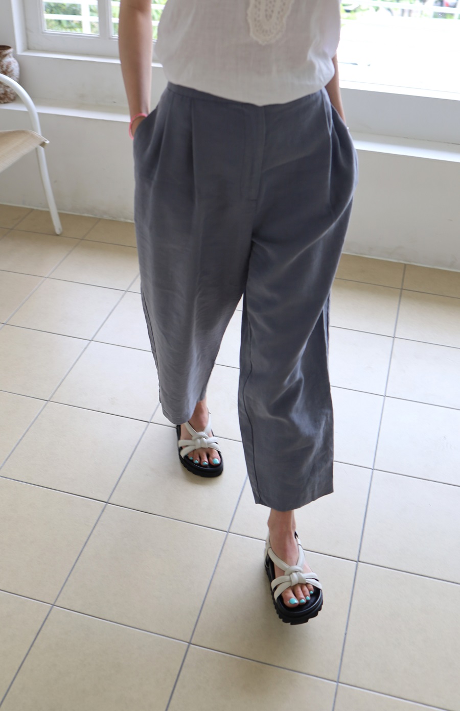 -약 4.5 cm 굽높이로 안정감 있으며, 데일리로 쉽게 신을수 있는 편안한 제품입니다.