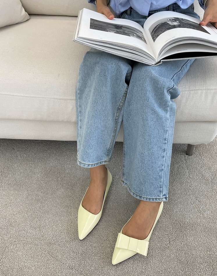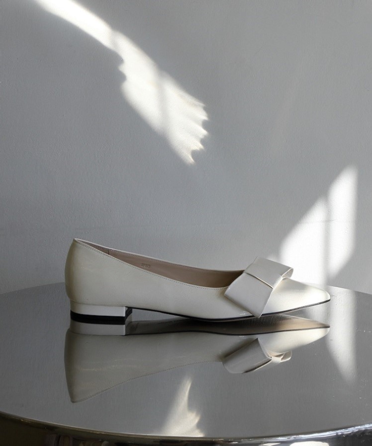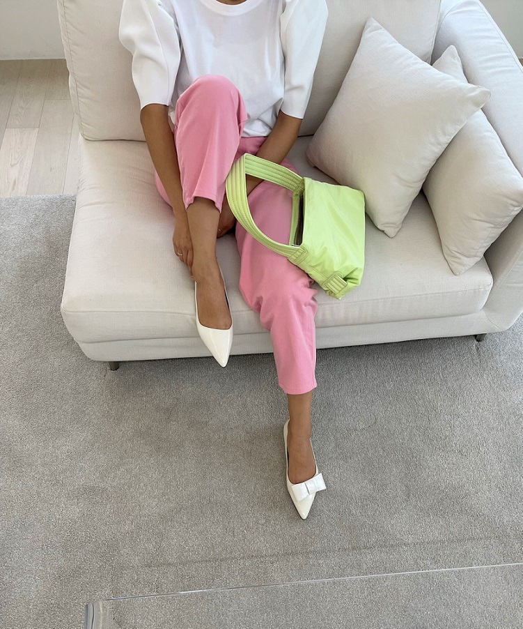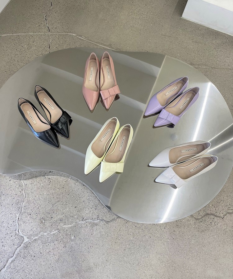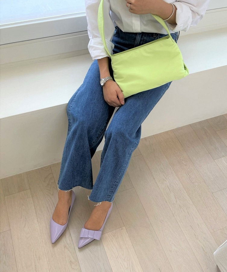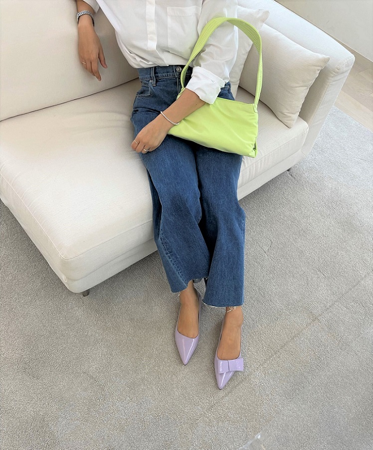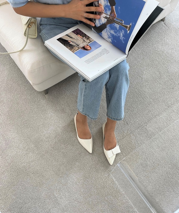 -비대칭 사선 아구 라인에 한쪽만 큰 리본을 더하여 포인트를 주었습니다.
