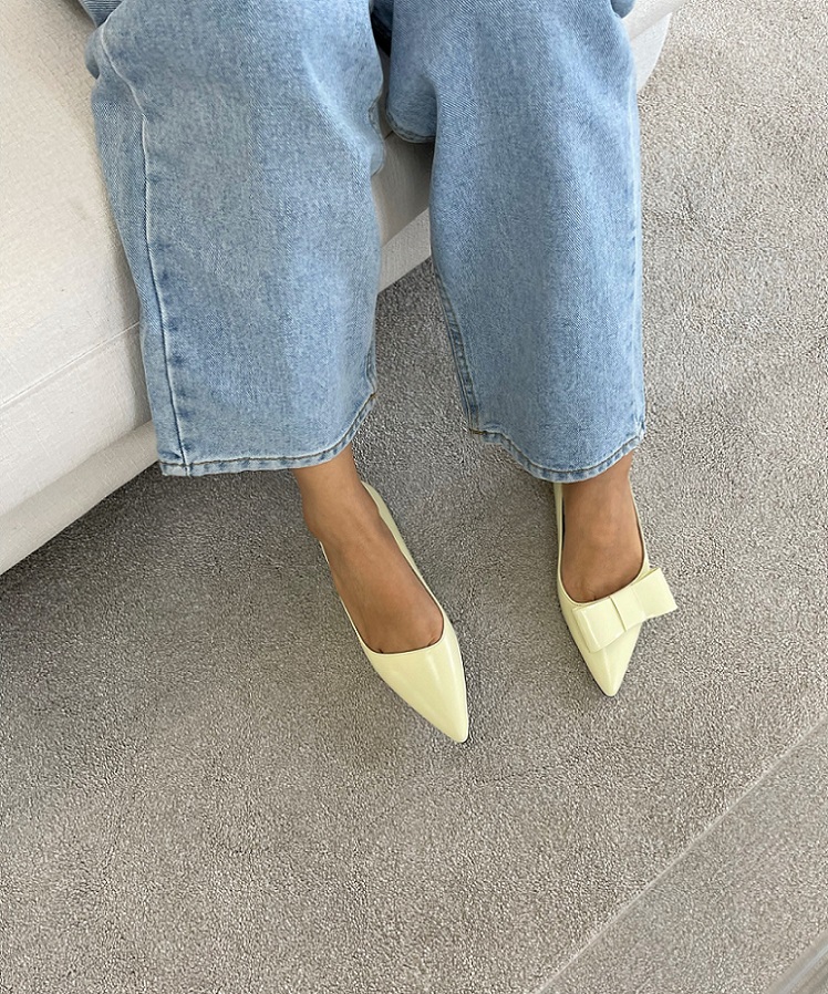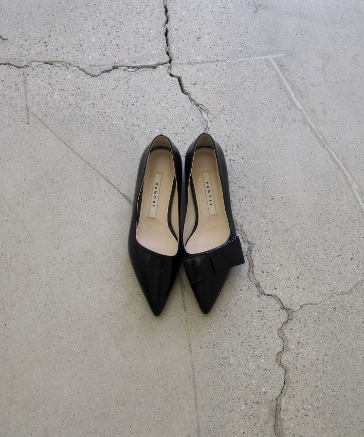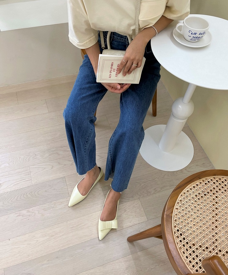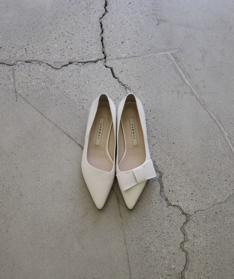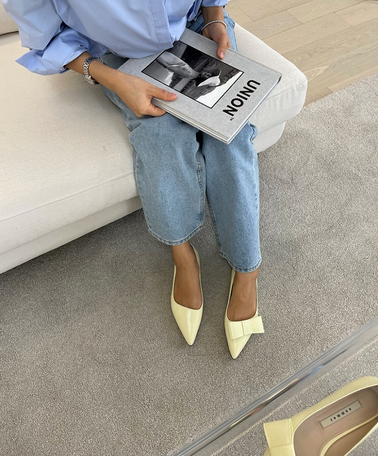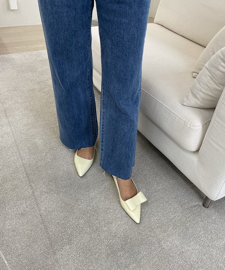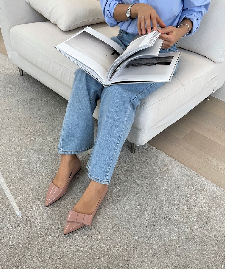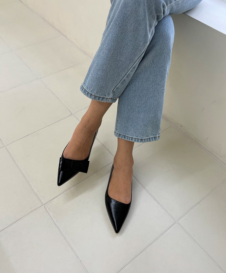 -비대칭 사선 아구 라인에 한쪽만 큰 리본을 더하여 포인트를 주었습니다.