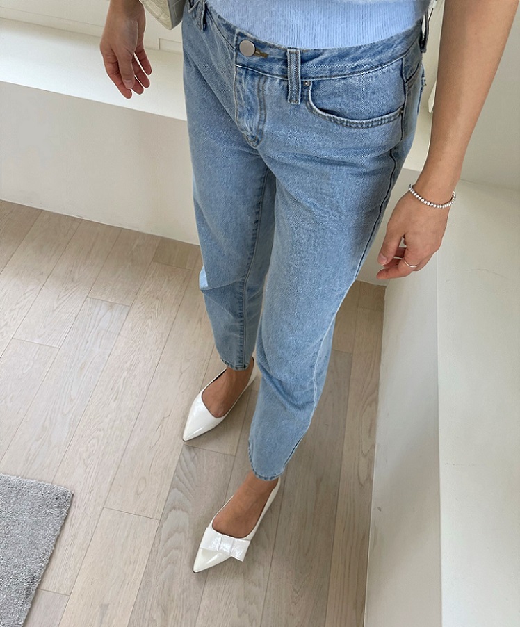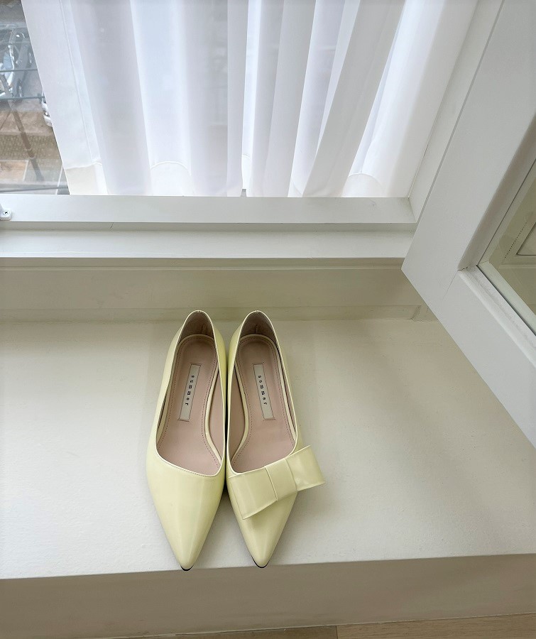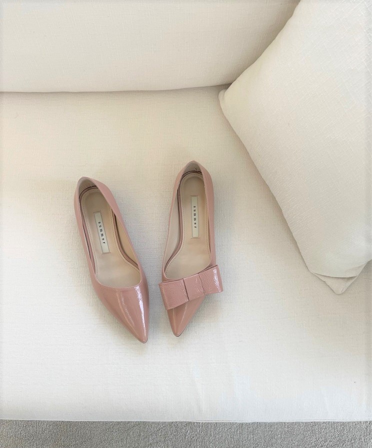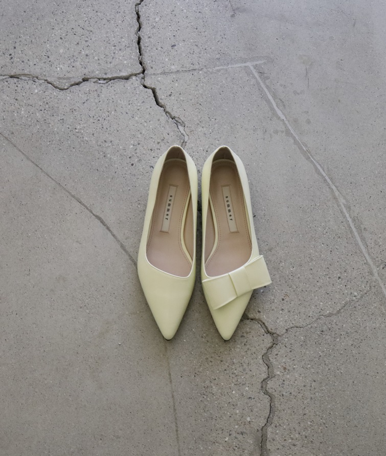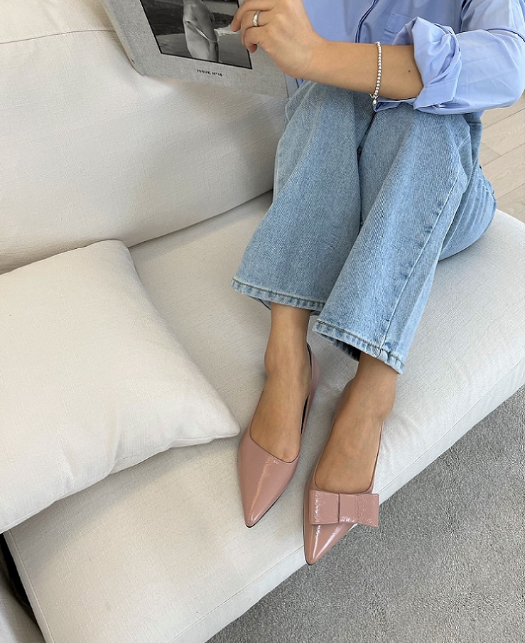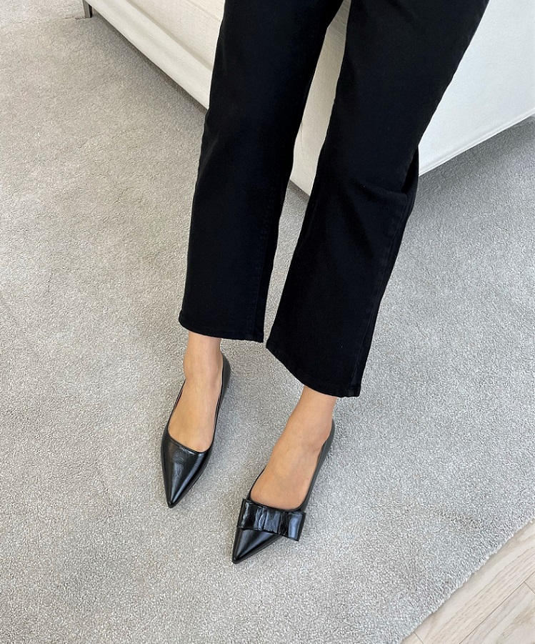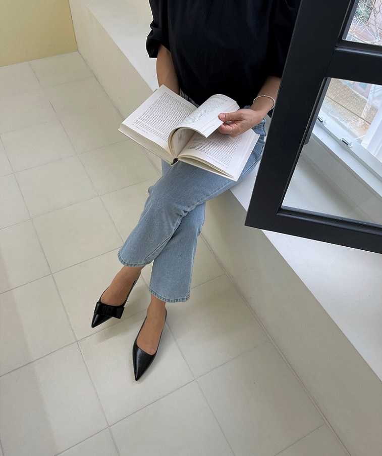-비대칭 사선 아구 라인에 한쪽만 큰 리본을 더하여 포인트를 주었습니다.