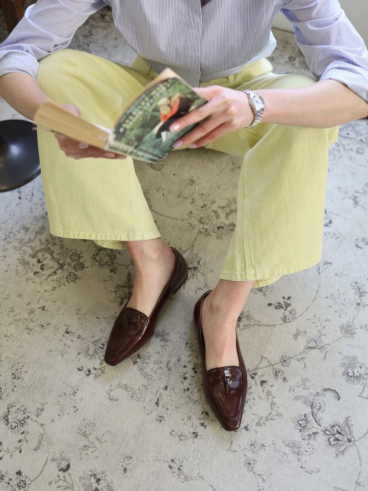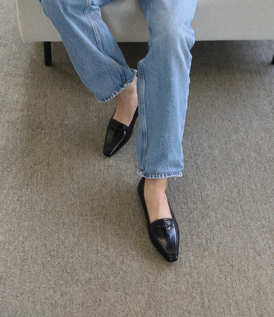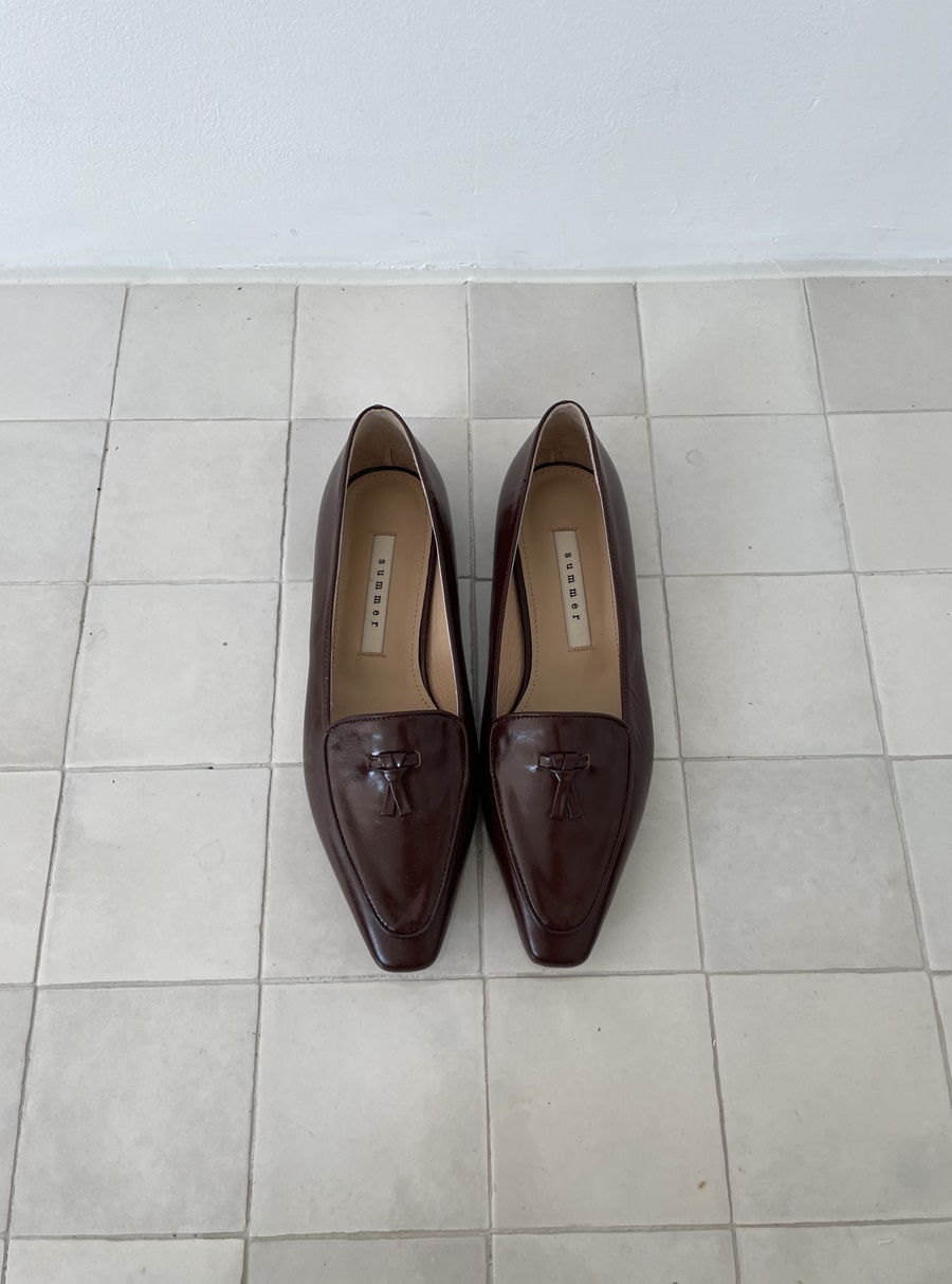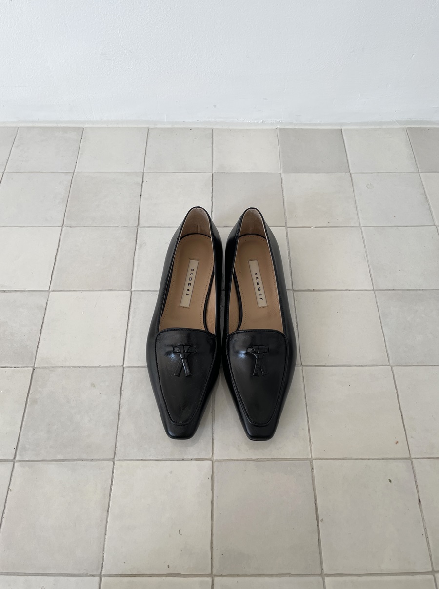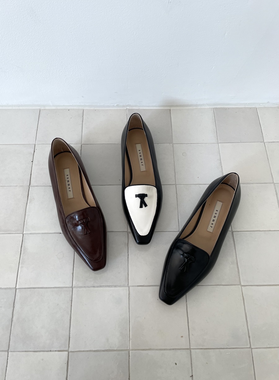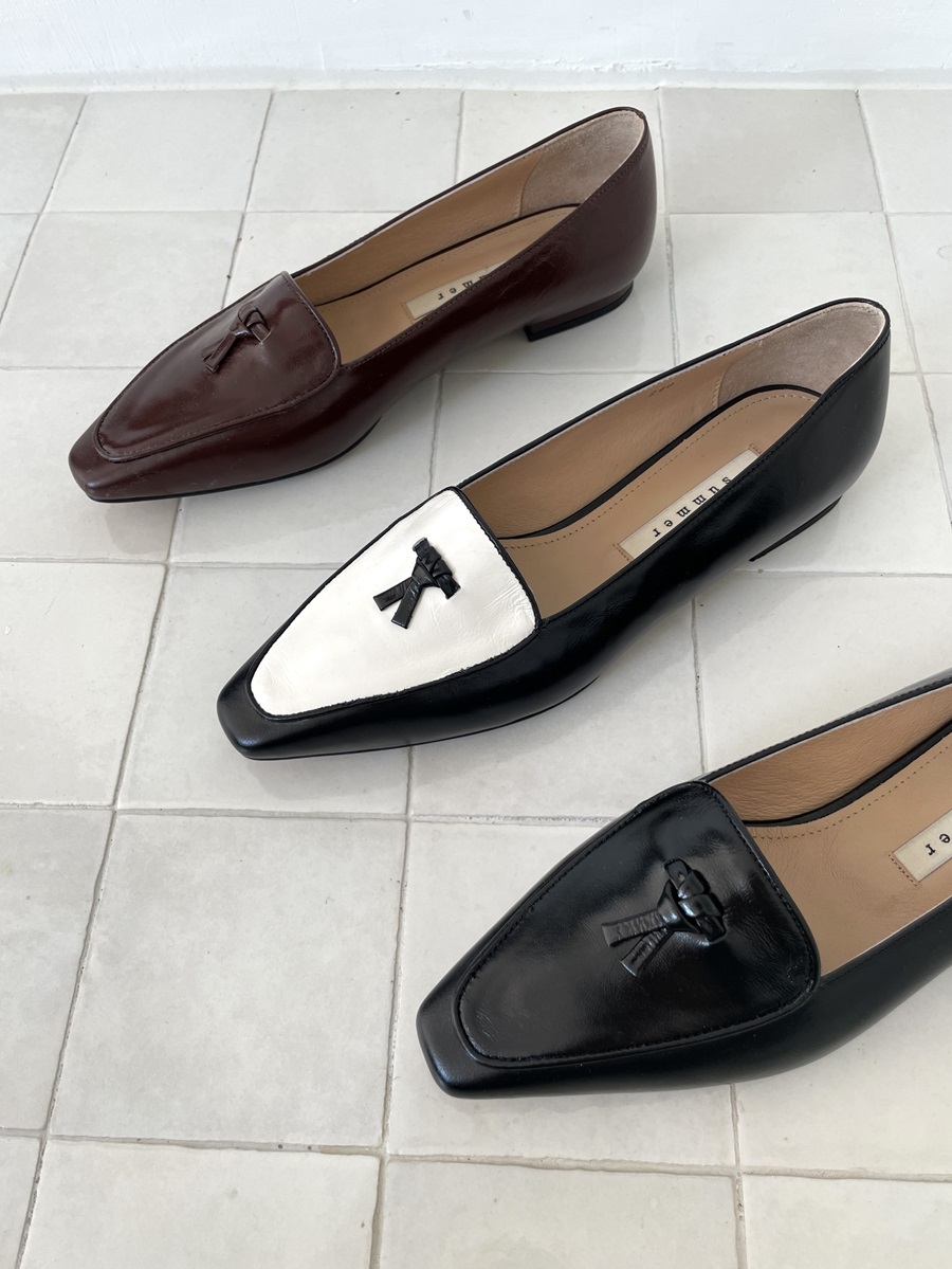-슬림하게 빠진 스퀘어 토의 라스트에 자연스러운 광택감의 부드러운 소가죽, 작고 단정한 탓셀 장식을 넣어 군더더기 없이 깔끔하게 디자인한 1cm 로퍼 입니다.