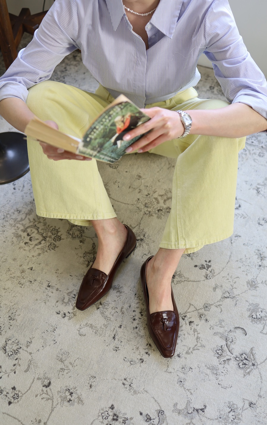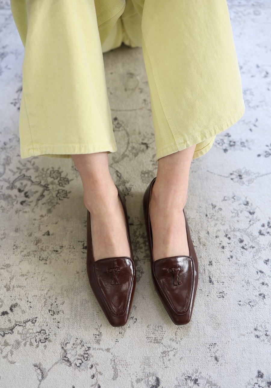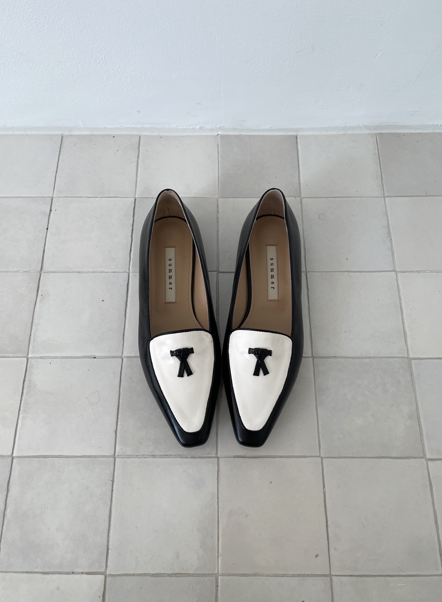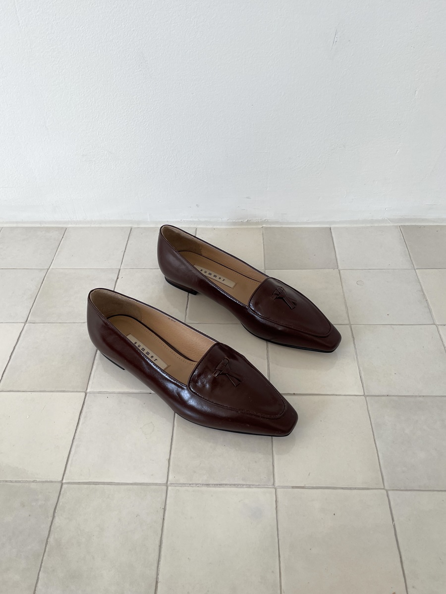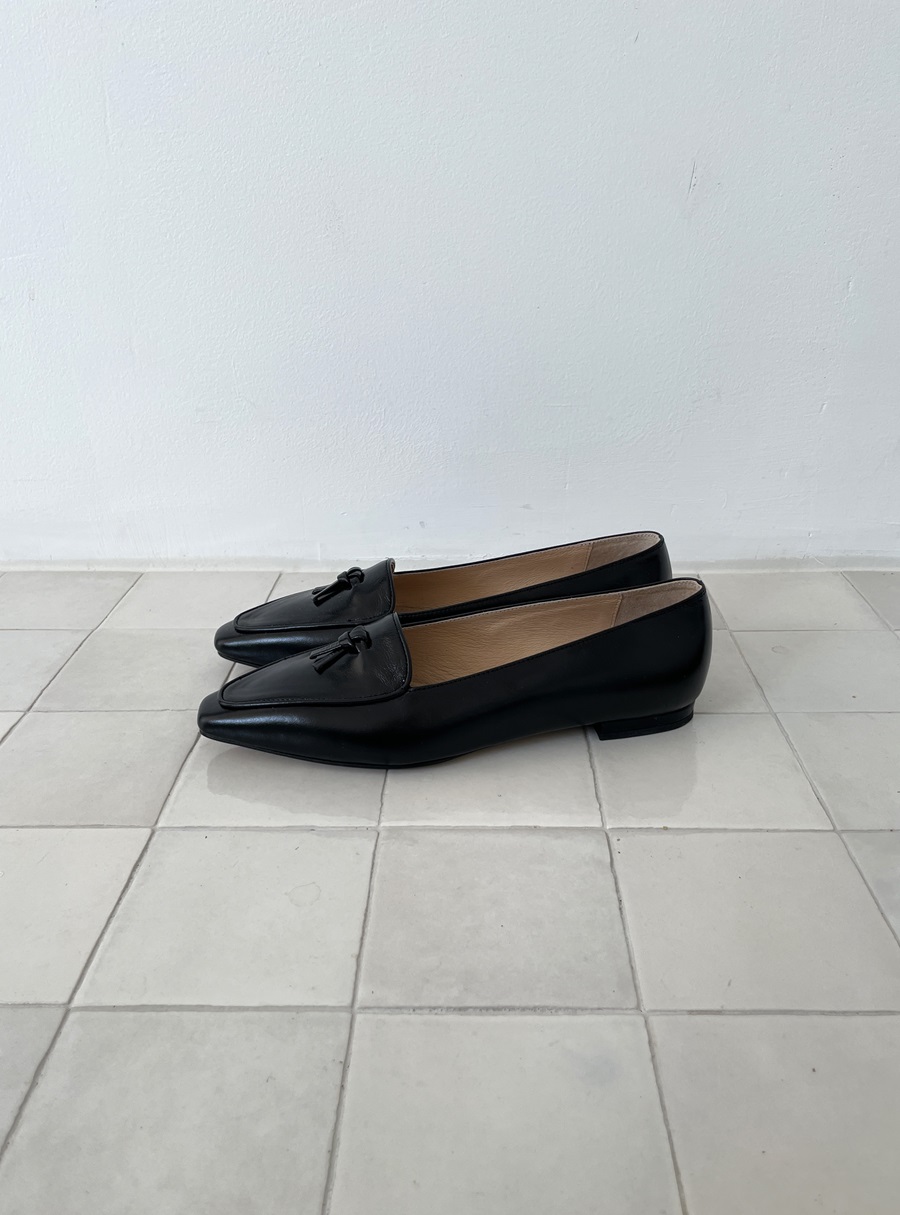 -슬림하게 빠진 스퀘어 토의 라스트에 자연스러운 광택감의 부드러운 소가죽, 작고 단정한 탓셀 장식을 넣어 군더더기 없이 깔끔하게 디자인한 1cm 로퍼 입니다.