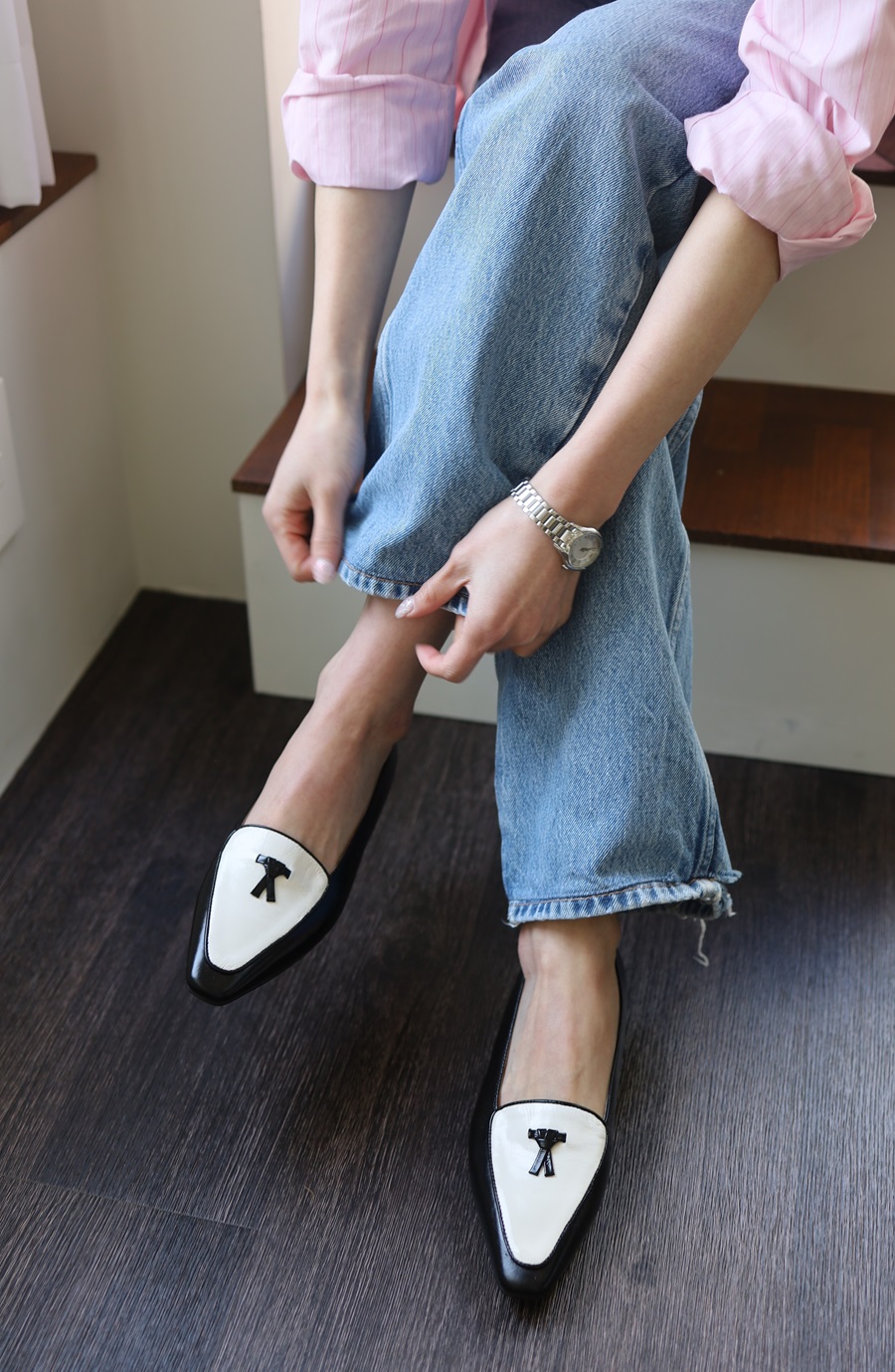 -일반적인 기본 로퍼들 보다는 발등을 덮는 기장을 짧게 내서 로퍼와 플랫 단화의 경계를 넘나드는 제픔으로 더욱 부담없이 편하게 4계절 데일리로 신기 좋으며,