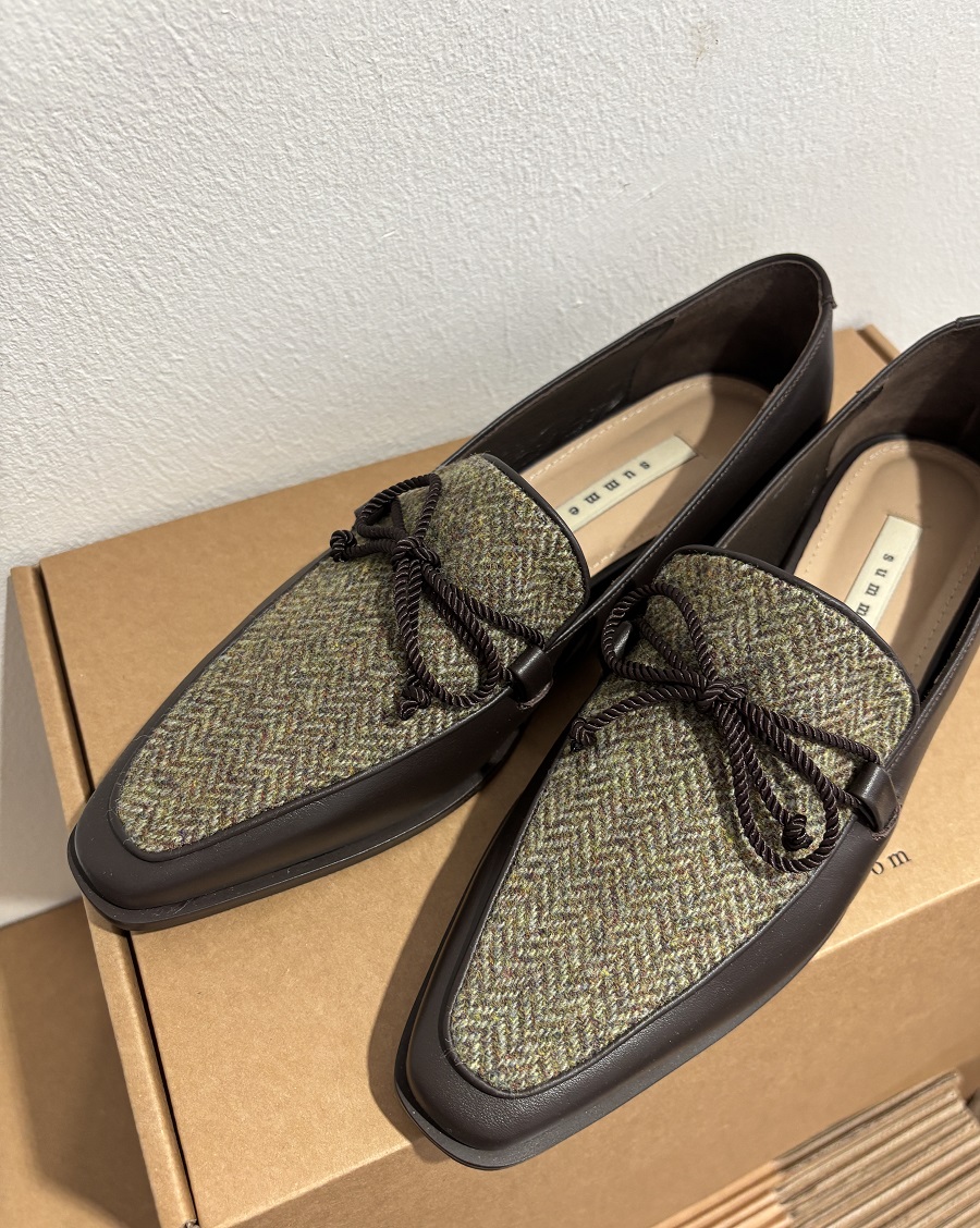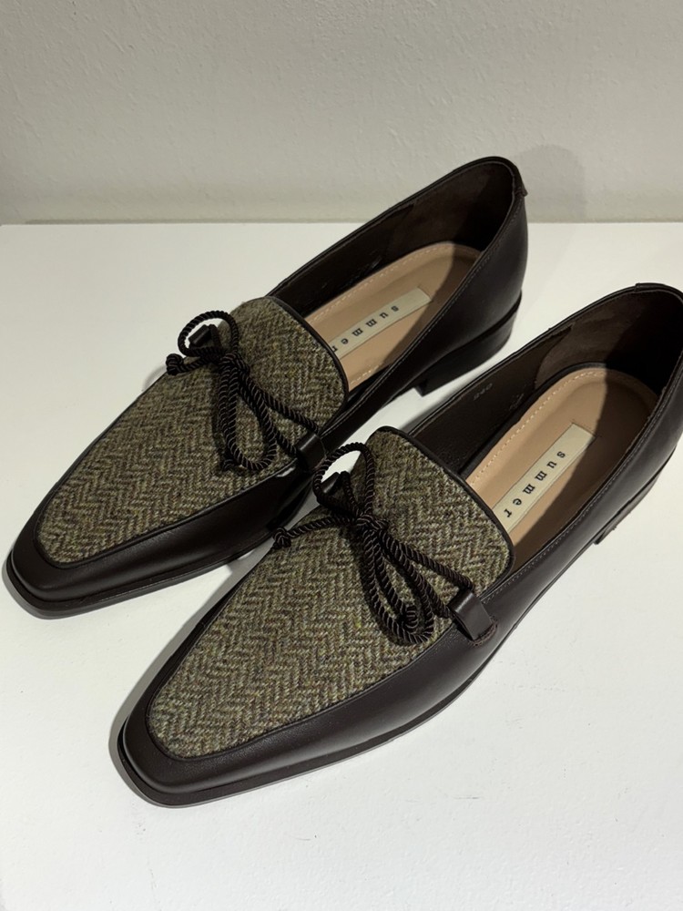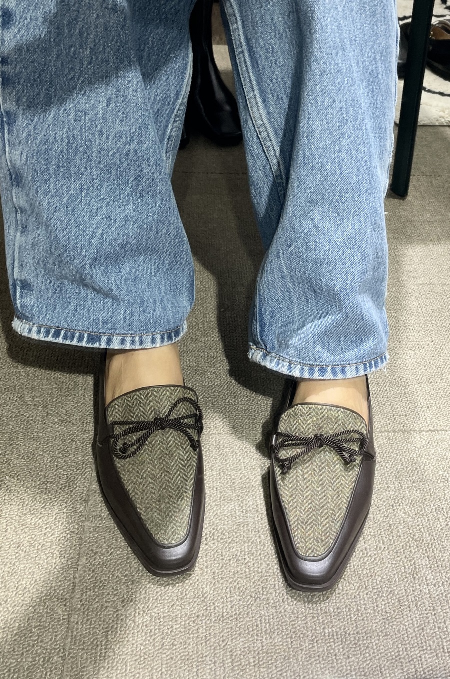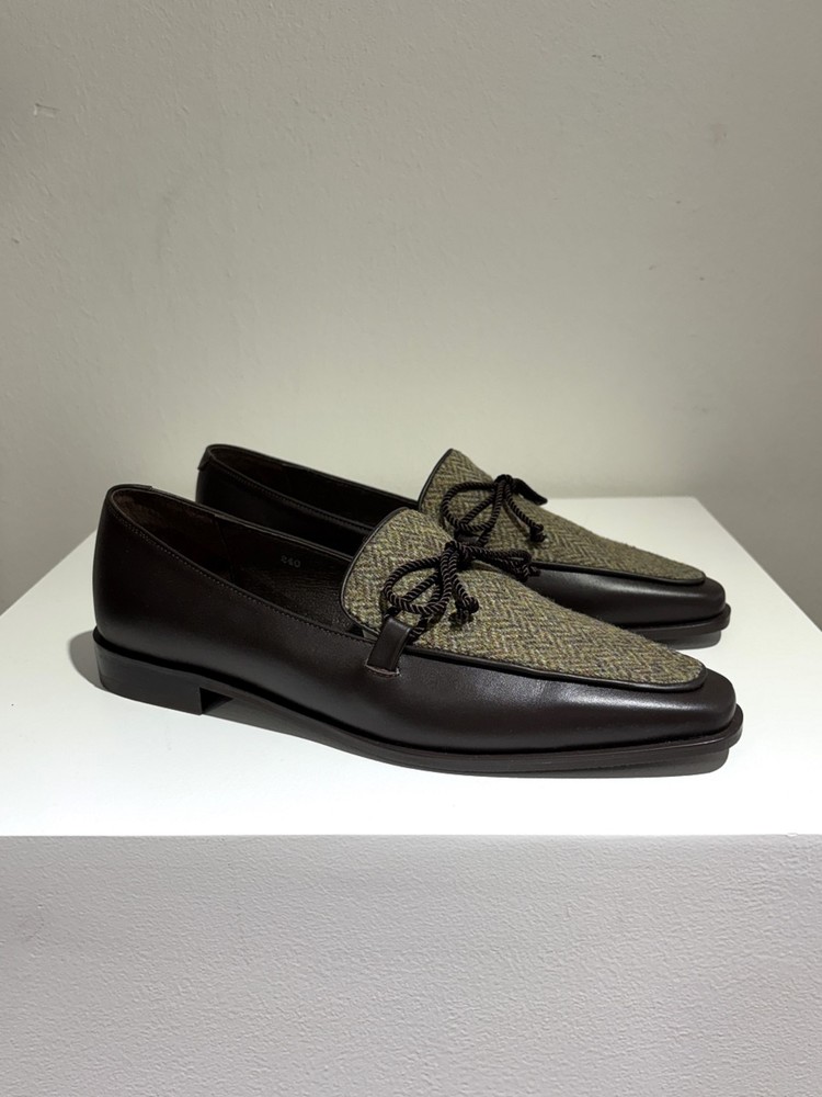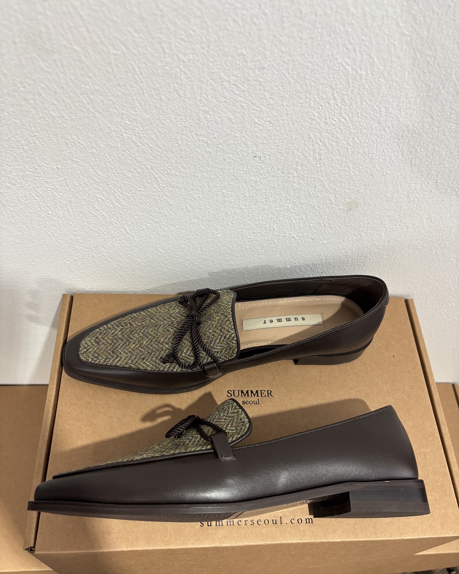 # Prototype samples - 1.5cm 브라운 트위드 울 리본 로퍼 - 240 사이즈