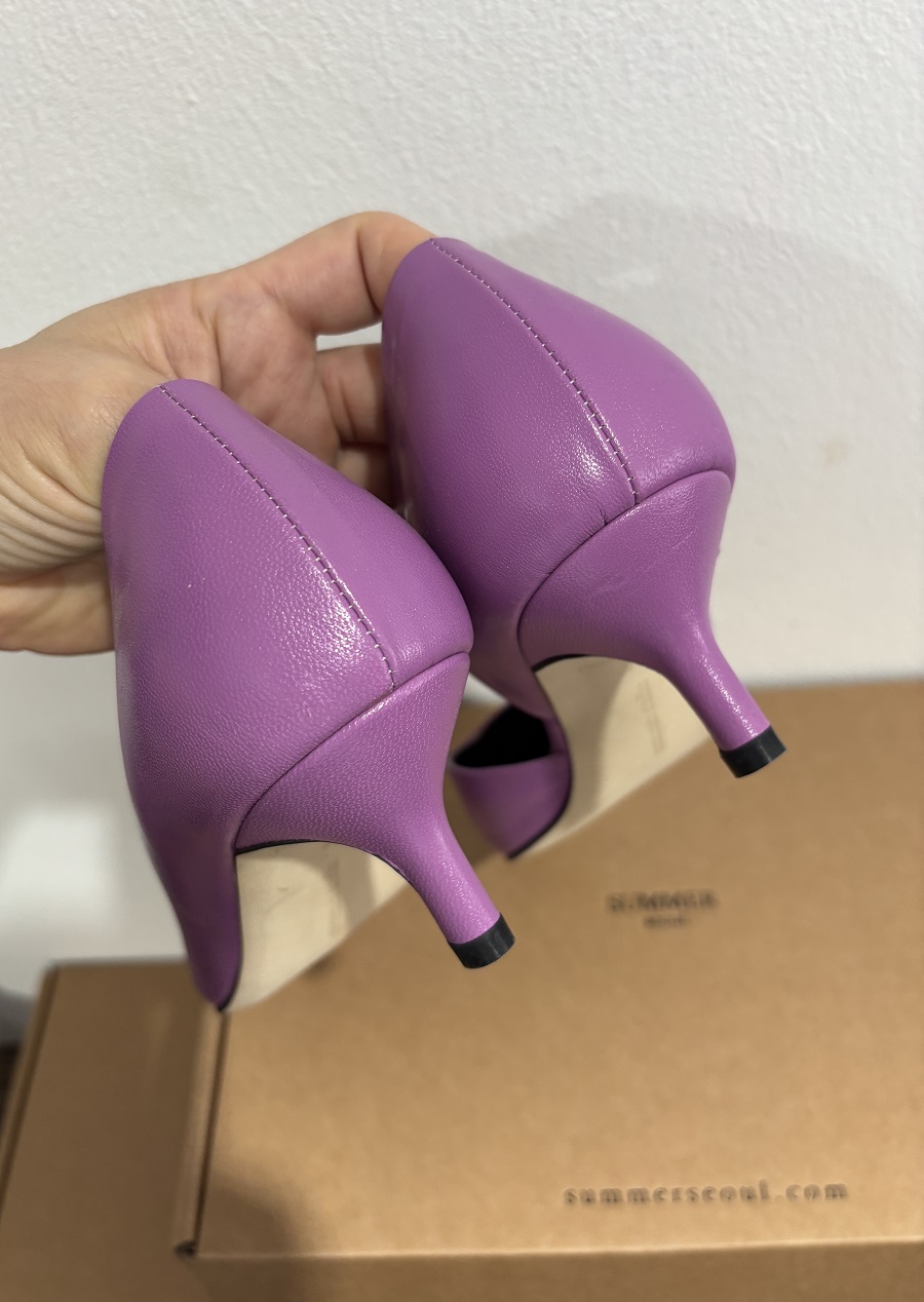 흔치 않은 톤의 보라색 컬러 가죽입니다.