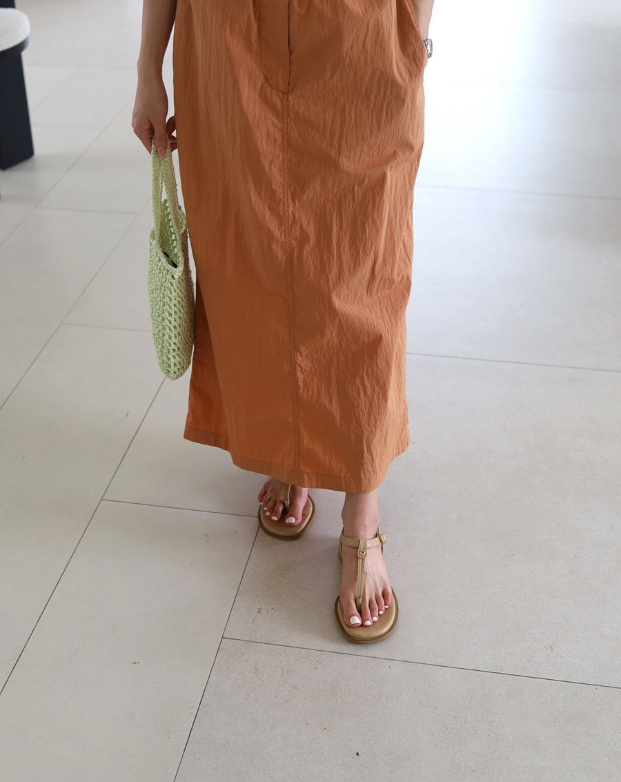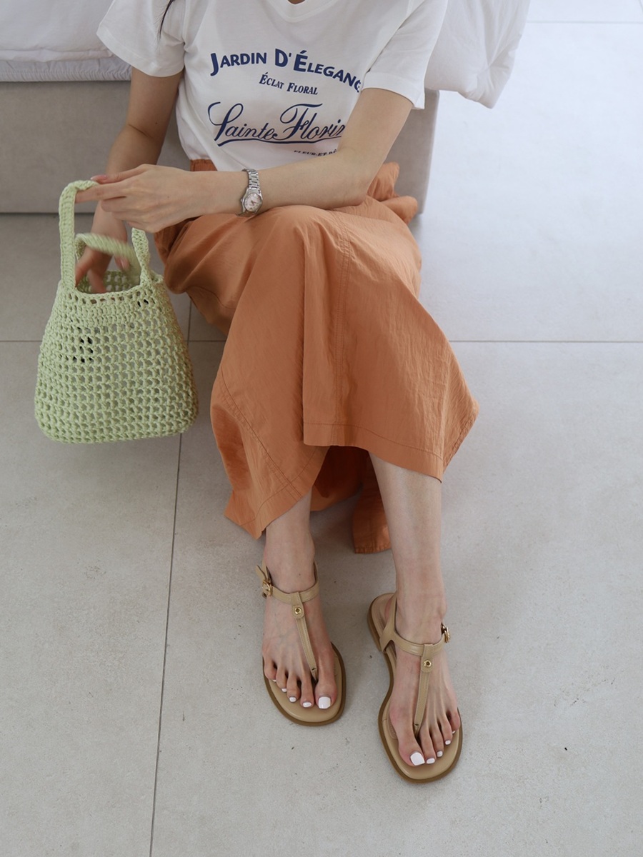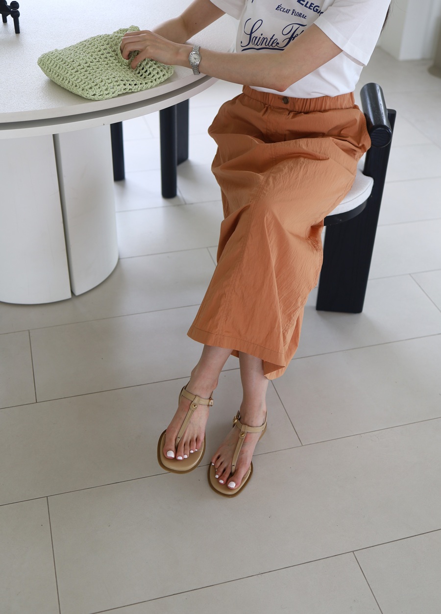 - 원형의 작은 골드와 실버 컬러의 아일렛으로 포인트를 준 조리 스타일의 플랫 샌들 입니다.버클로 편하게 탈착이 가능합니다.