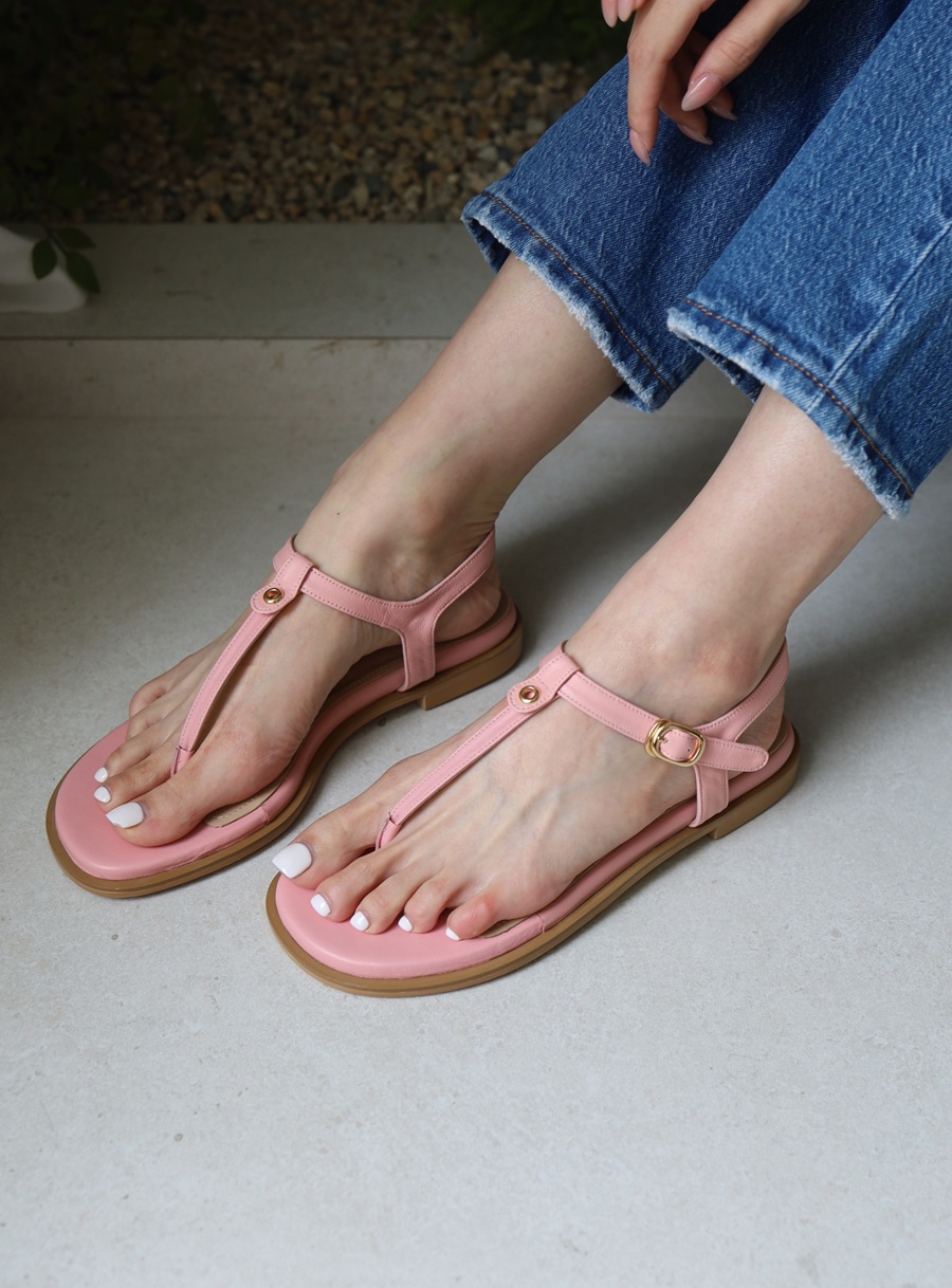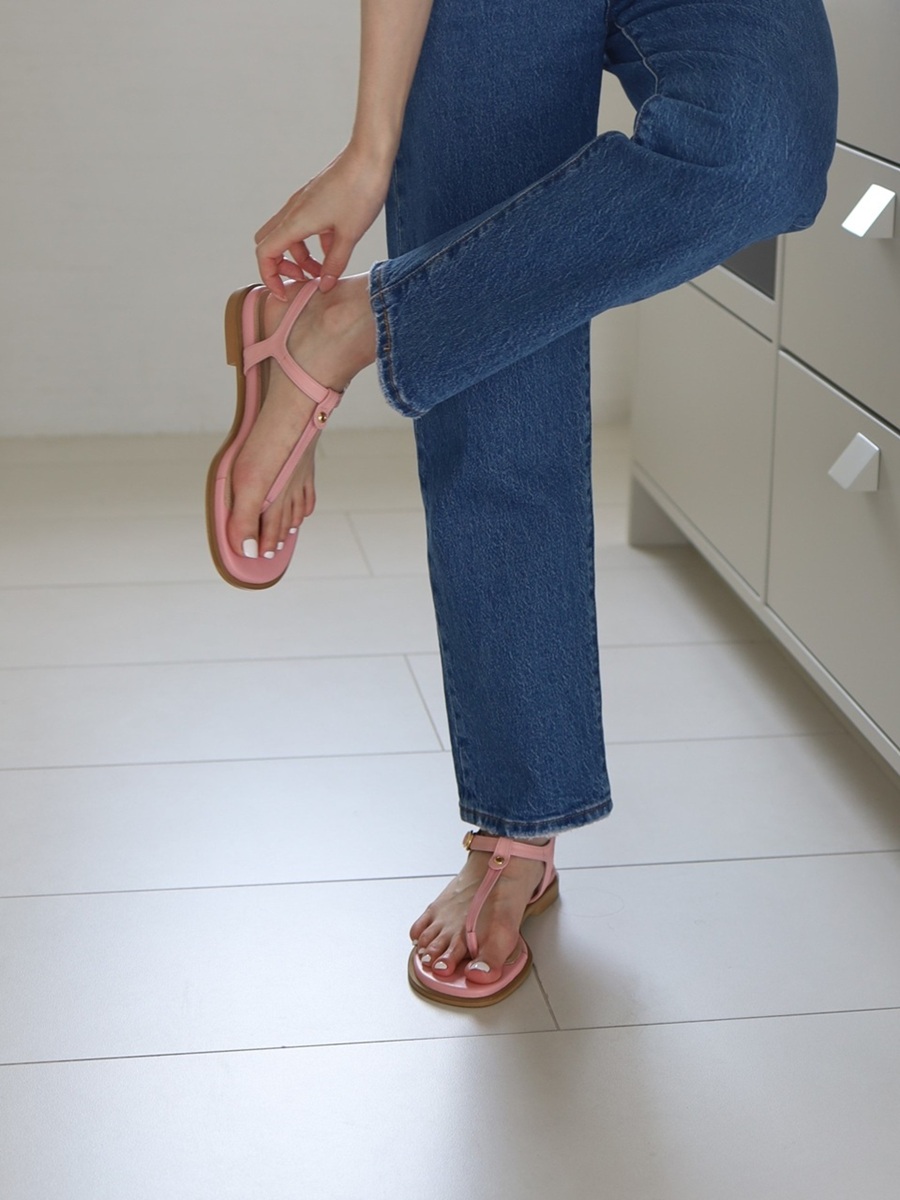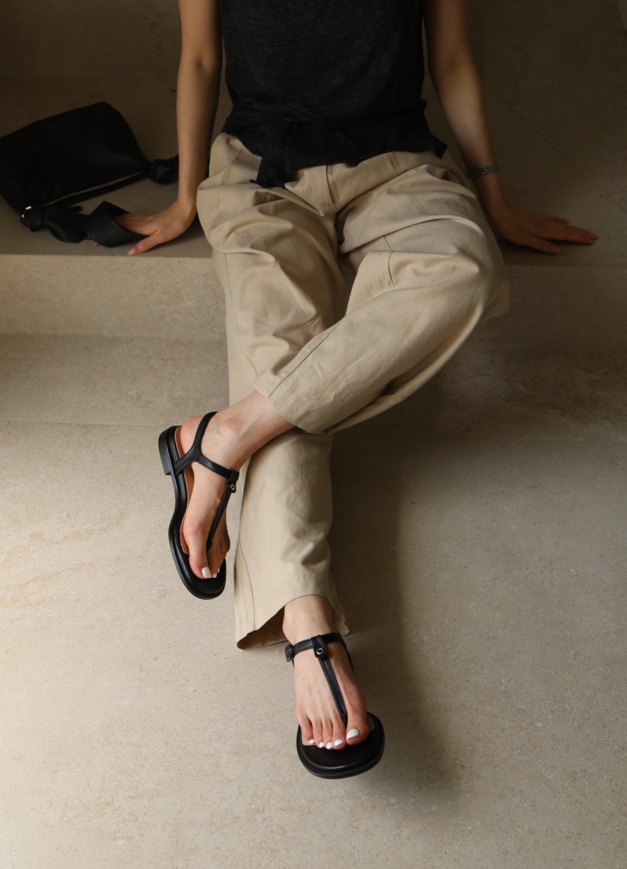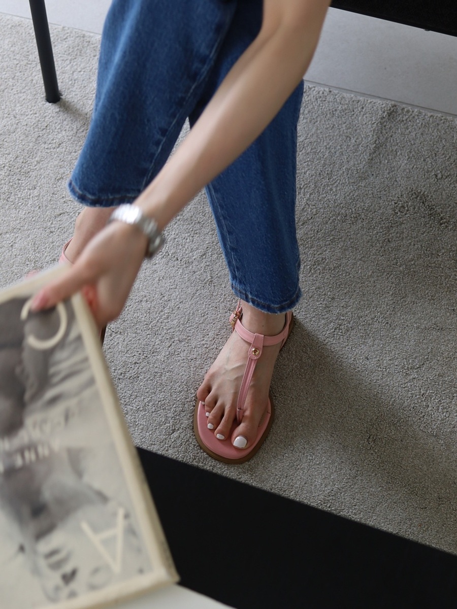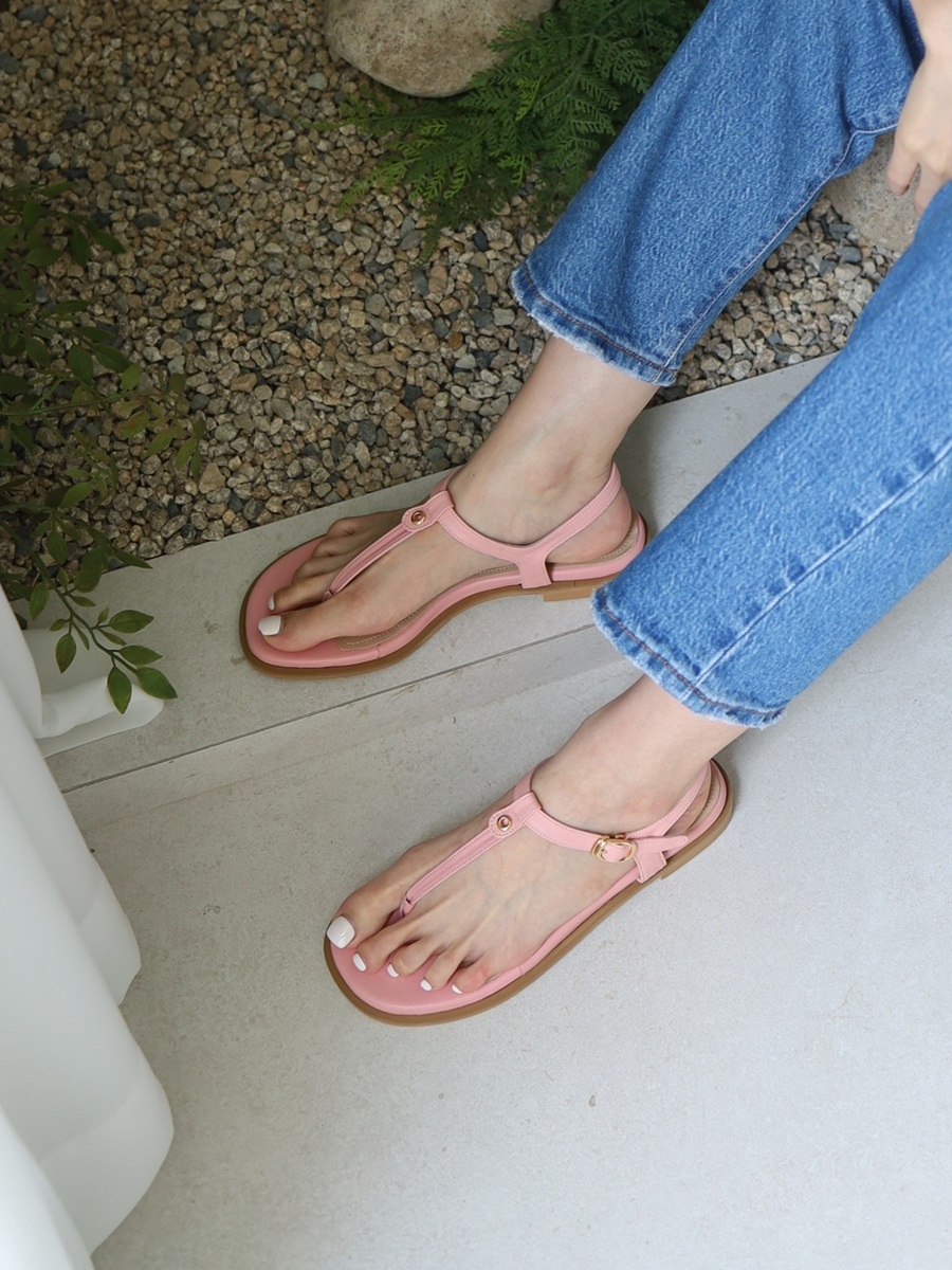 - 발가락을 끼우는 가죽 부분을 앞쪽으로 둥글게 말아 발가락 사이가 아프지 않도록 디자인 하였습니다.