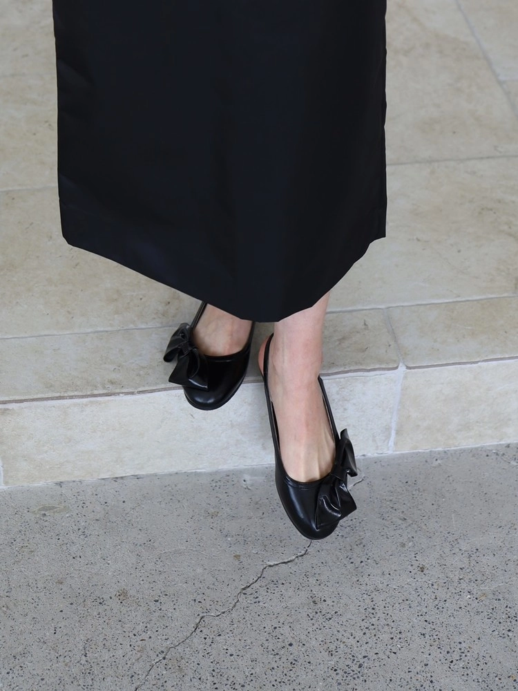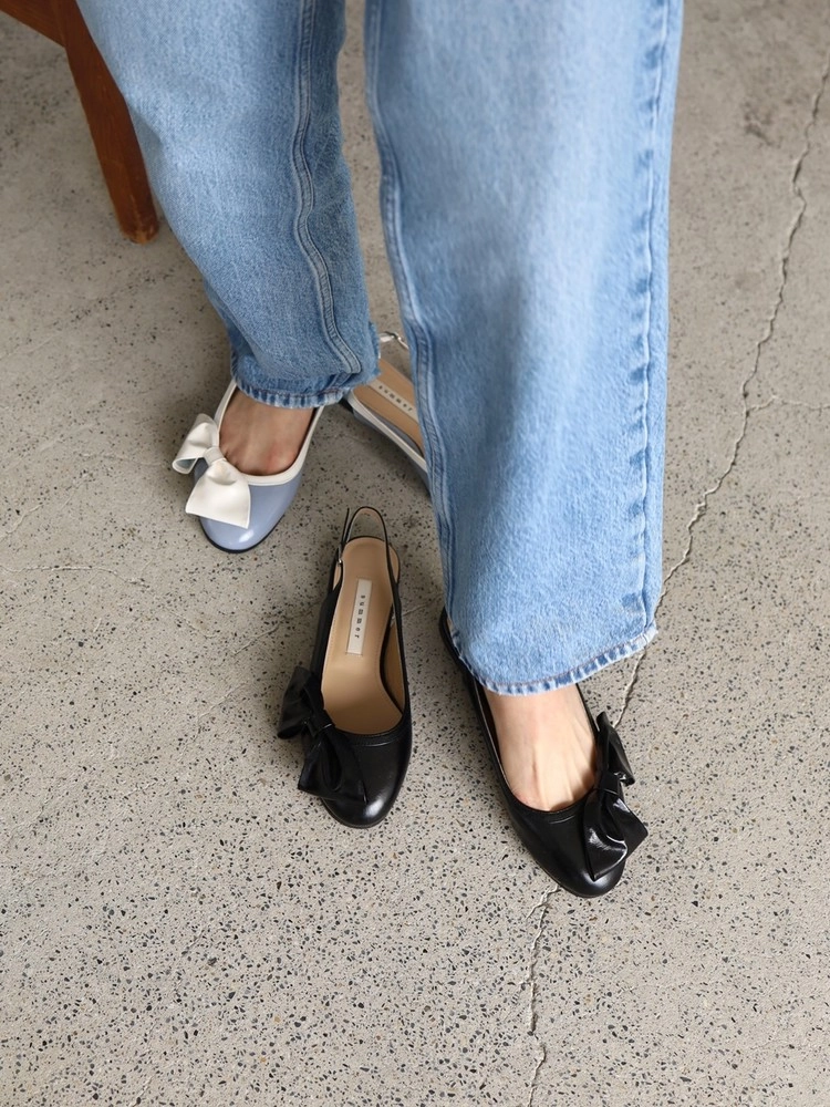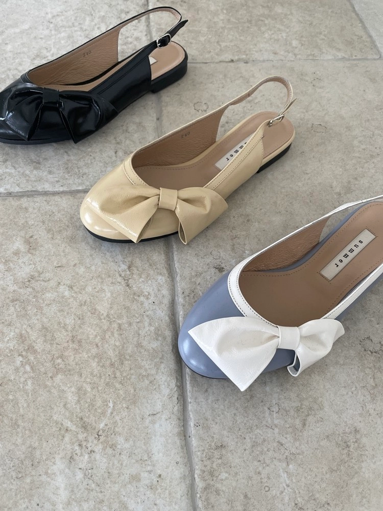 Egg Mold Slingback Flat - 2 Ribbon < S24008 > 에그 몰드 슬링백 플랫 - 2리본 1cm 블랙 - 240,블루 240