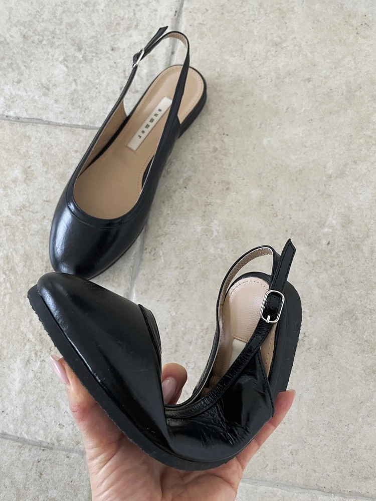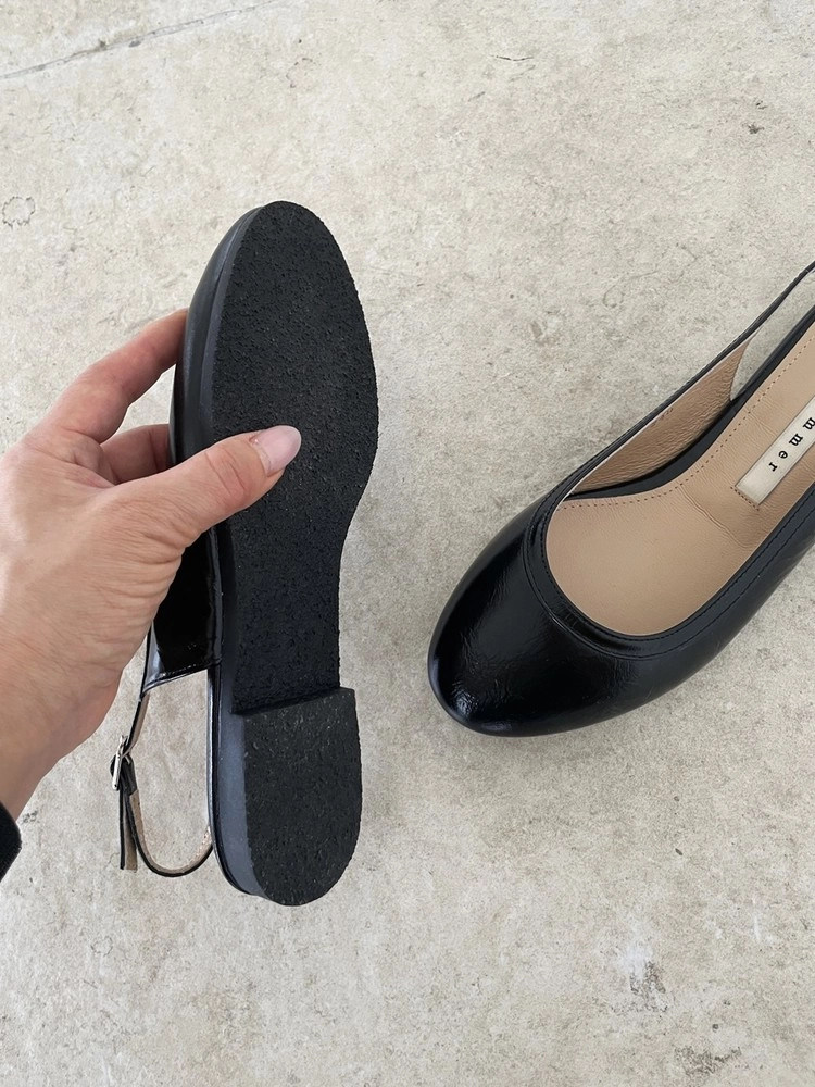 - 달걀같은 둥근 코모양이 예쁜 1cm 슬링백 플랫 슈즈 입니다.