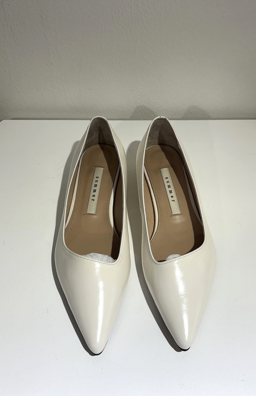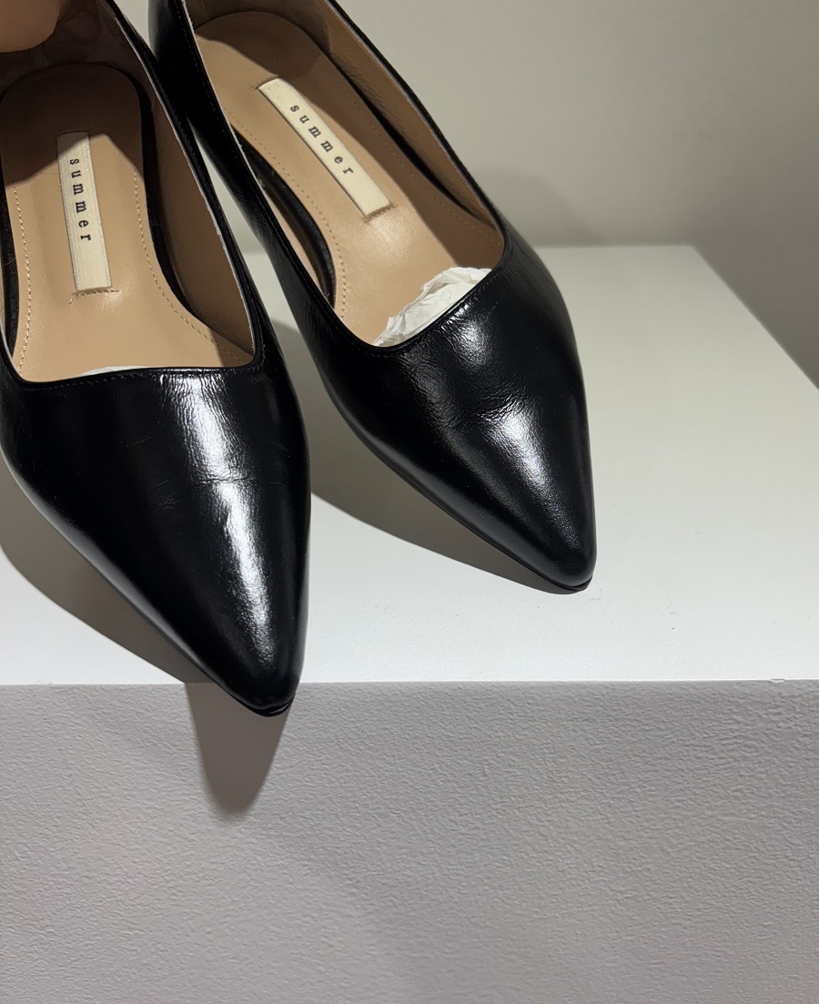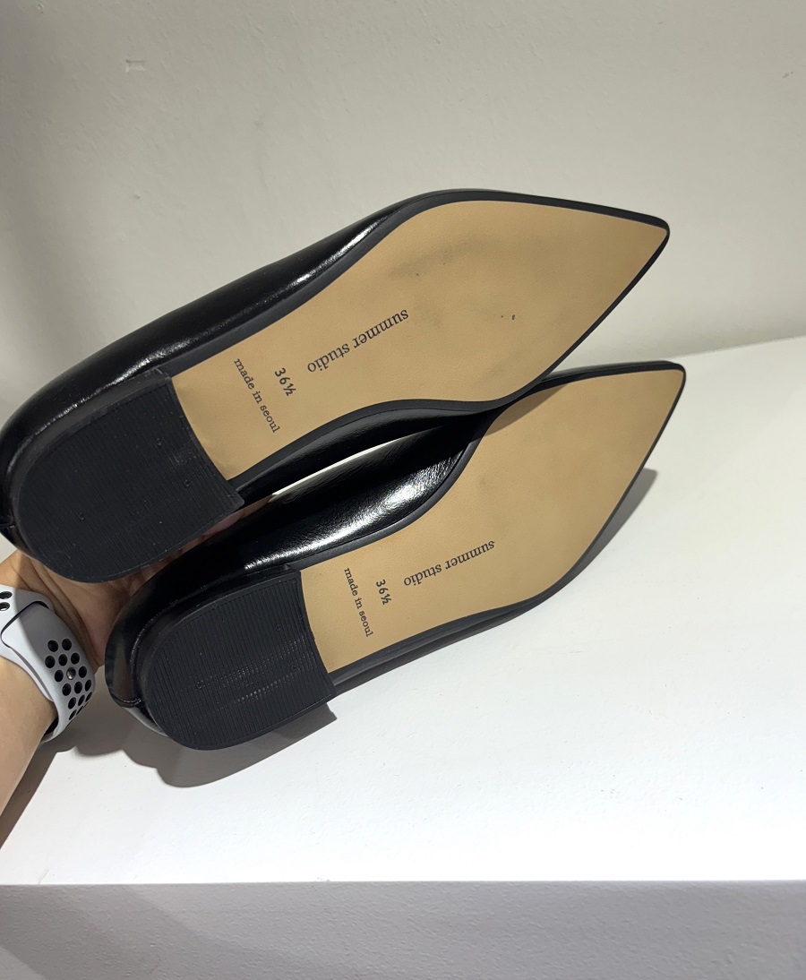 - 끝이 살짝 둥글게 처리된 포인티드 토 스타일의 1.5 cm 플랫 슈즈 입니다.
