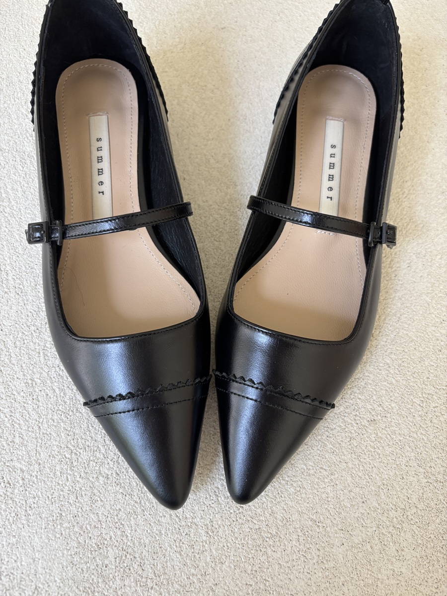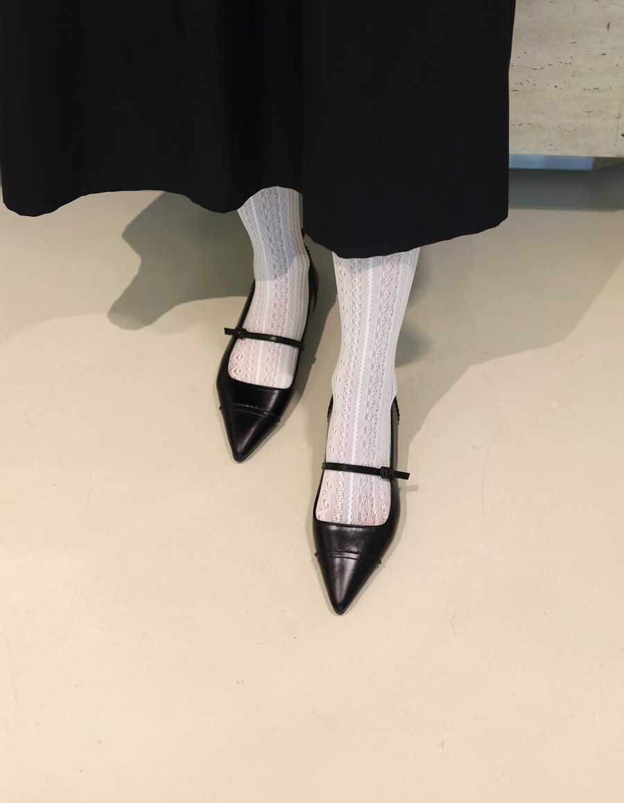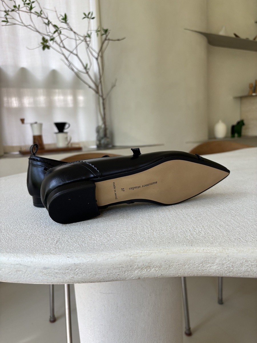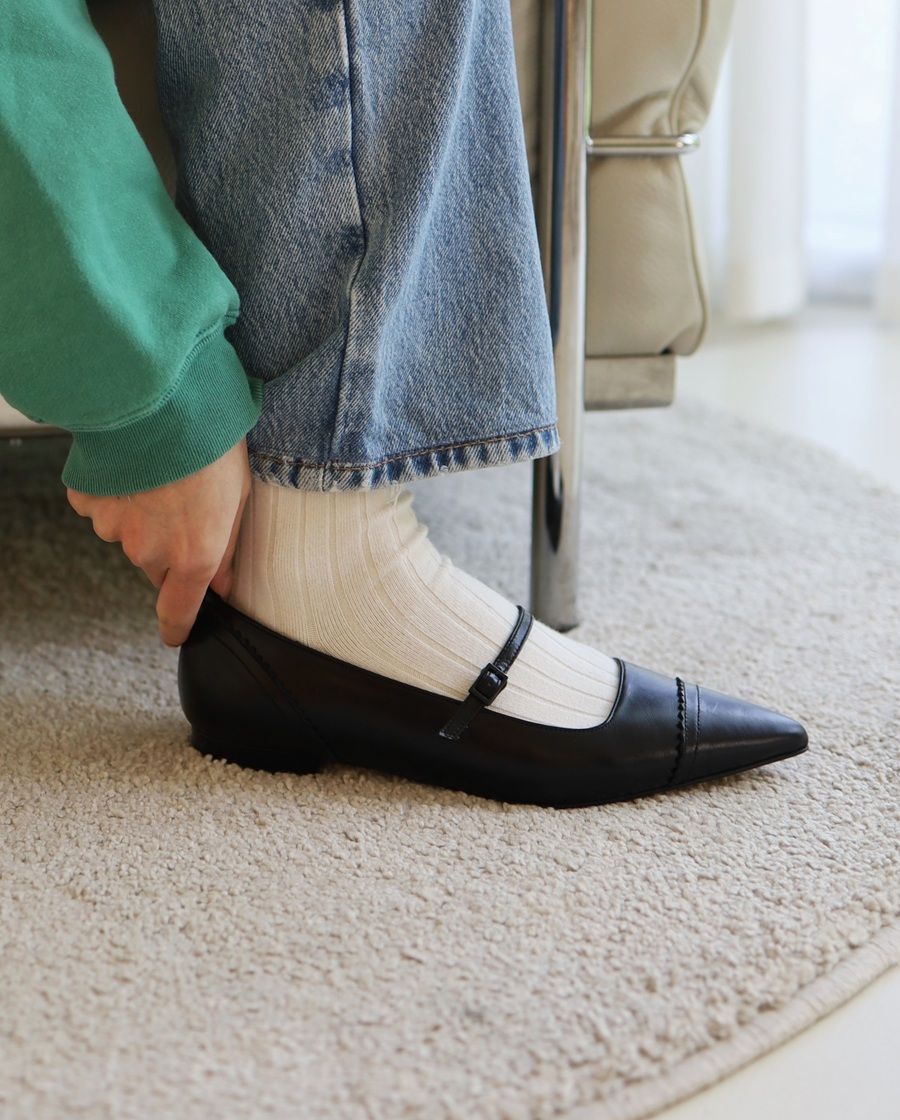 - 편안한 착화감이 검증된 시그니처 포인티드 토 플랫 라스트 사용.