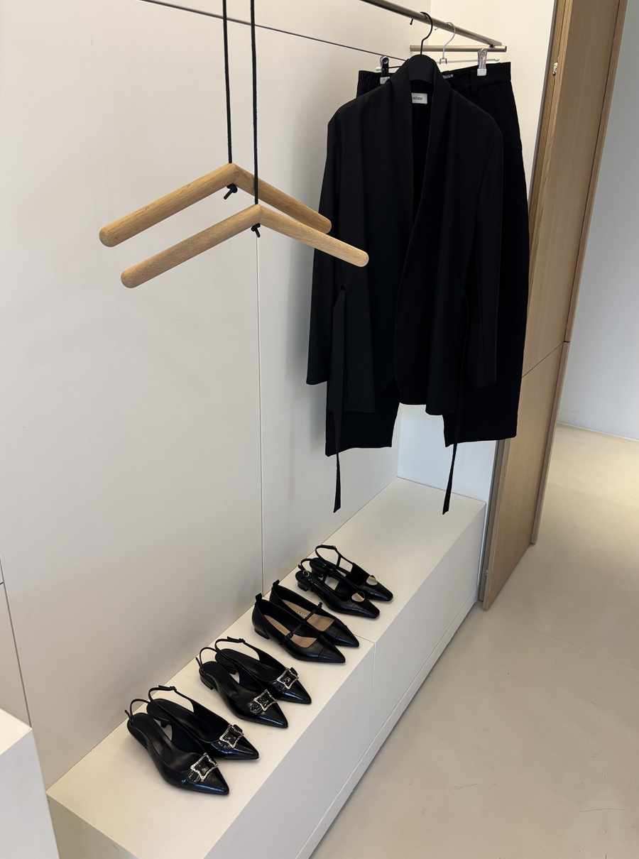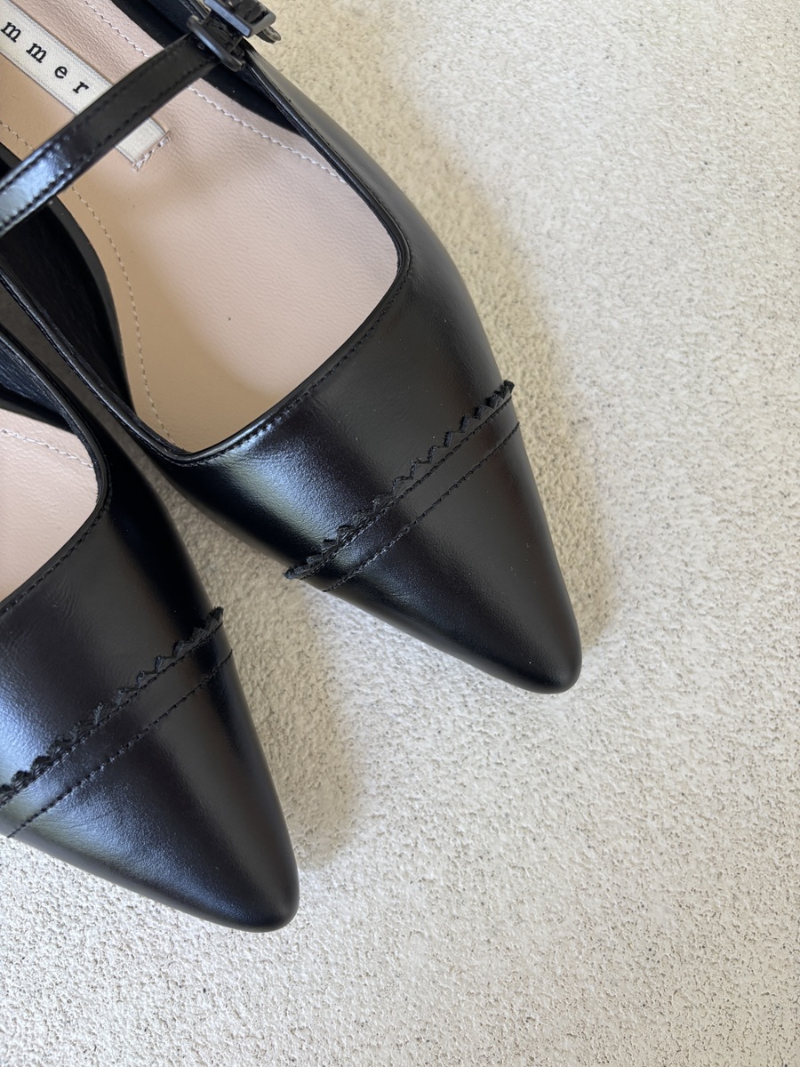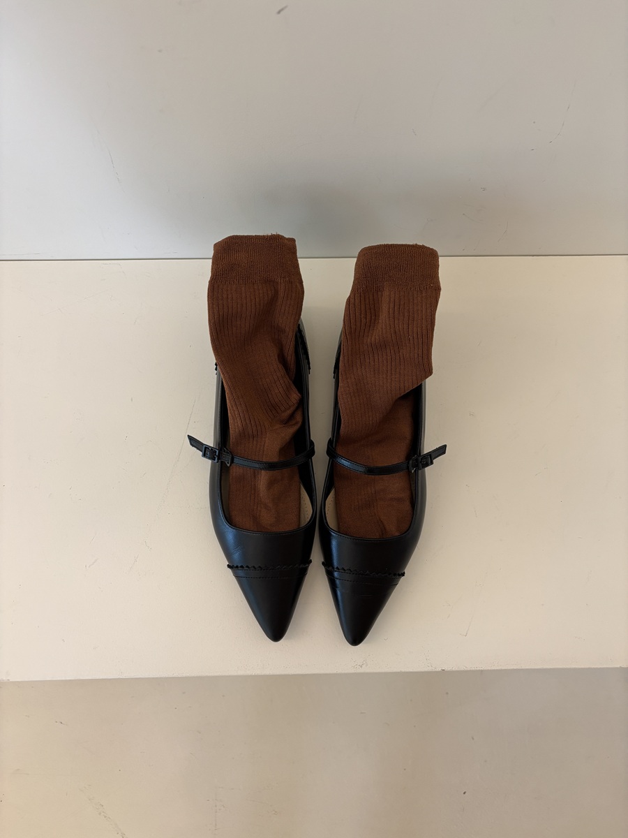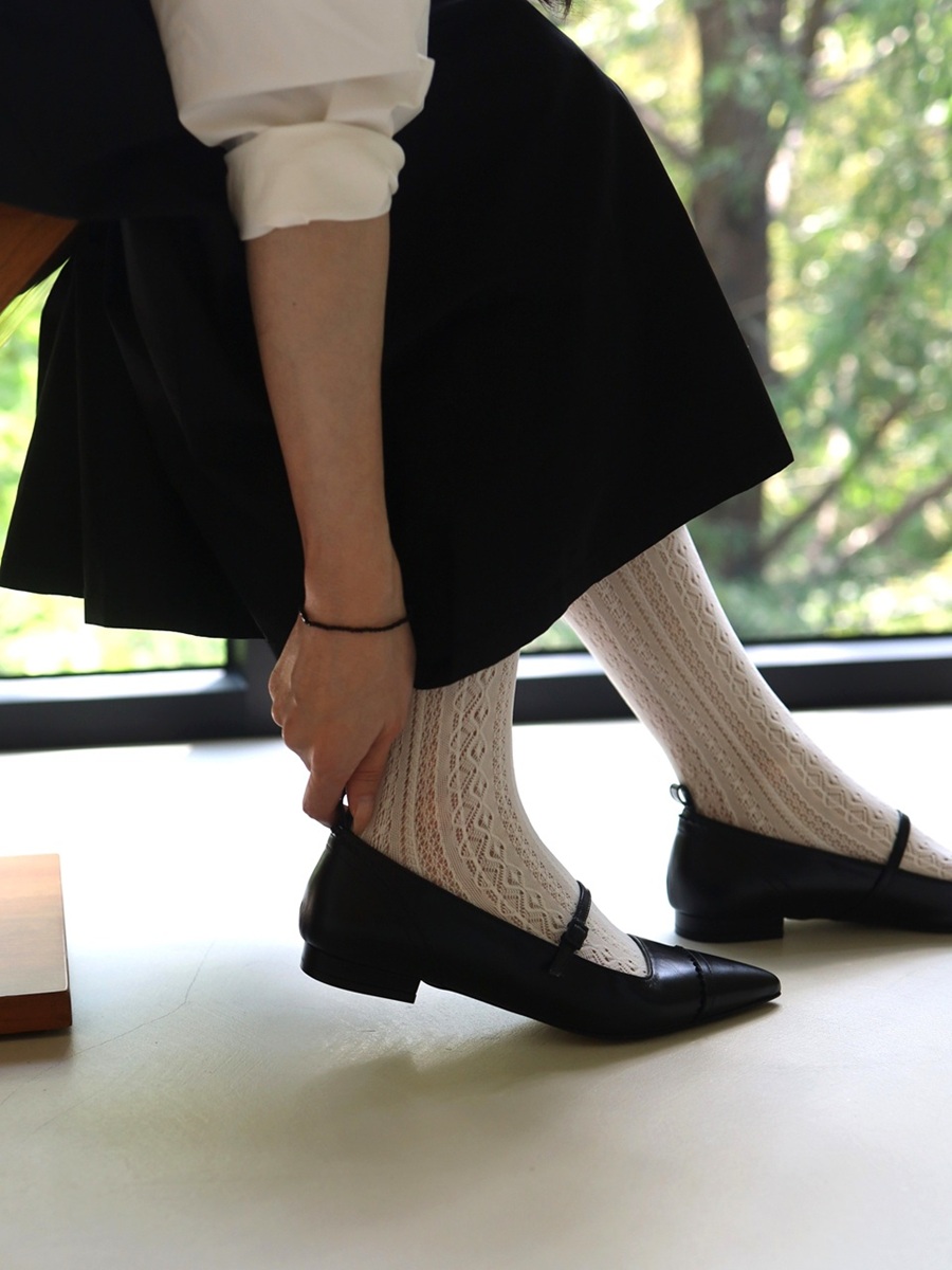 - 편안한 착화감이 검증된 시그니처 포인티드 토 플랫 라스트 사용.