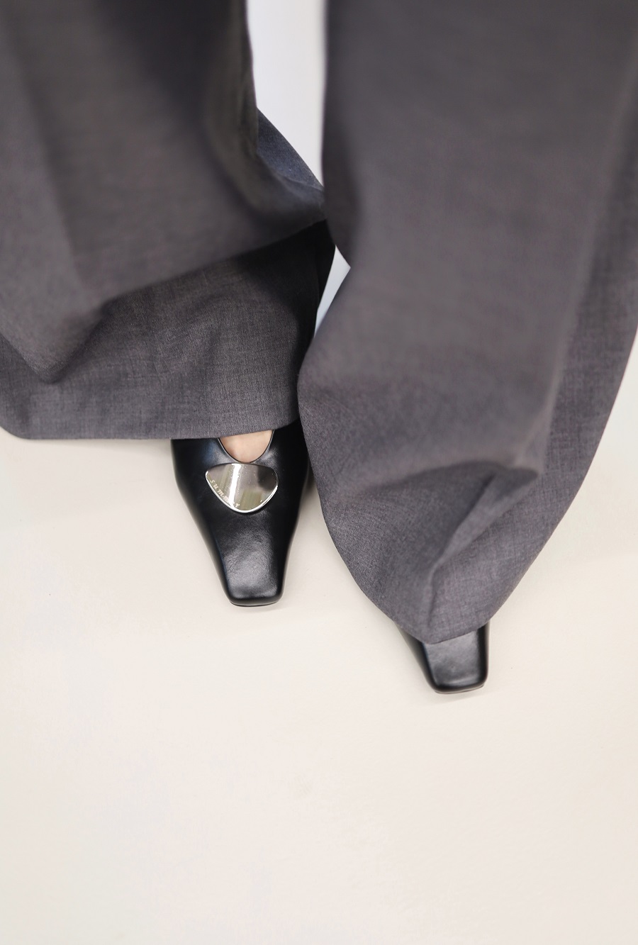 - 은은하게 브랜드 로고가 새겨진 예쁘게 빚은 수제비 모양 실버 하드웨어 장식 포인트.