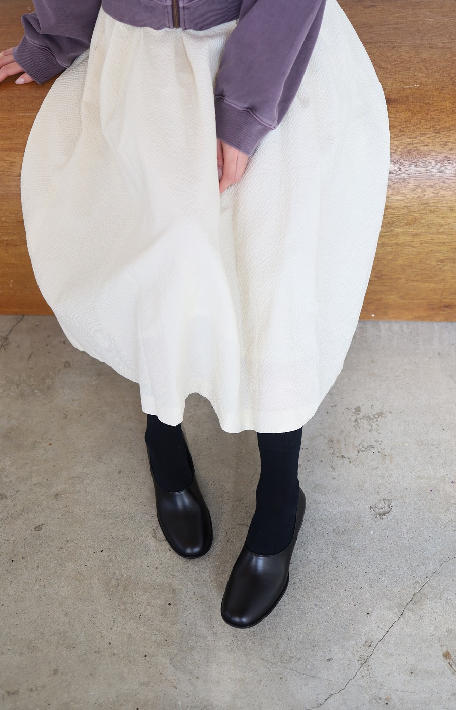 두께감이 있는 울 / 캐시미어 양말등과의 착용을 주로 하실 경우는, 반사이즈 업을 추천해 드립니다.