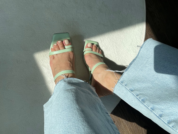 -6cm 굽높이로 안정감 있으며, 발을 안정적으로 잡아주는 발등 스트랩 안쪽으로 가죽 밴드를 삽입하여 보행시 더욱 편안합니다.