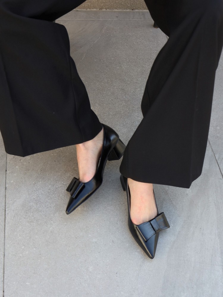 - 끝이 살짝 둥글게 처리된 포인티드 토 스타일의 4cm 펌프스 입니다.
