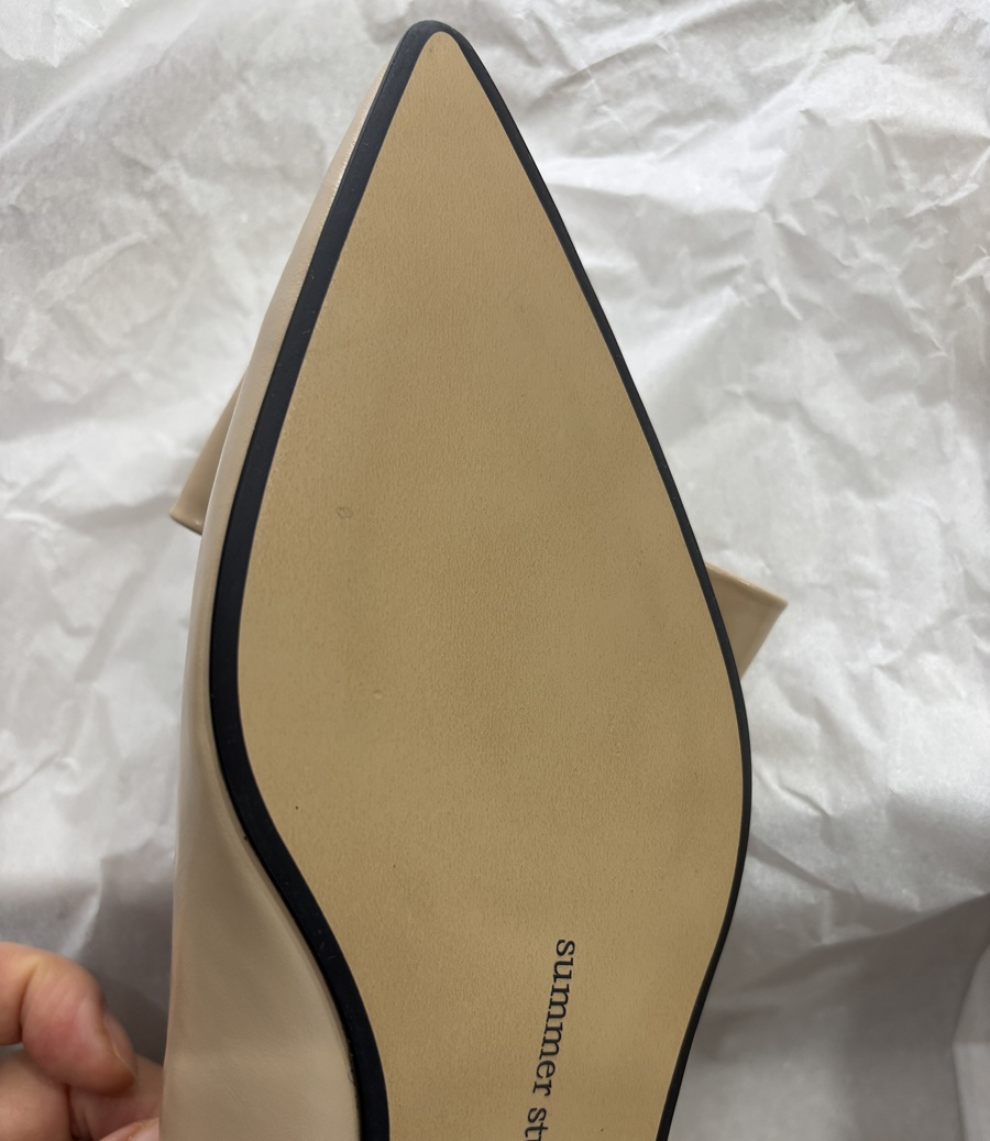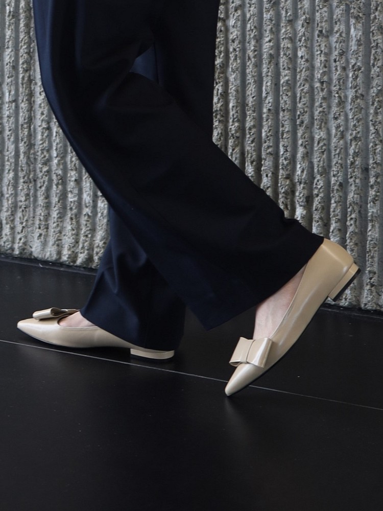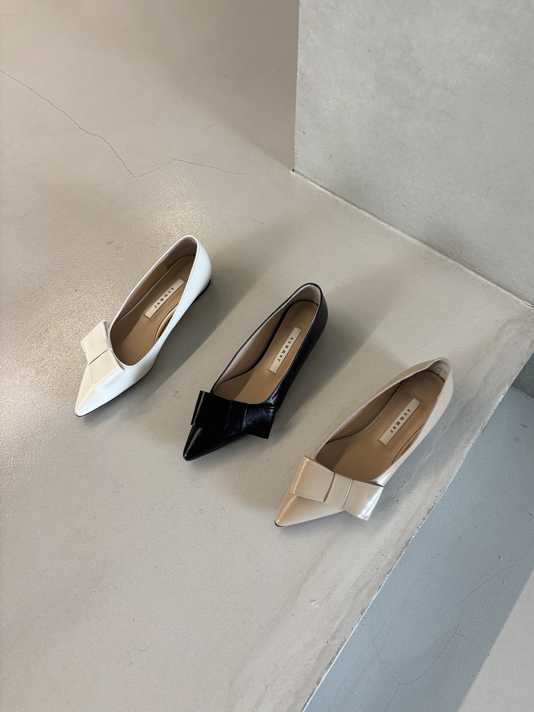 - 끝이 살짝 둥글게 처리된 포인티드 토 스타일의 1.5 cm 플랫 슈즈 입니다.