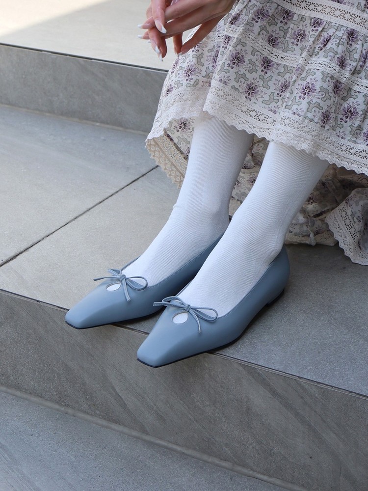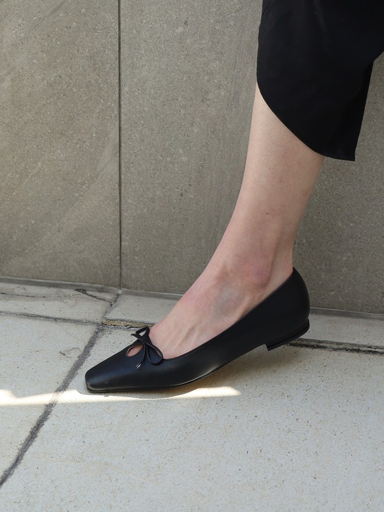 - 날렵한 스퀘어토의 라스트에 물방울 모양의 타원형 컷아웃 디테일과 제 가죽 리본으로 러블리한 포인트를 주었습니다.