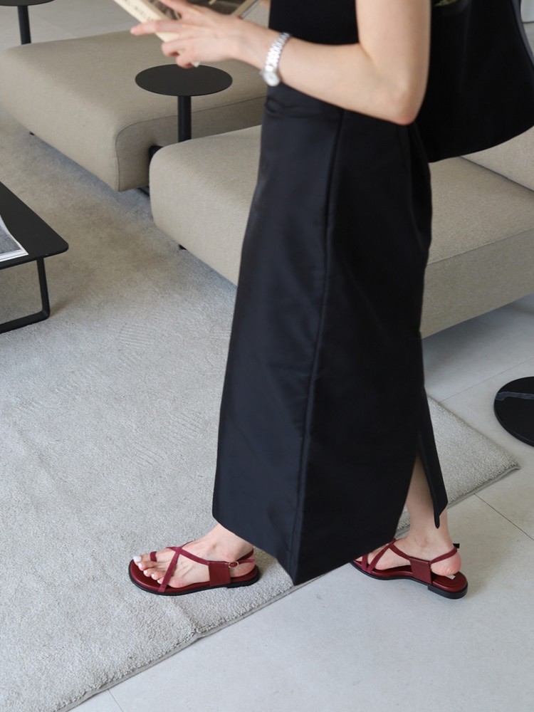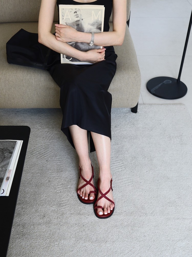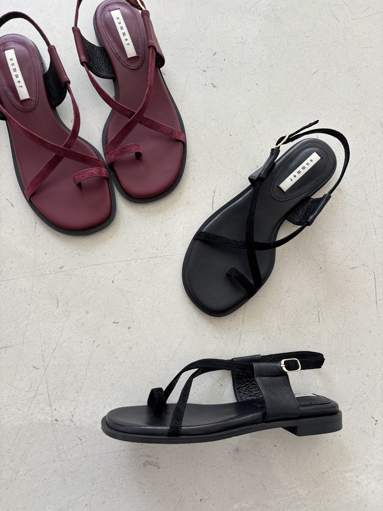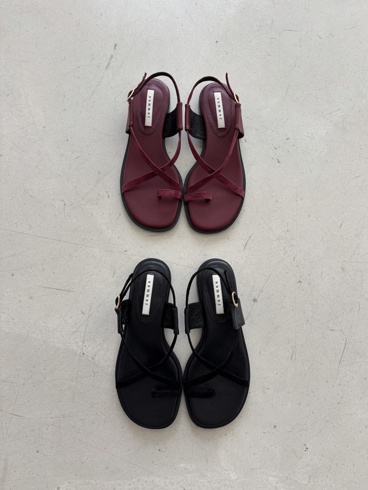 - 동일한 컬러의 2가지 다른 소재를 믹스한 소재감과 심플한 라인들로만 포인트를 준 디자인의 플랫 샌들 입니다.
