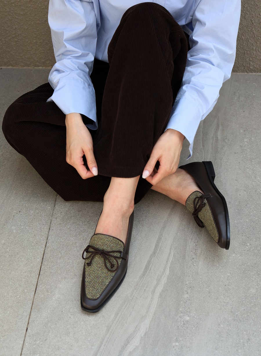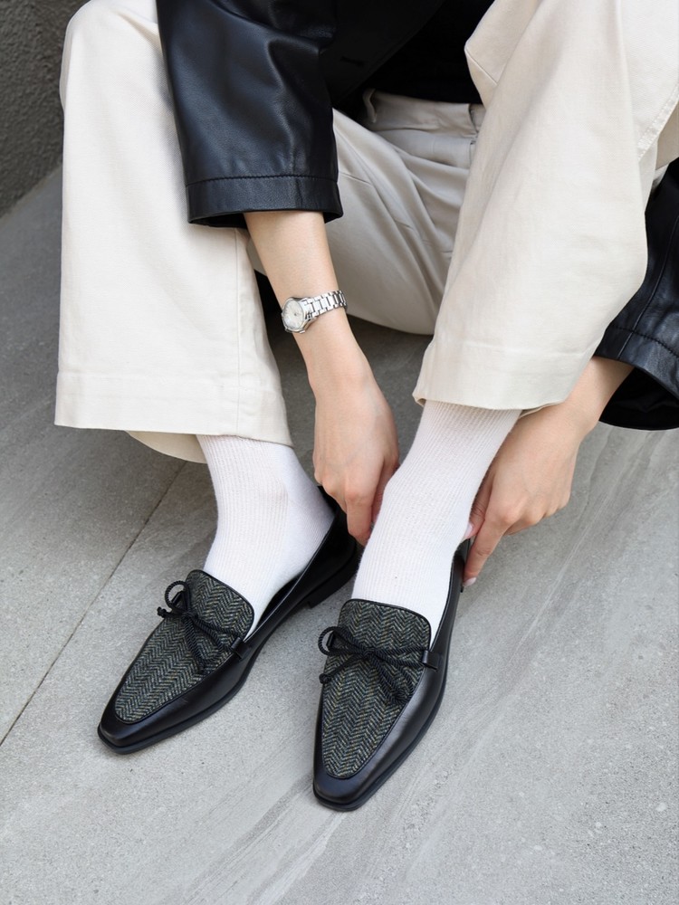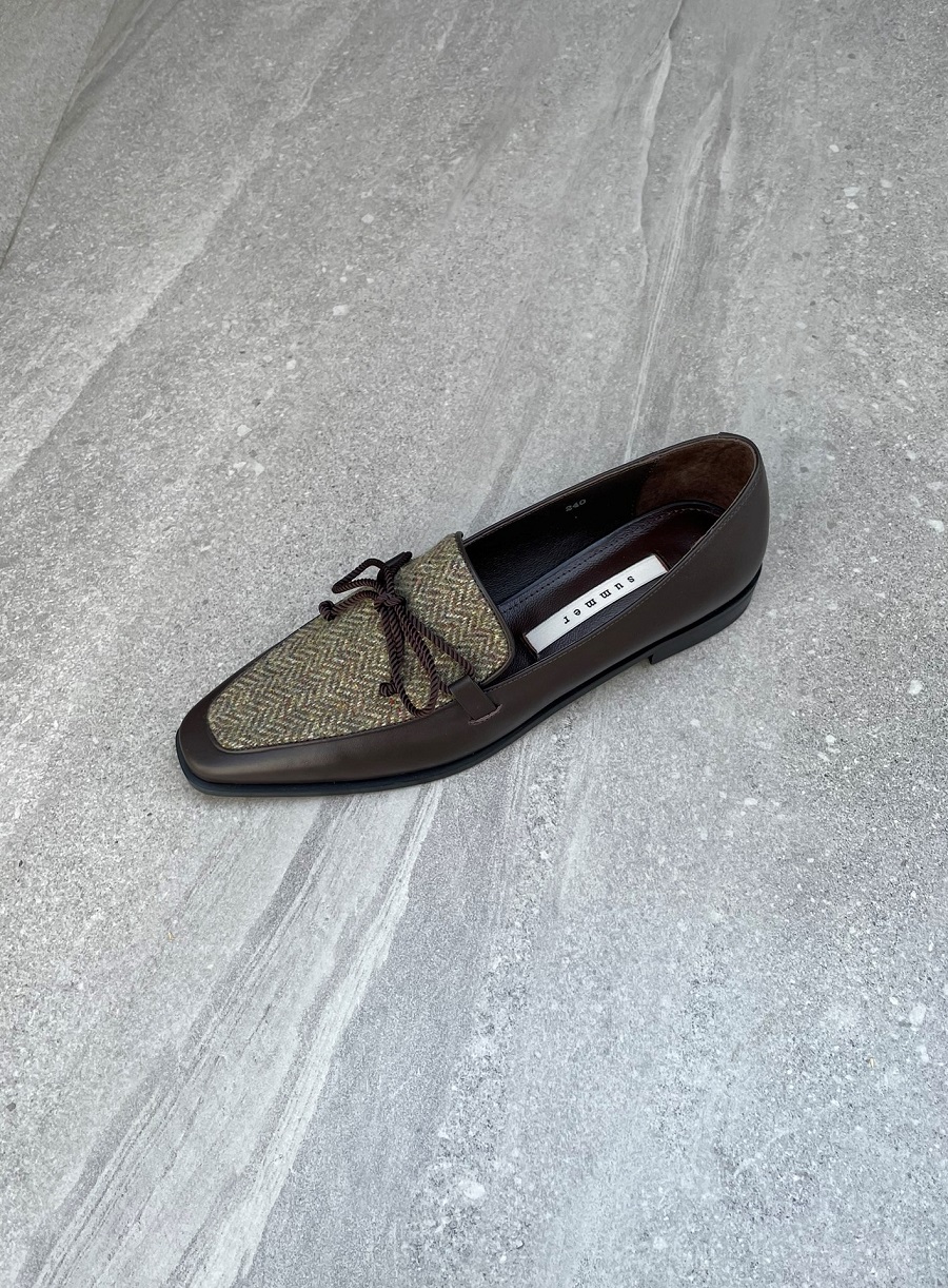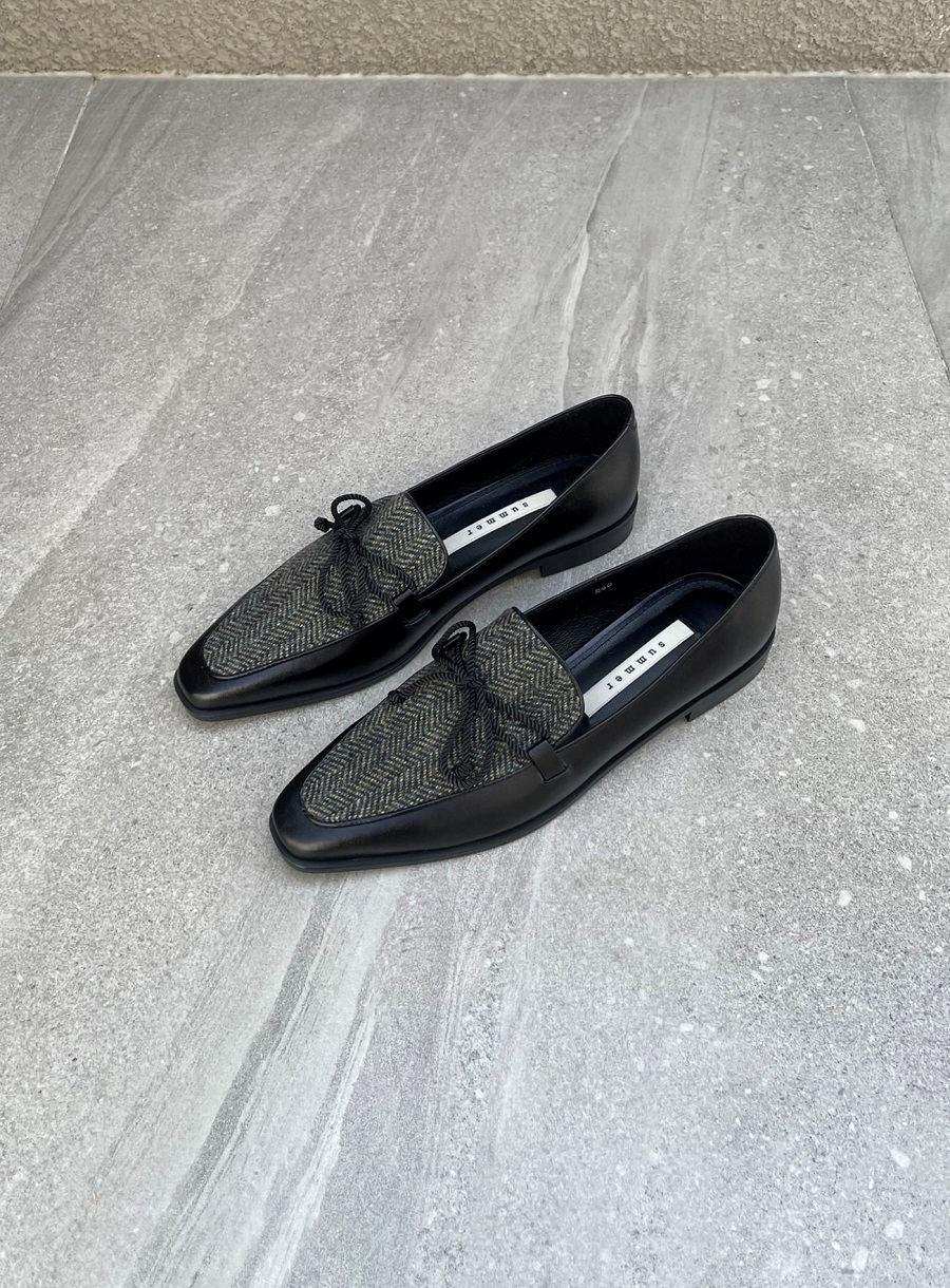 - Upper - Kip skin leather + Calf hair / Kip skin leather + Wool tweed fabric