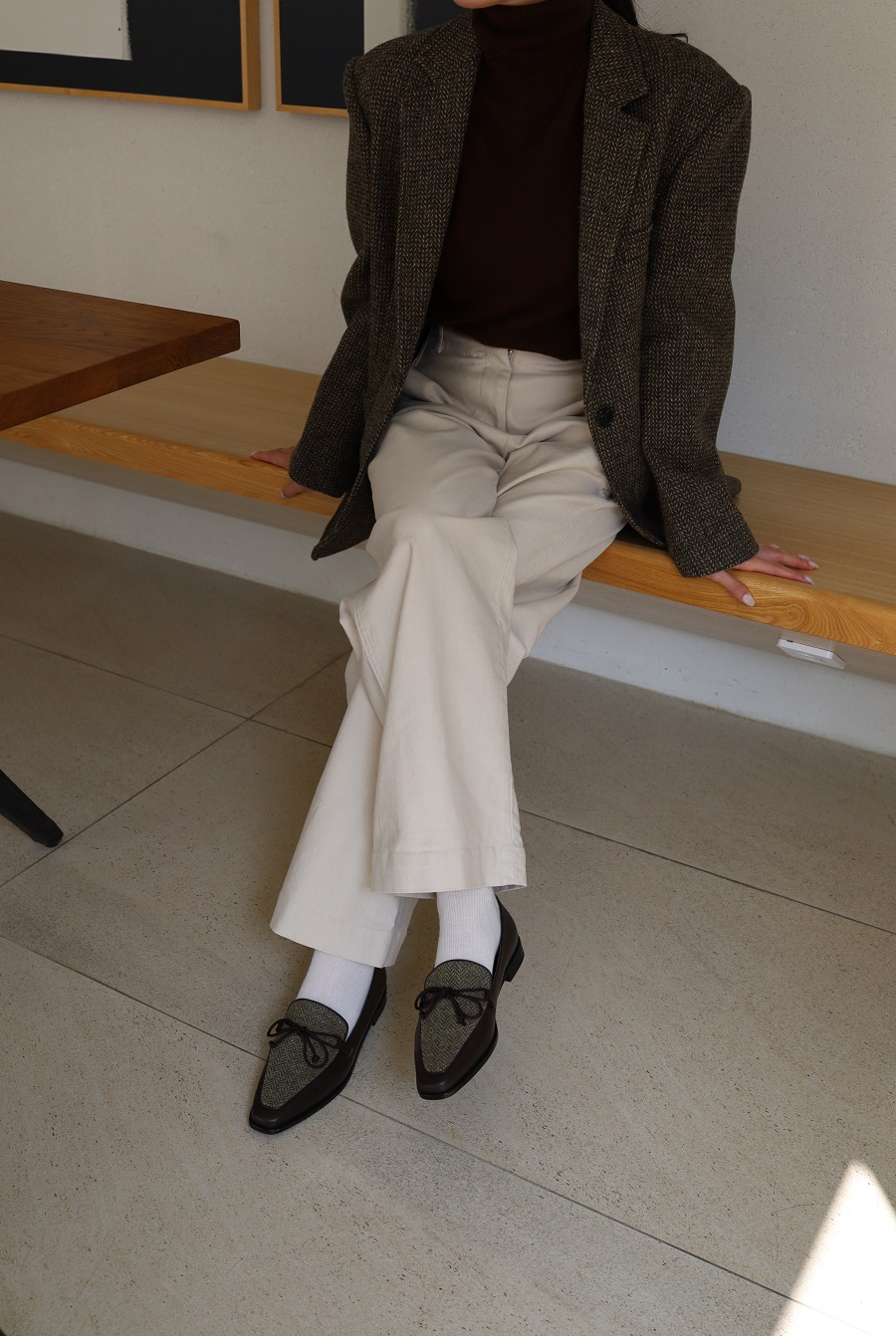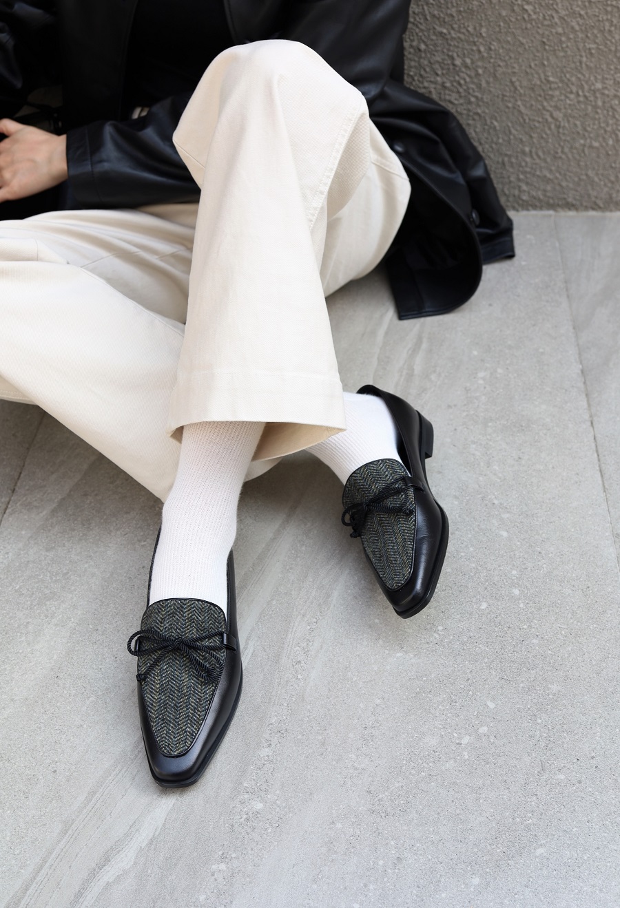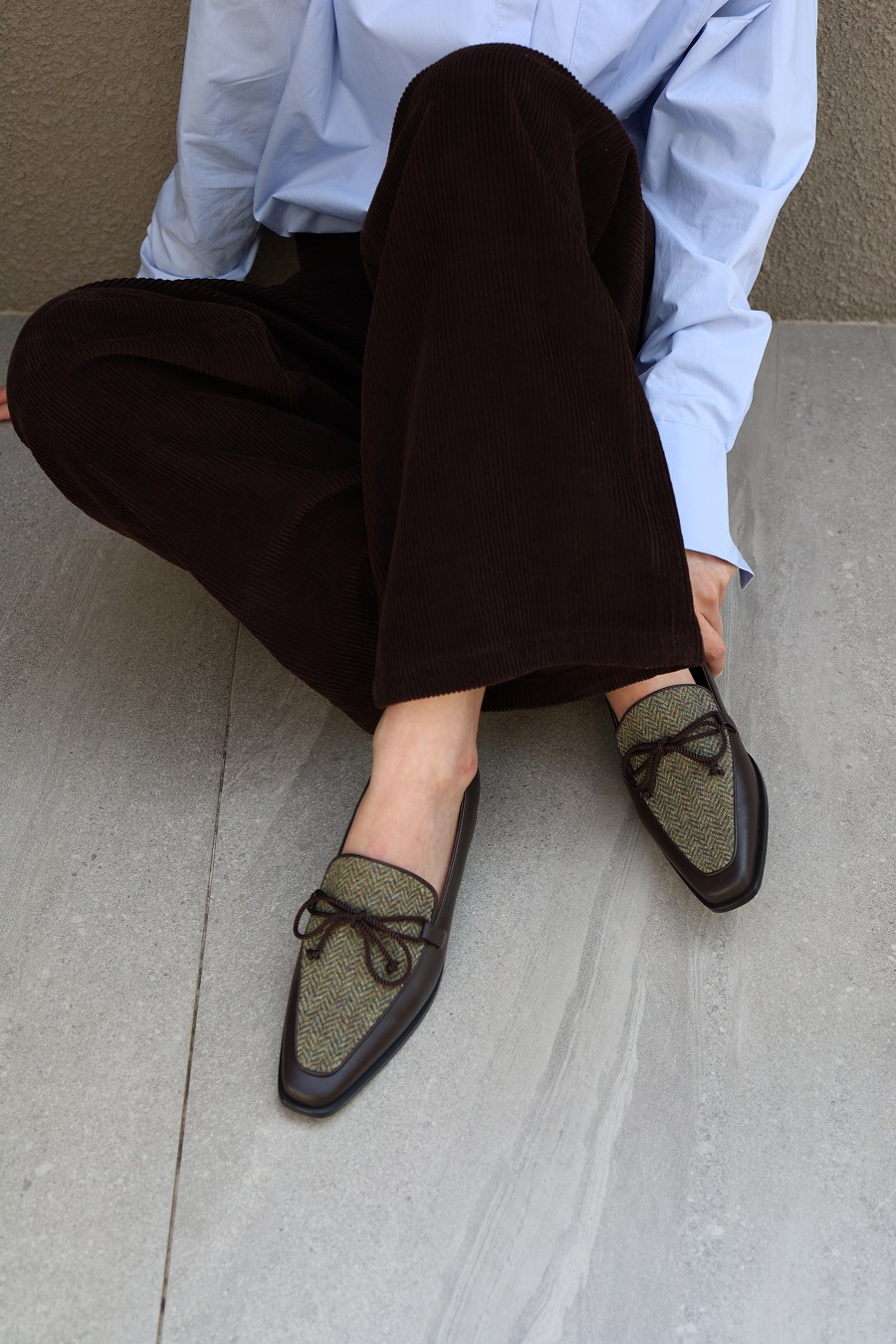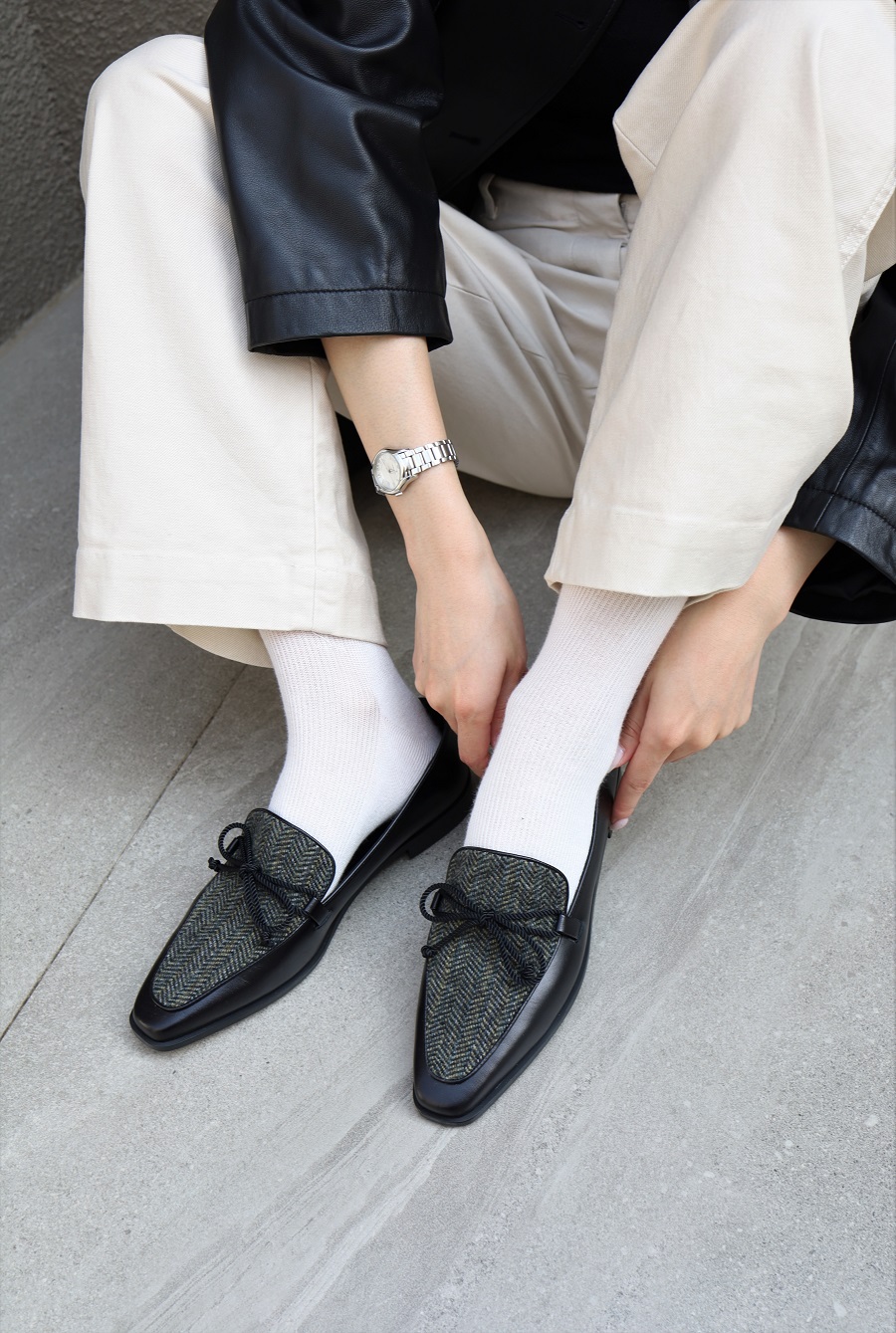 - Upper - Kip skin leather + Calf hair / Kip skin leather + Wool tweed fabric