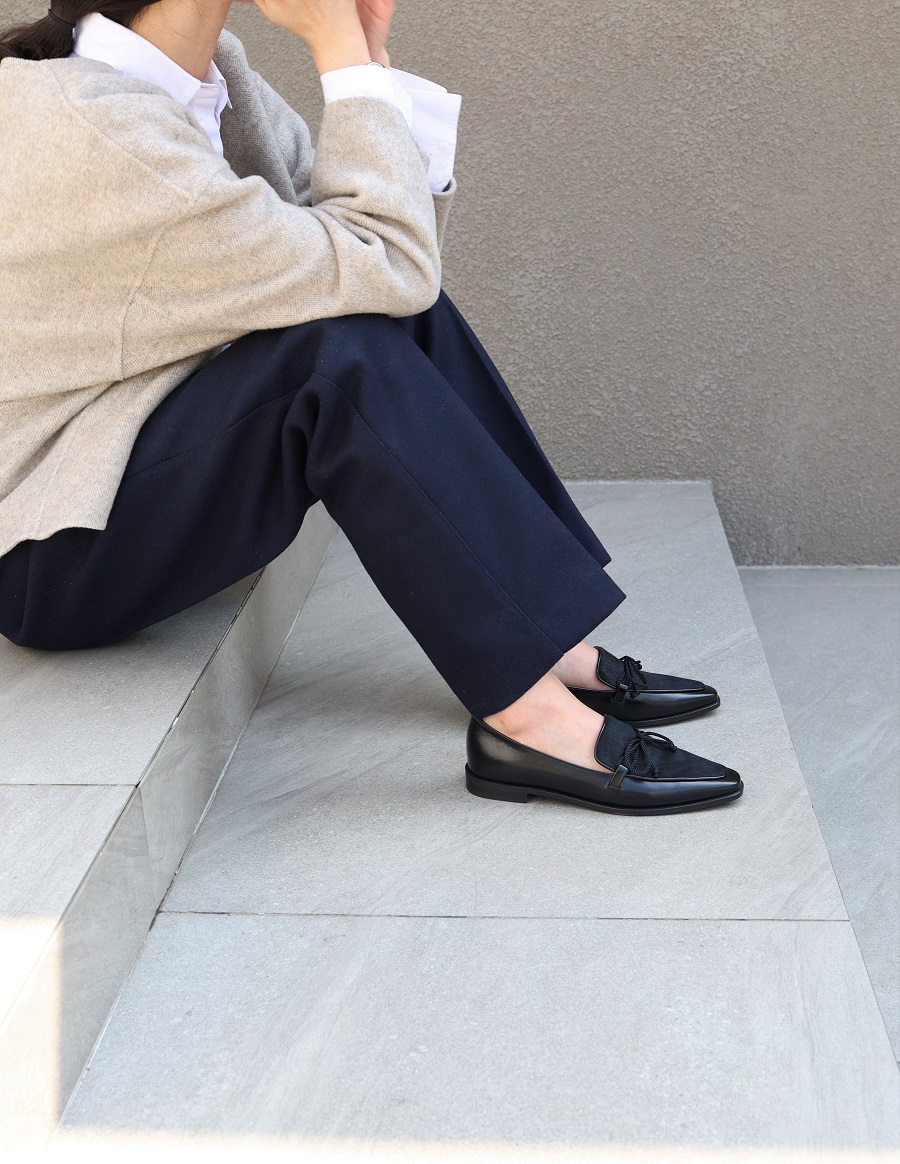 - 매니시한 무드 가운데 페미닌함이 섞인 스타일로, 의상에 구애받지 않고 가볍게 데일리로 신기 좋습니다.
