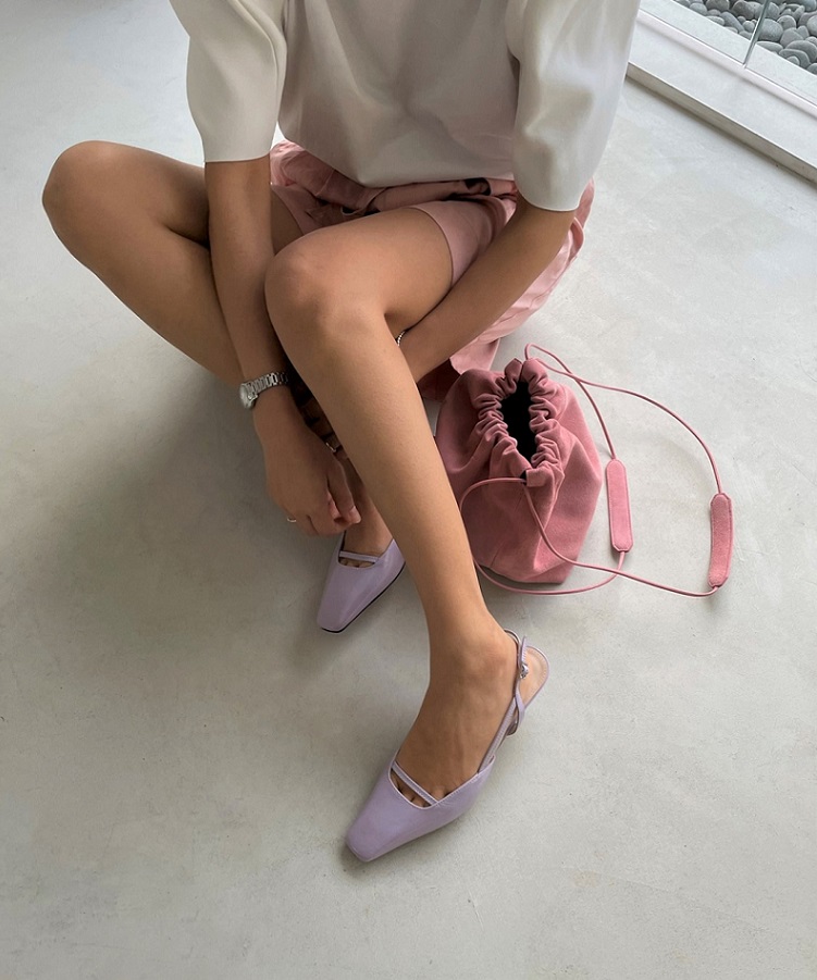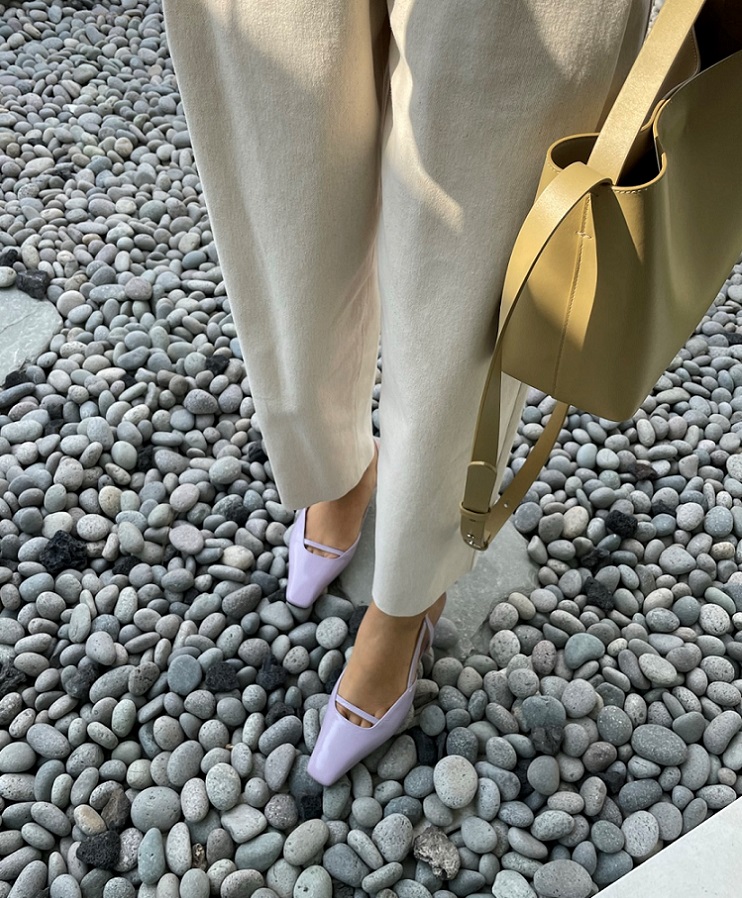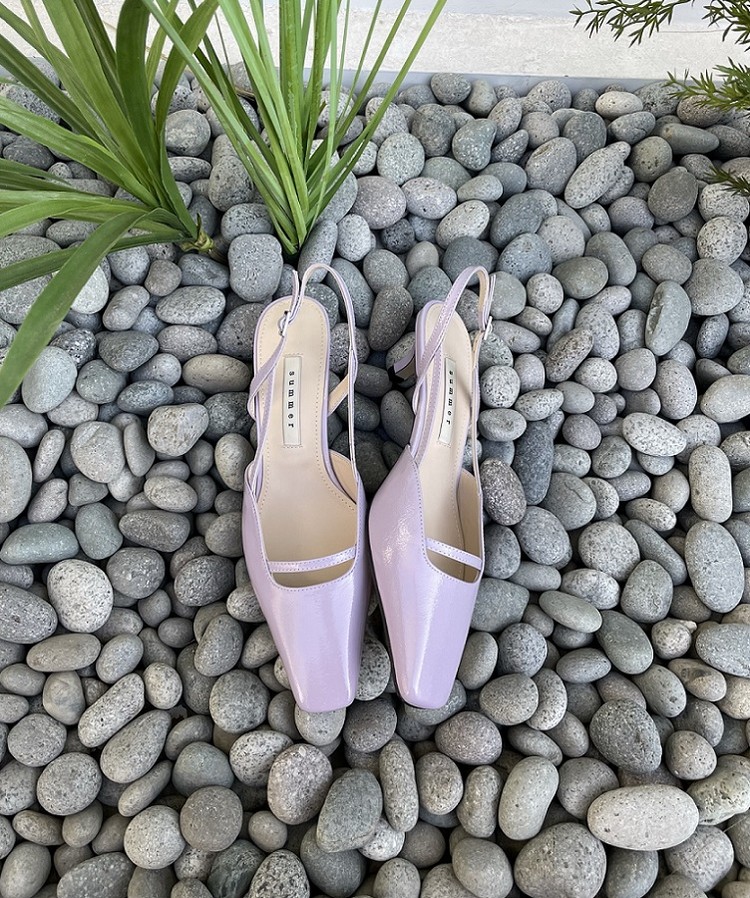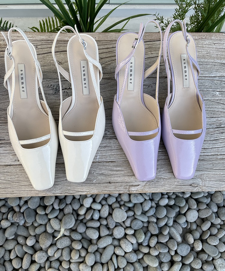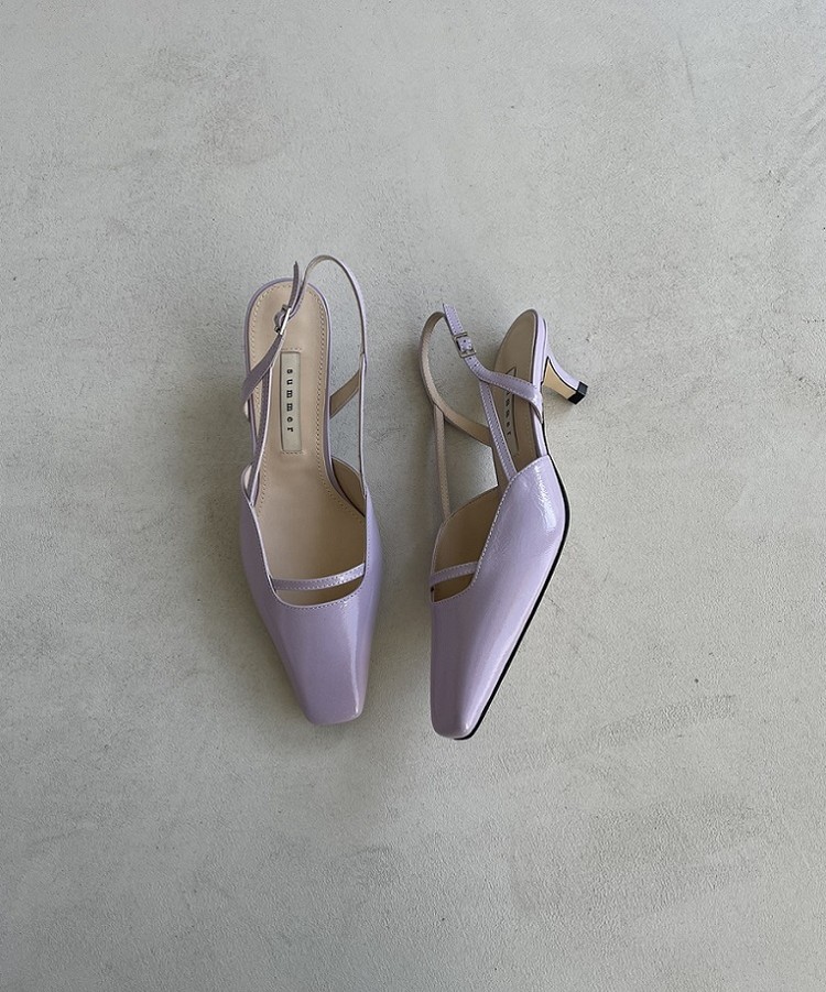 - 스퀘어 토(toe)지만 둥글 납작하게 디자인한 매력적인 라스트를 사용하여 만든 5cm 슬링백 슈즈 입니다.