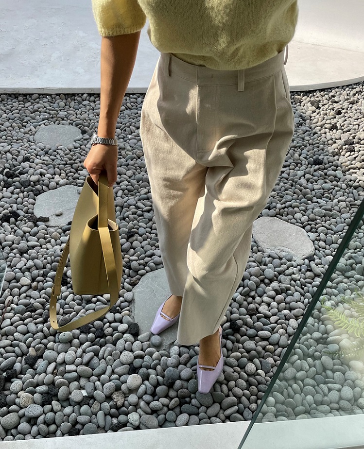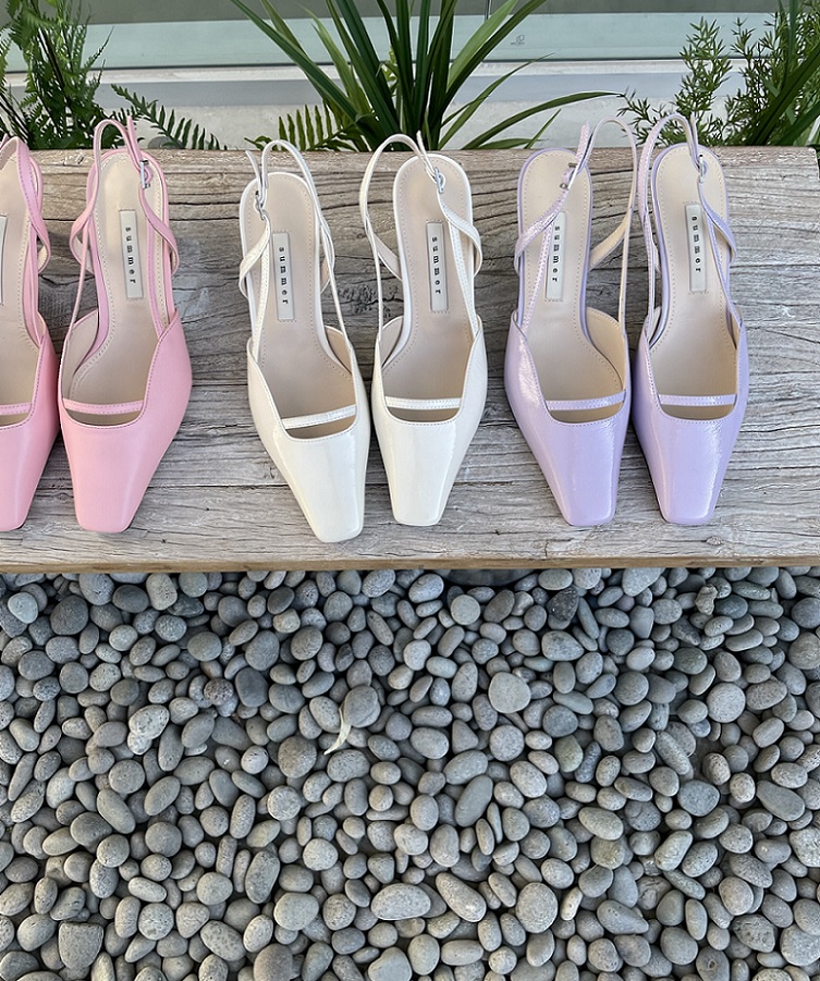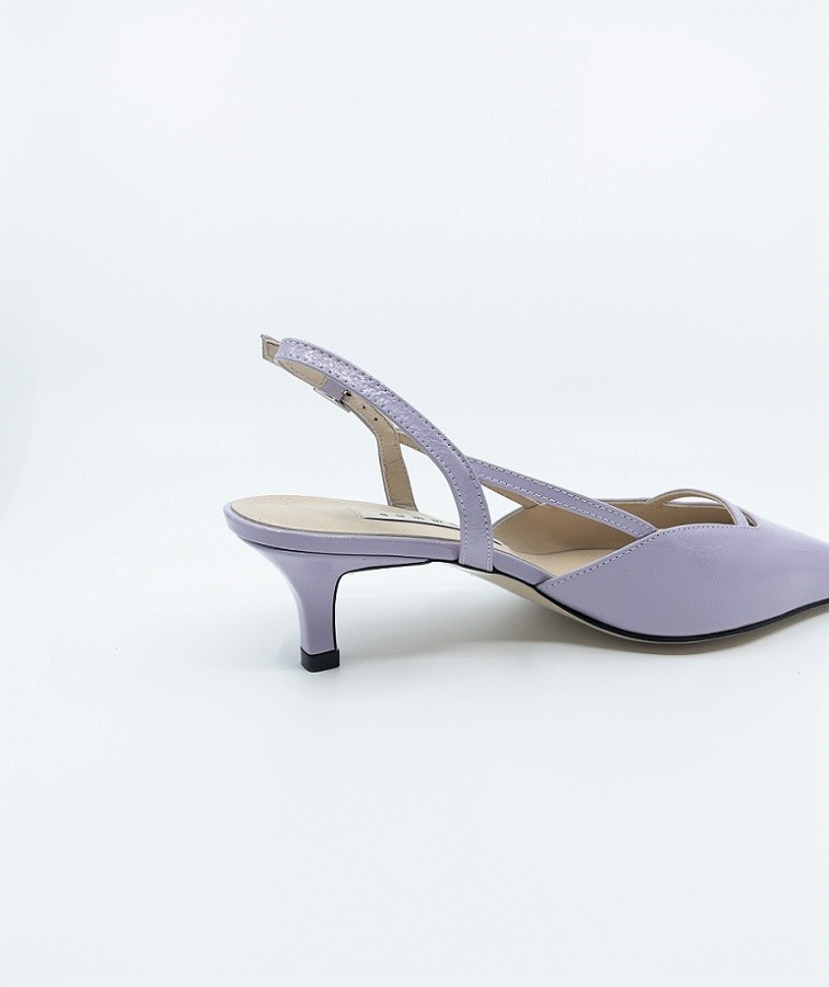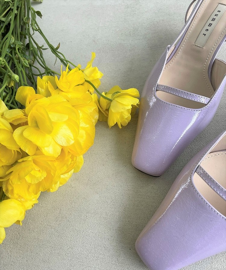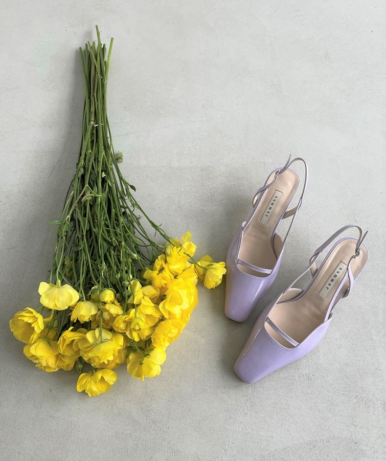 - 스퀘어 토(toe)지만 둥글 납작하게 디자인한 매력적인 라스트를 사용하여 만든 5cm 슬링백 슈즈 입니다.