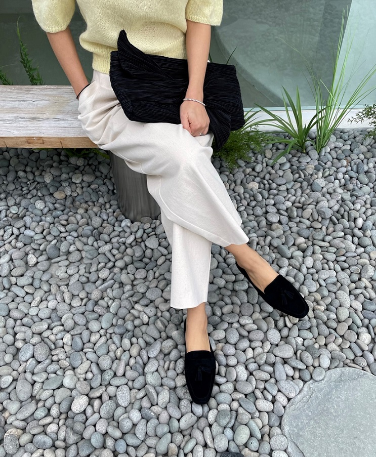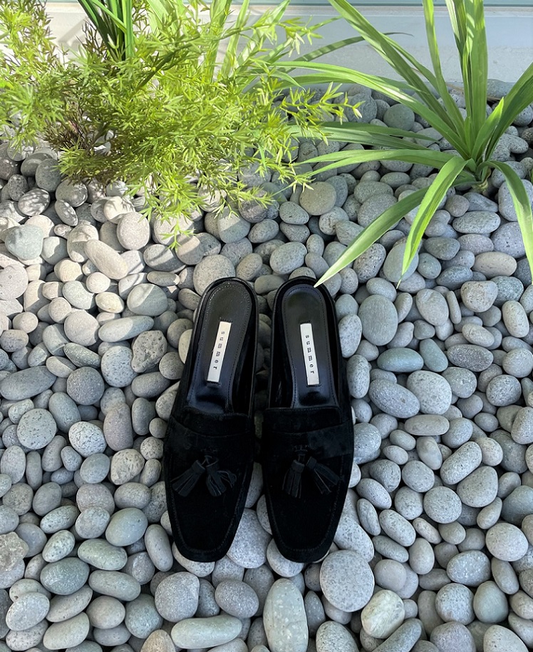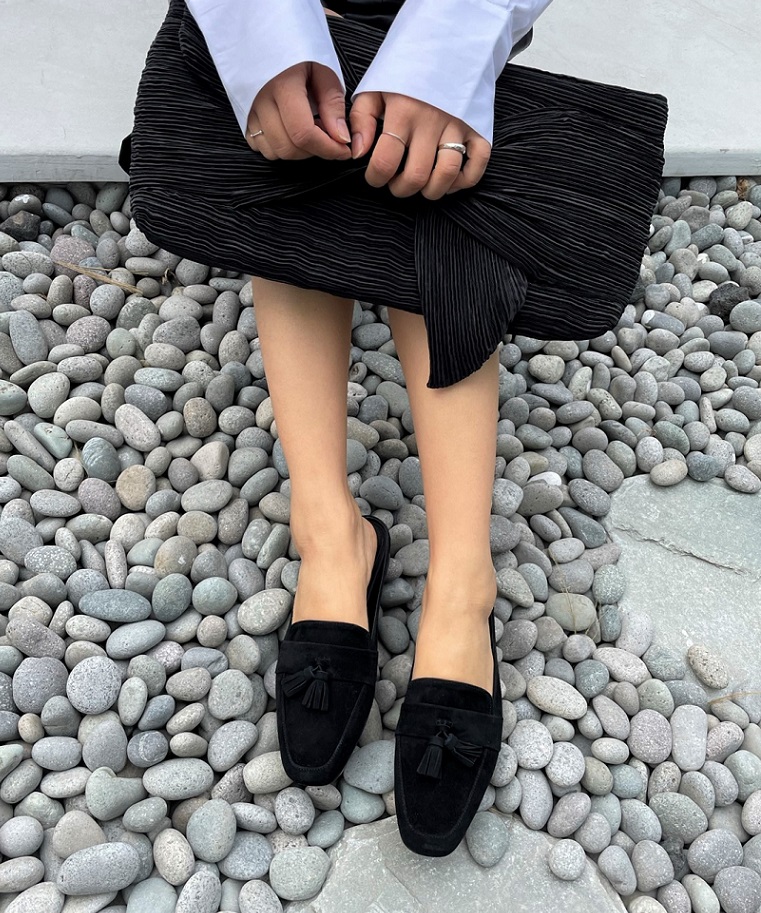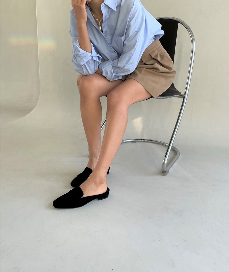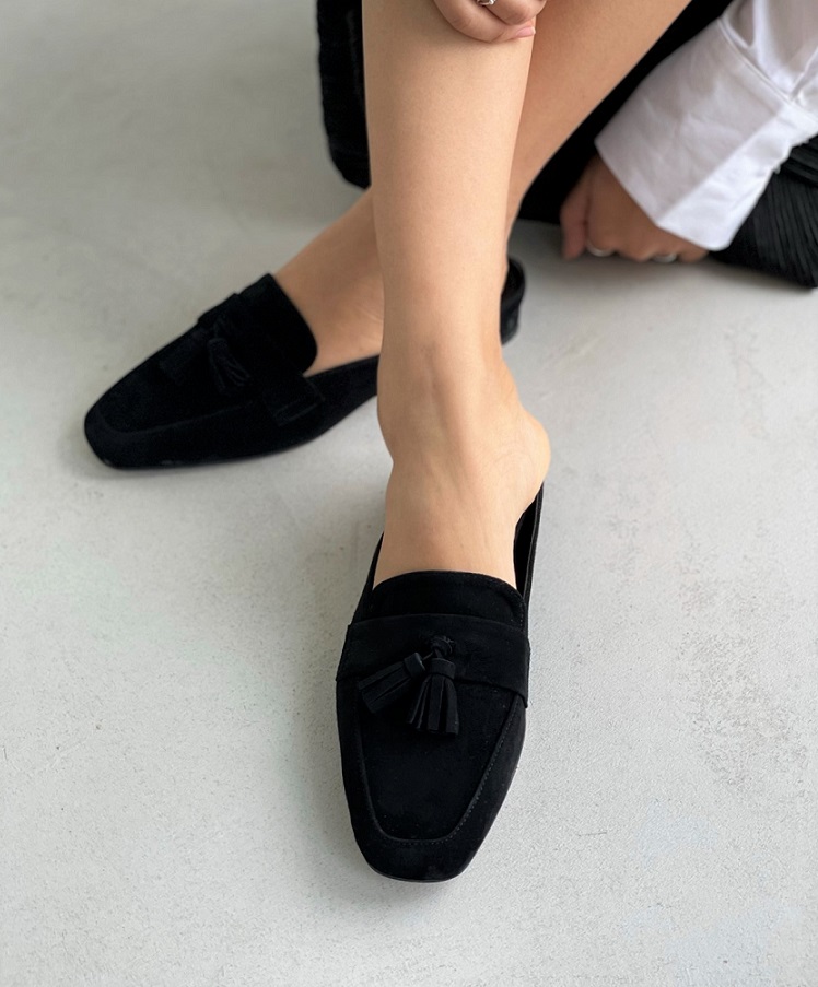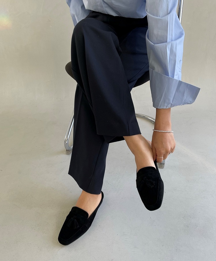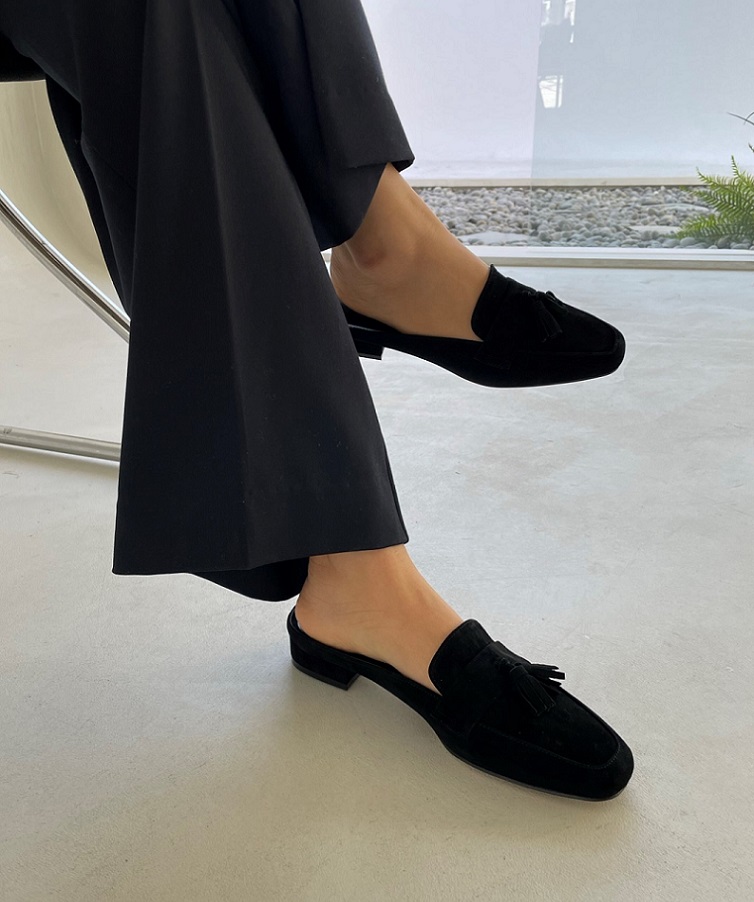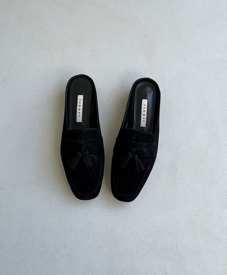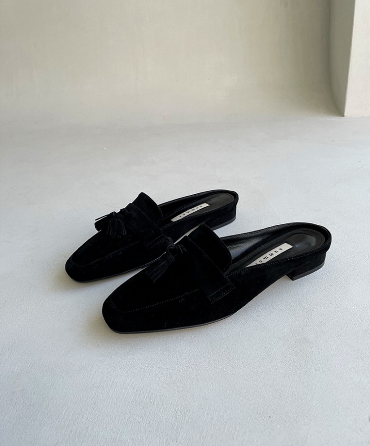 Tassel Suede Loafer Mule < S22007 > 태슬 스웨이드 로퍼 뮬 2cm BK