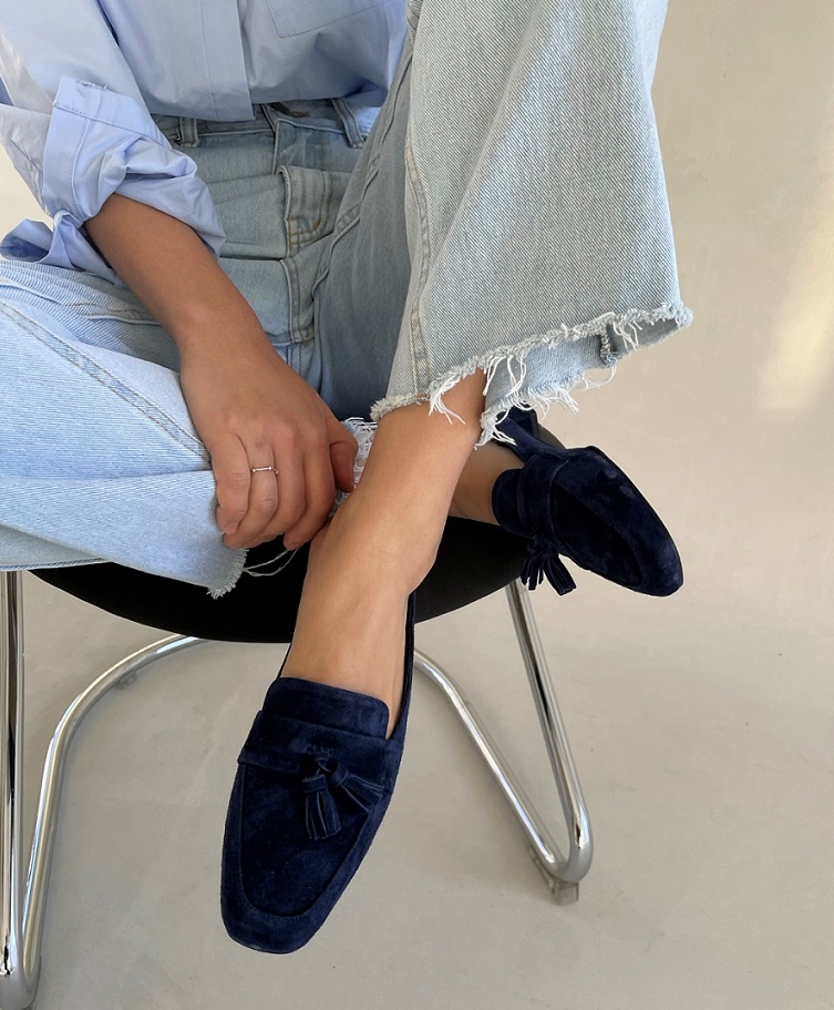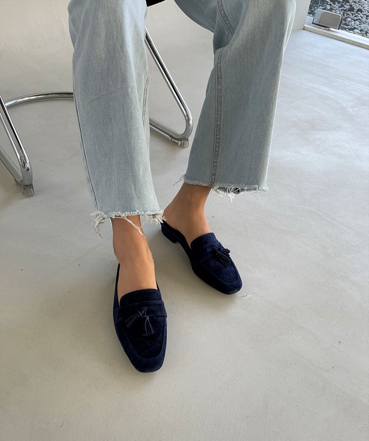Tassel Suede Loafer Mule < S22007 > 태슬 스웨이드 로퍼 뮬 2cm BL